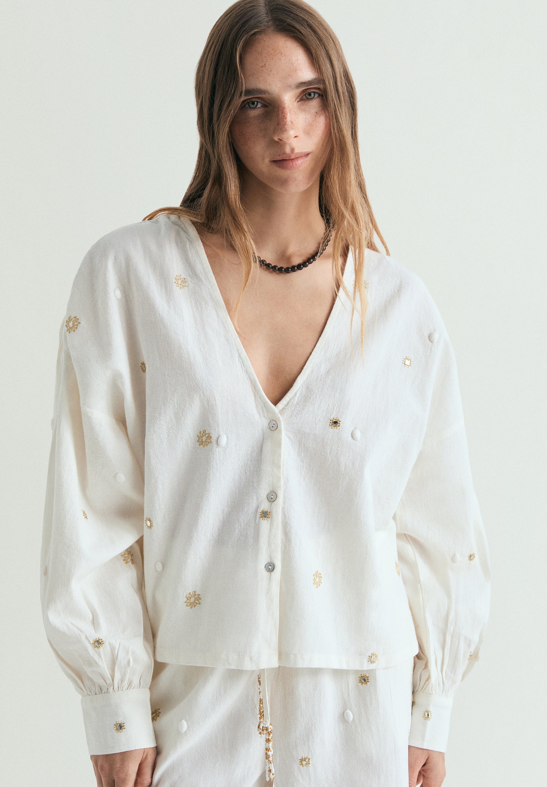 VISCOSE BLOUSE WITH APPLIQUÉ DETAIL