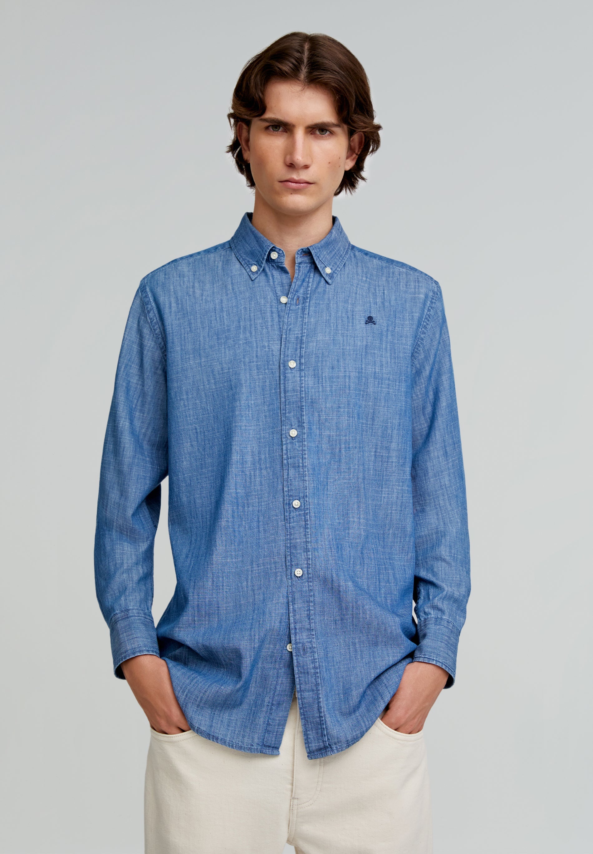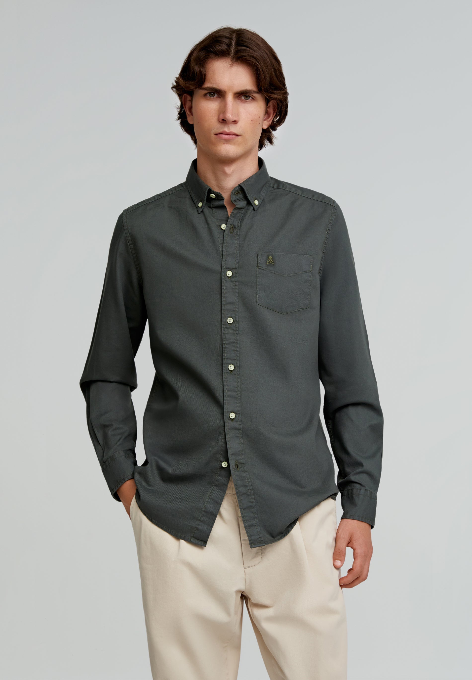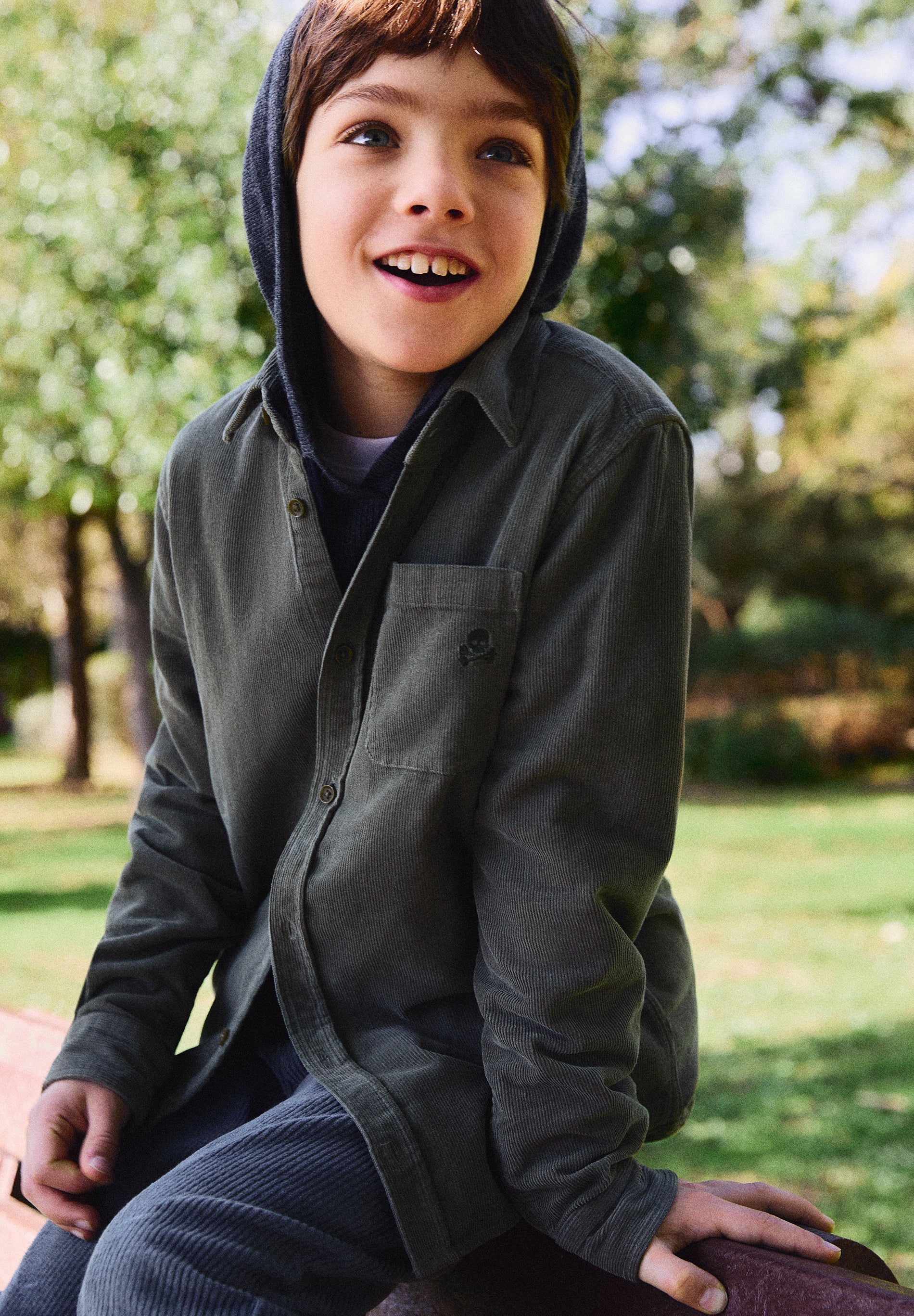 CORDUROY SHIRT WITH EMBROIDERED SKULL