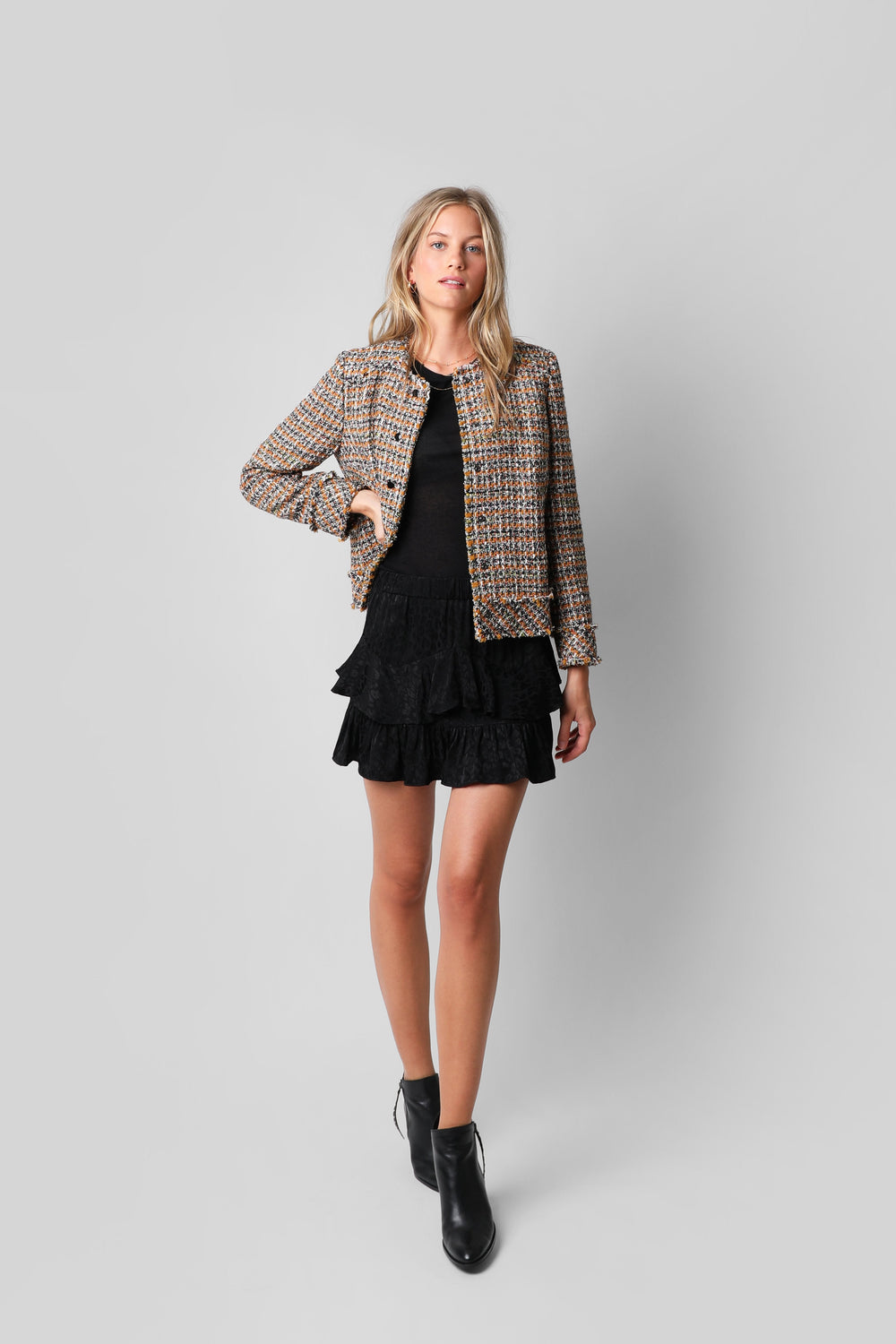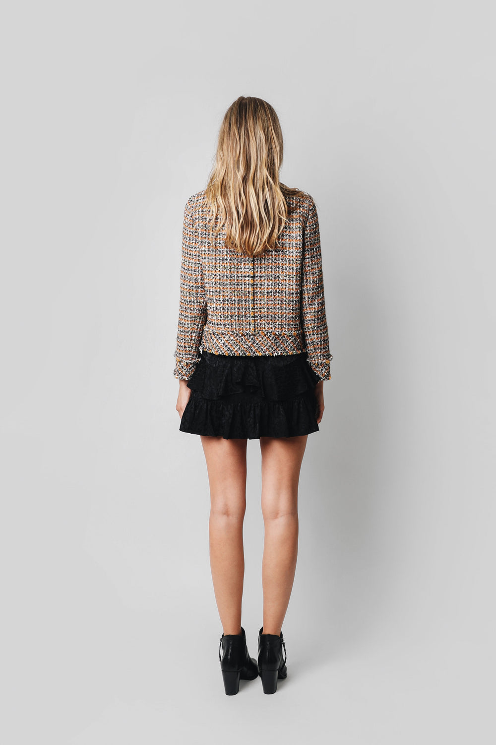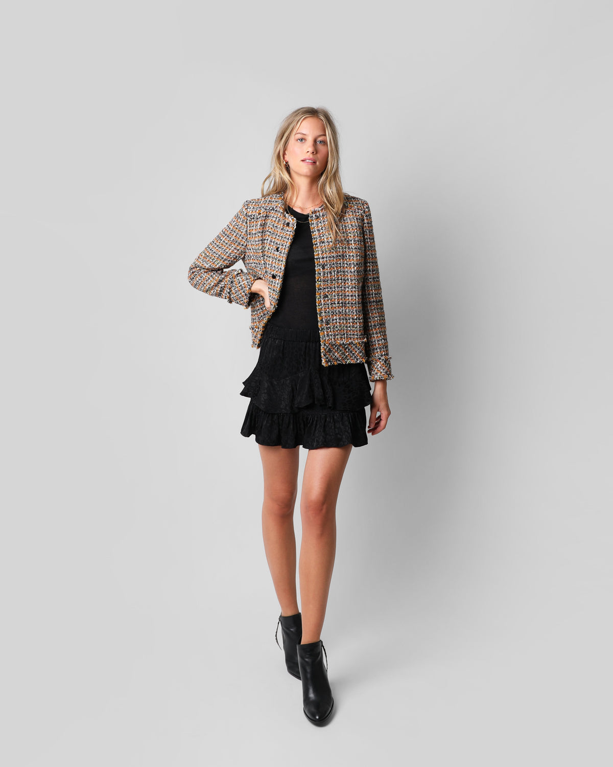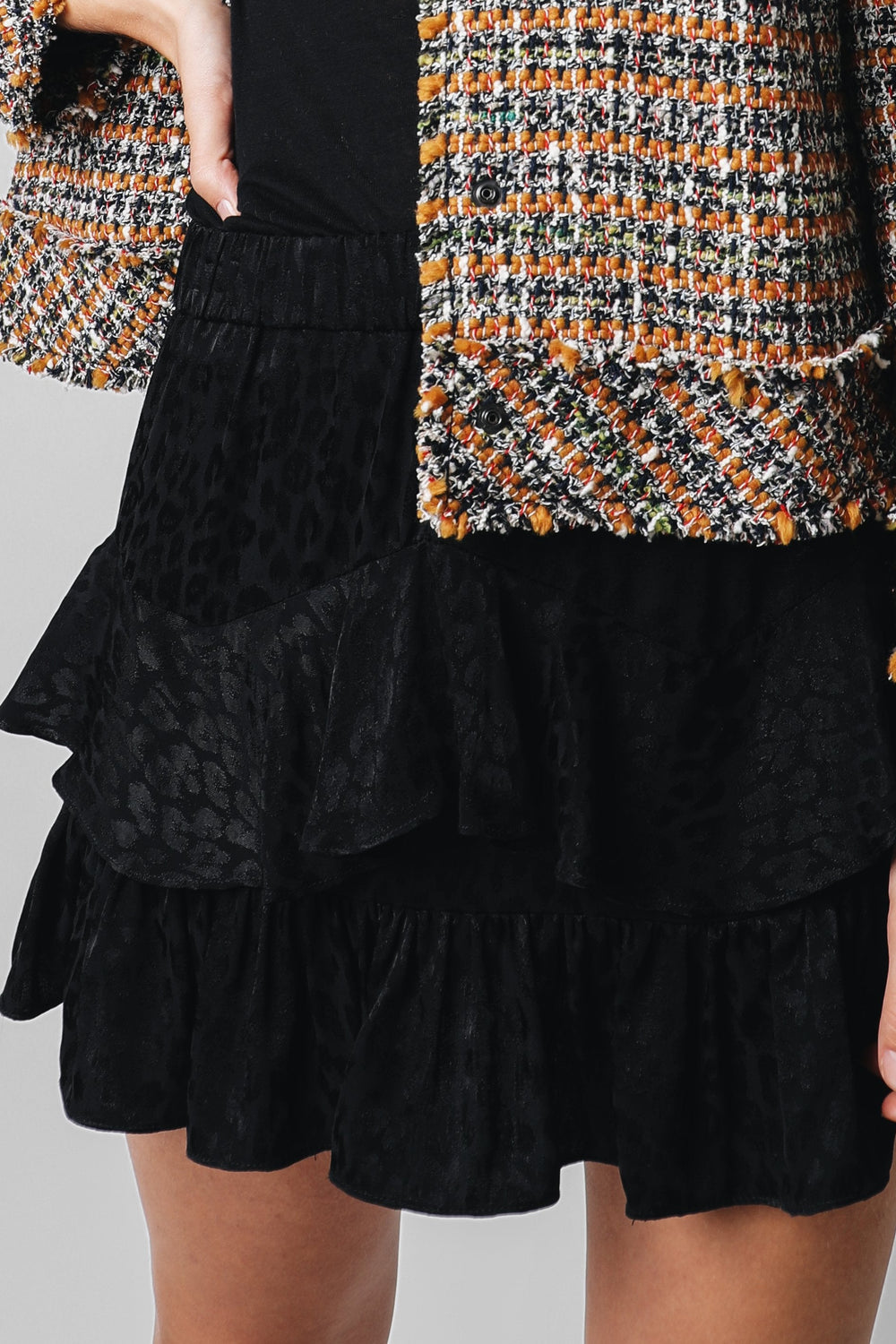 FALDA MINI VOLANTE JACQUARD NEGRA