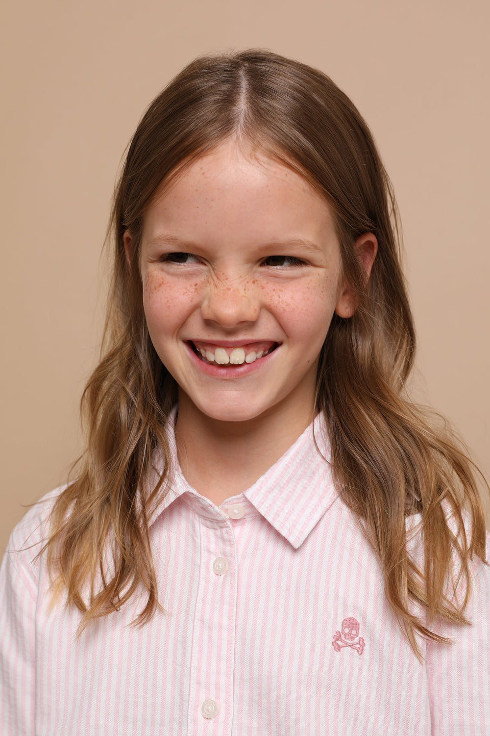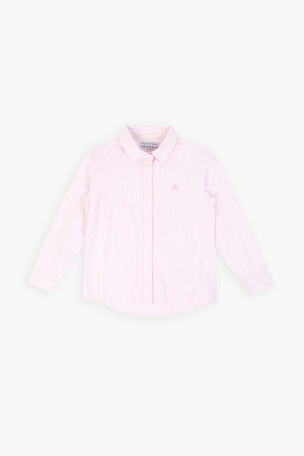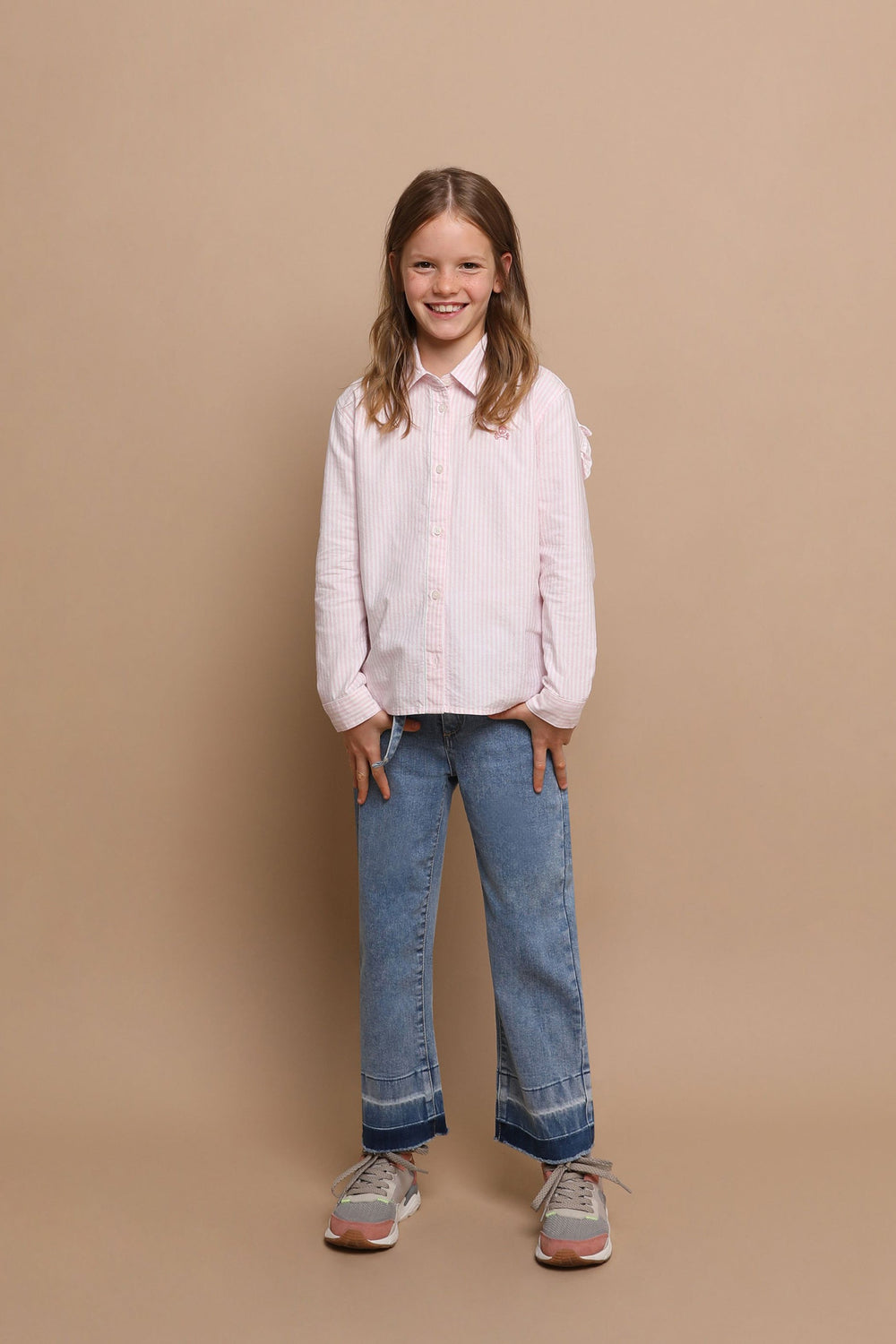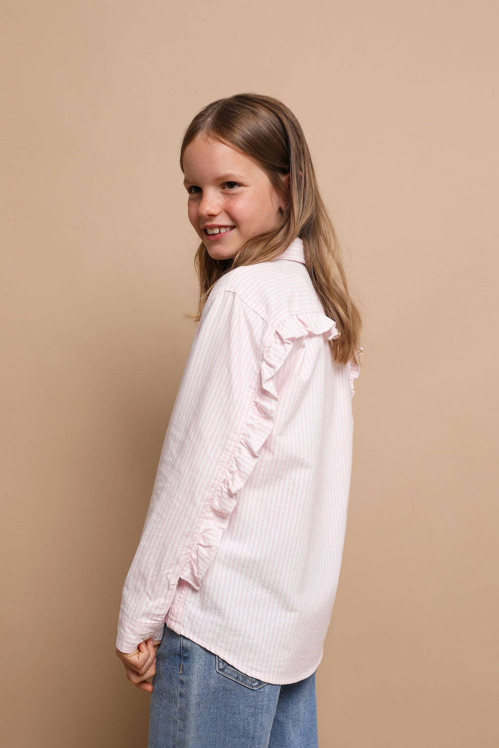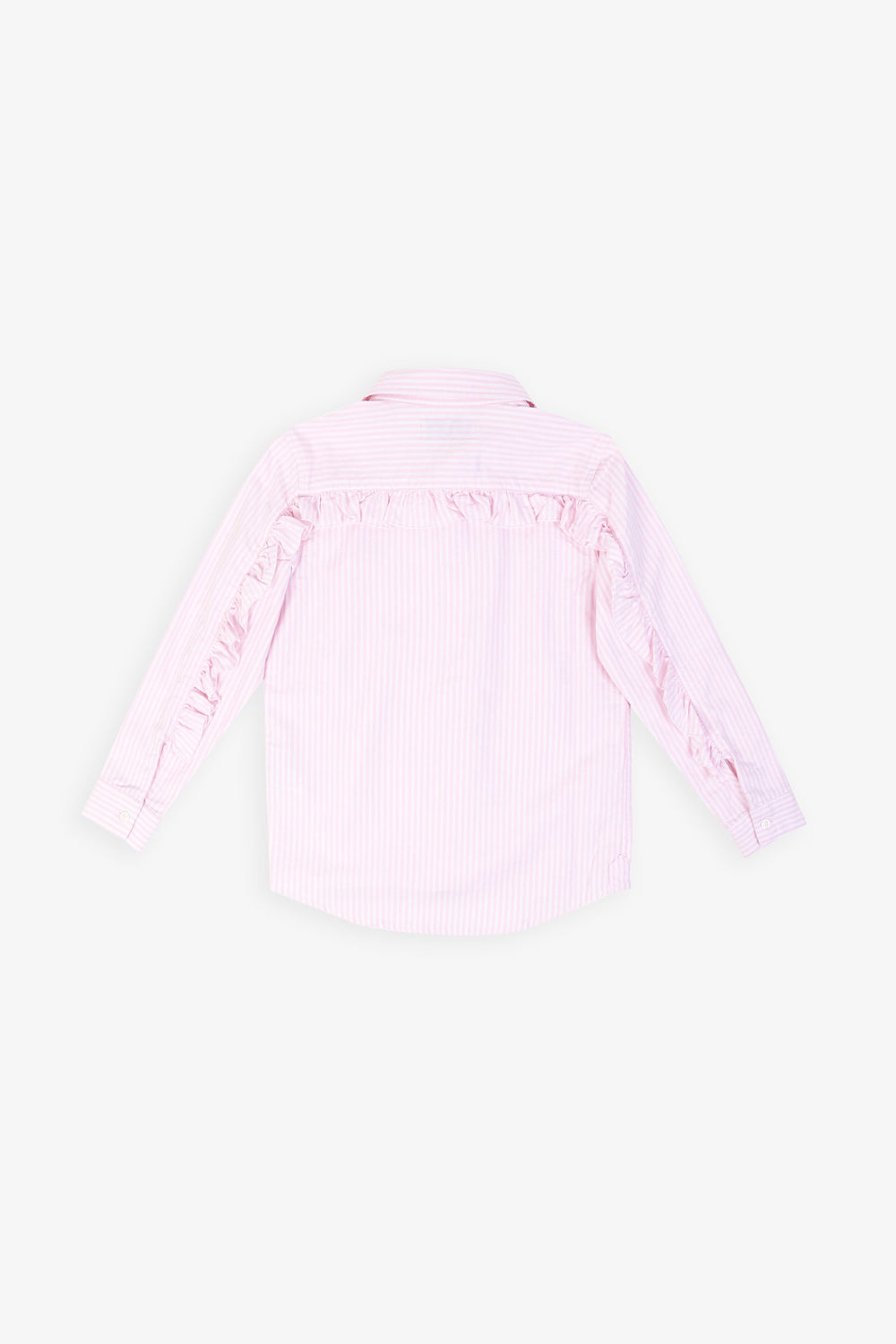 Striped shirt made of 100% cotton. Regular fit, konika collar and button fastening with a placket. Long sleeves with cuffs. Ruffle detail on the sleeves and back and embroidery on the chest.