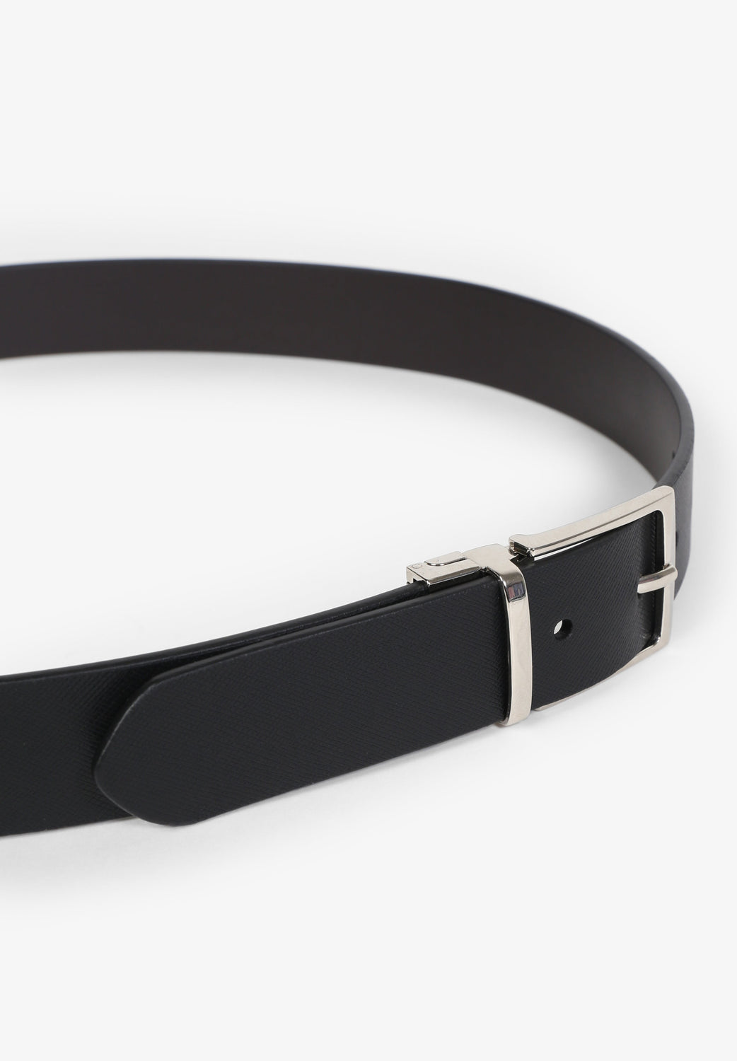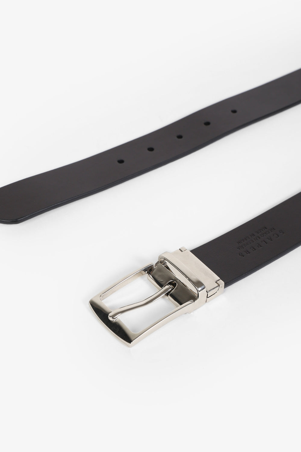 100% reversible leather belt. Metal buckle.