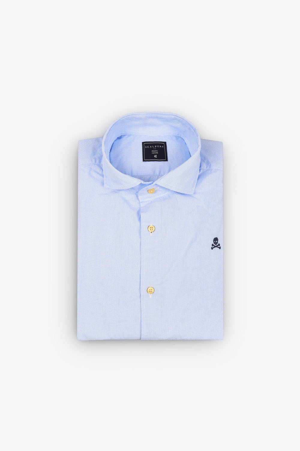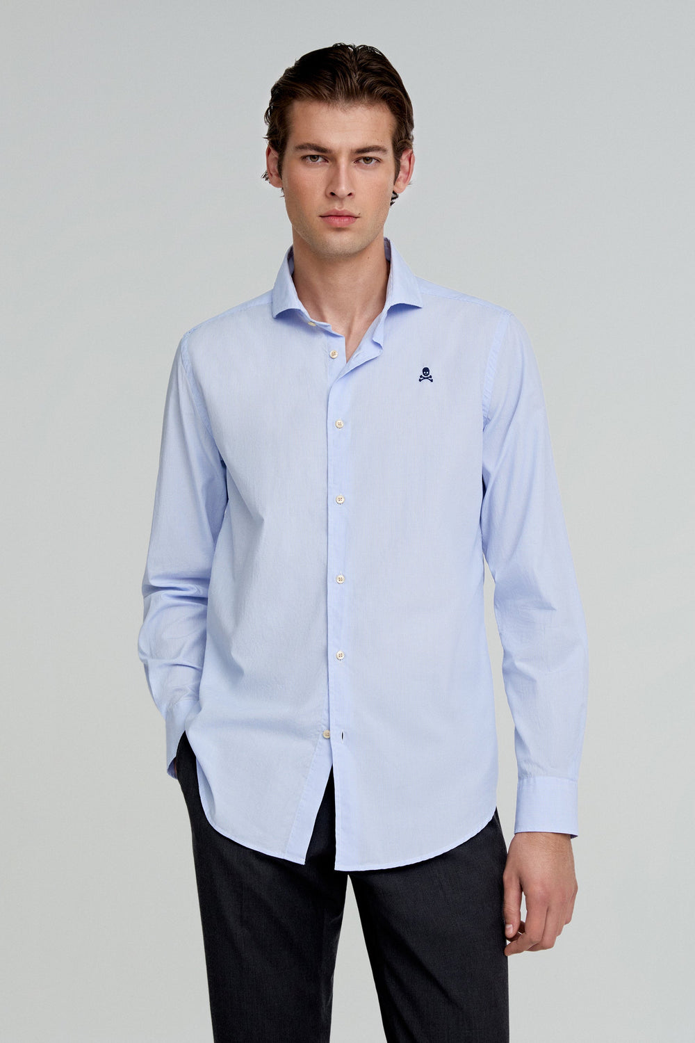 Plain formal shirt. Made of 100% cotton. Regular fit. Cutaway collar. Button fastening. Long sleeves with barrel cuffs. Embroidered skull detail on the chest.