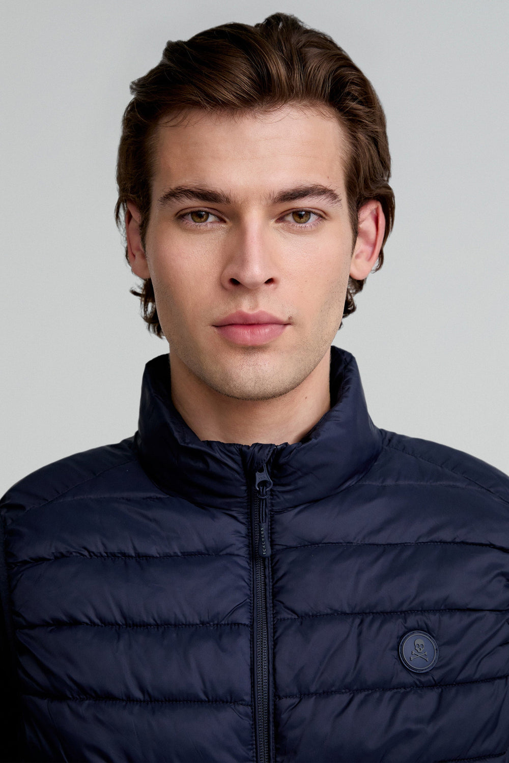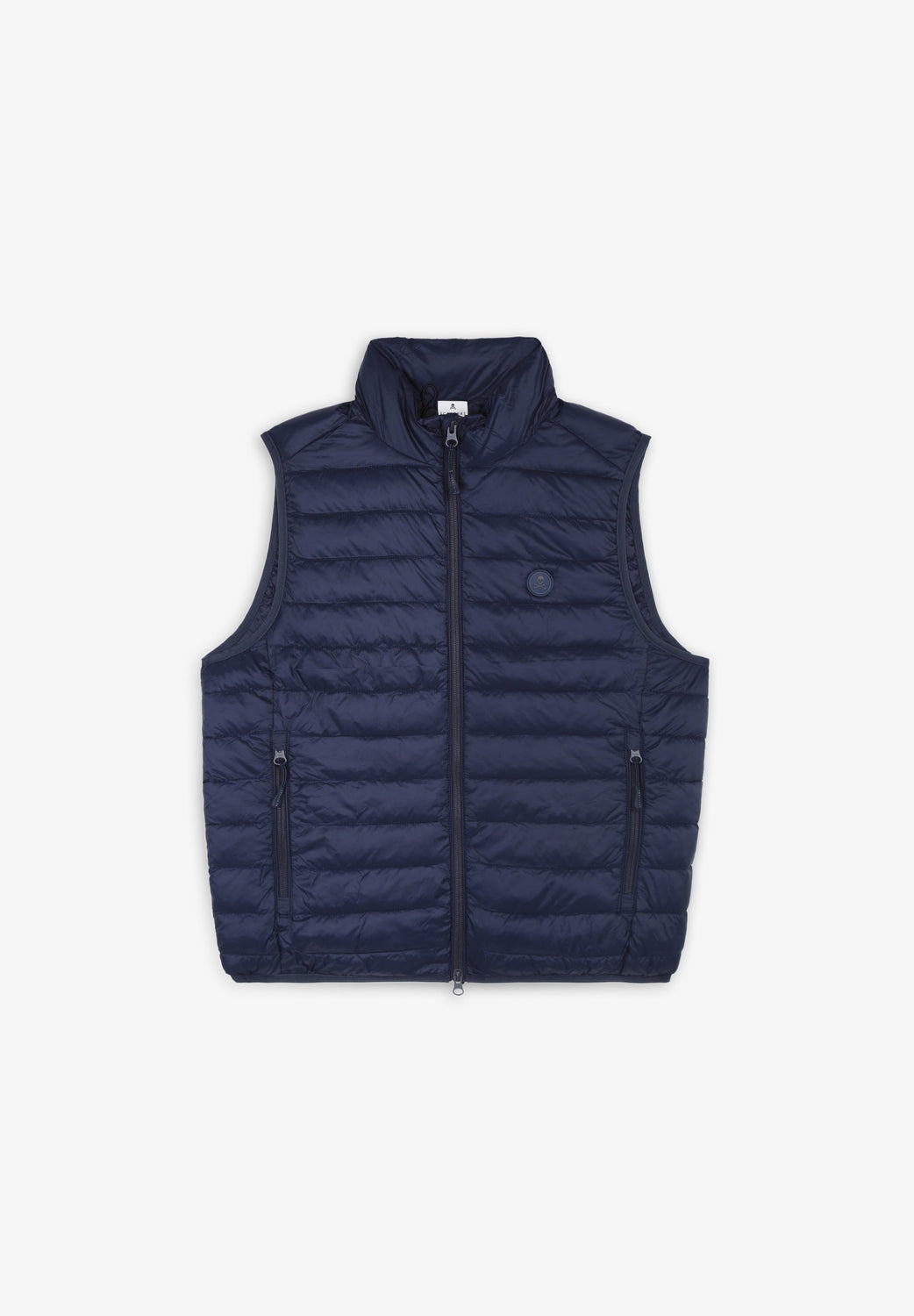 - Chaleco acolchado confeccionado en tejido de nailon y poliéster reciclado water repellent. Corte Slim Fit, cuello subido y cierre con cremallera de doble carro.