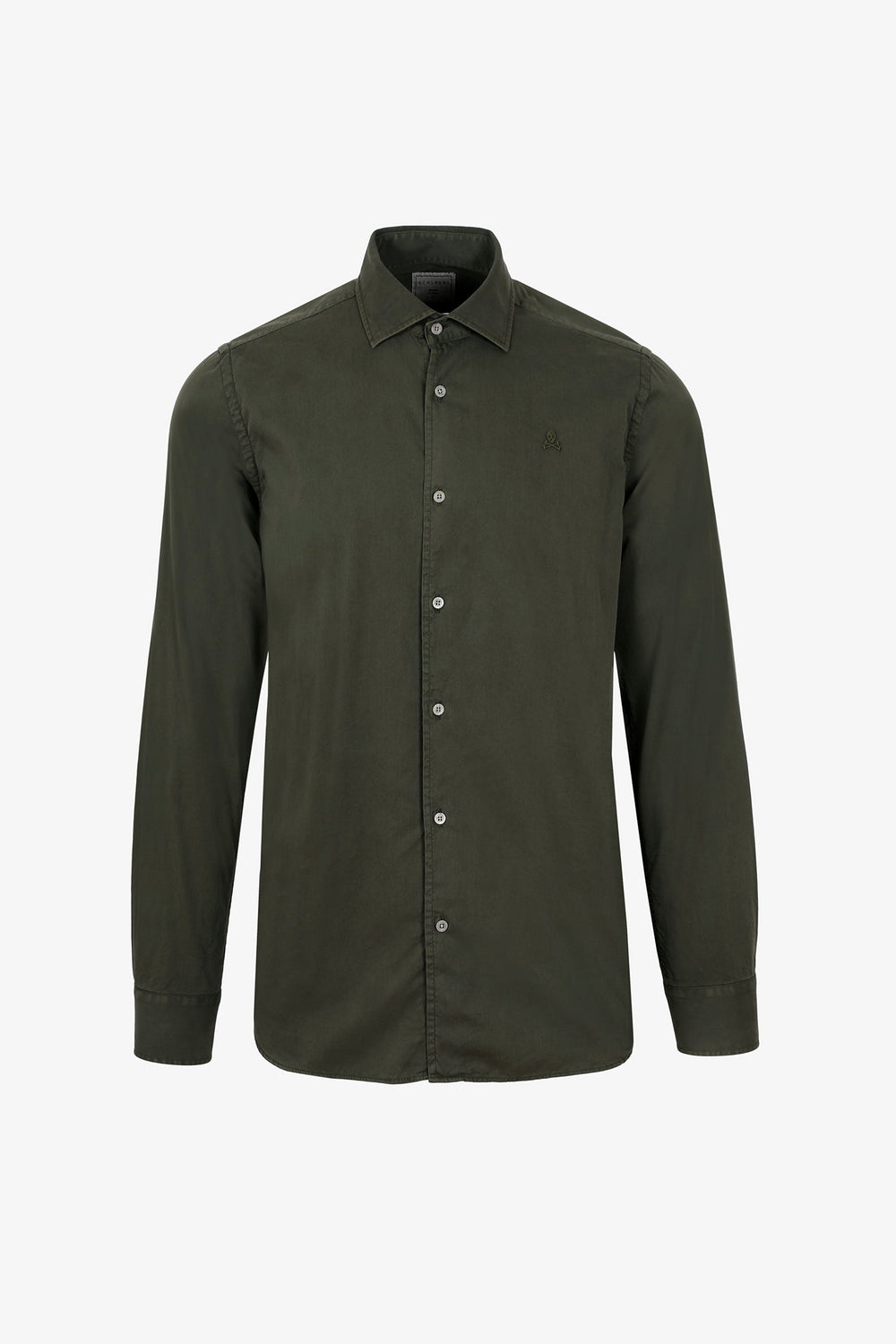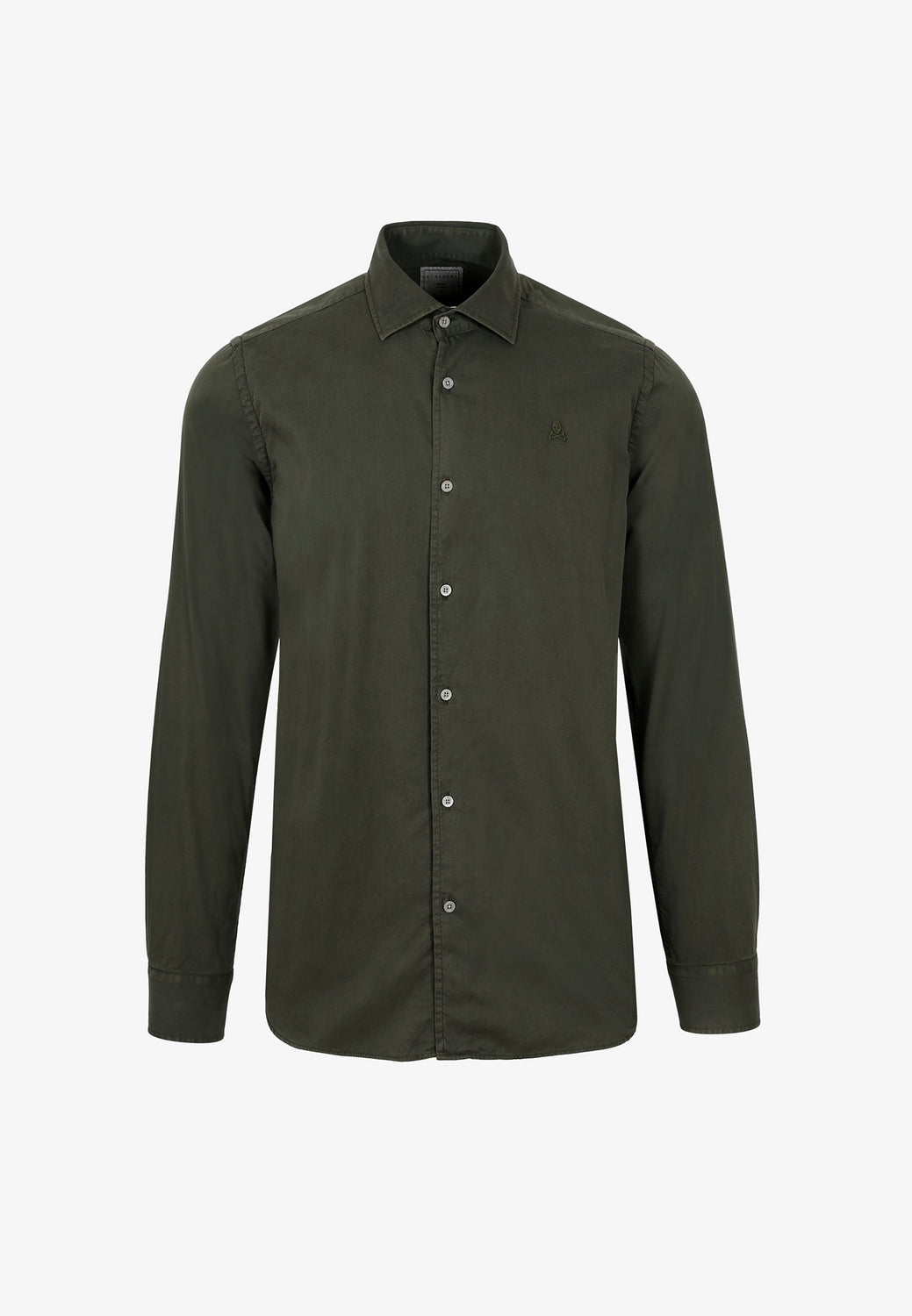 Shirt made of 100% cotton. Regular fit, Italian collar and button fastening without placket. Long sleeves with barrel cuffs. Embroidered skull detail on the chest.