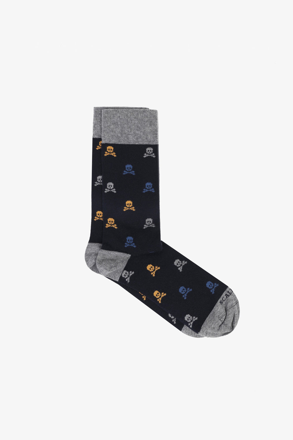 Calcetines con print de calaveras all over confeccionados en tejido de algodón elásticos. Caña media.
