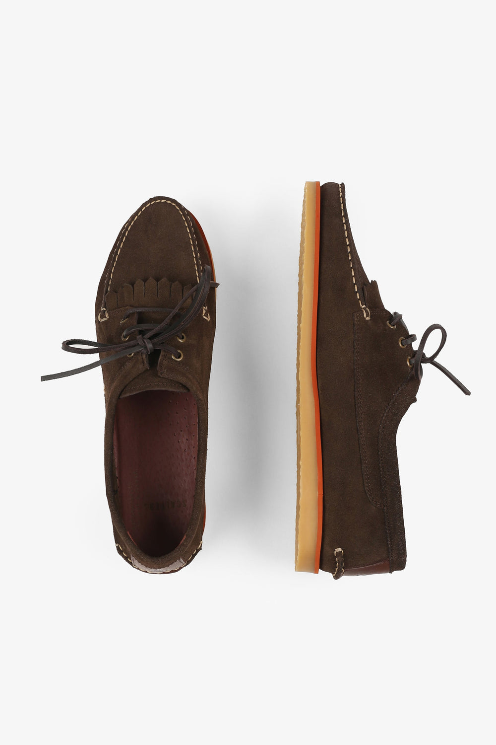 Shoes in 100% leather with split suede finish. Rubber sole and matching lace-up fastening. Fringe detail.