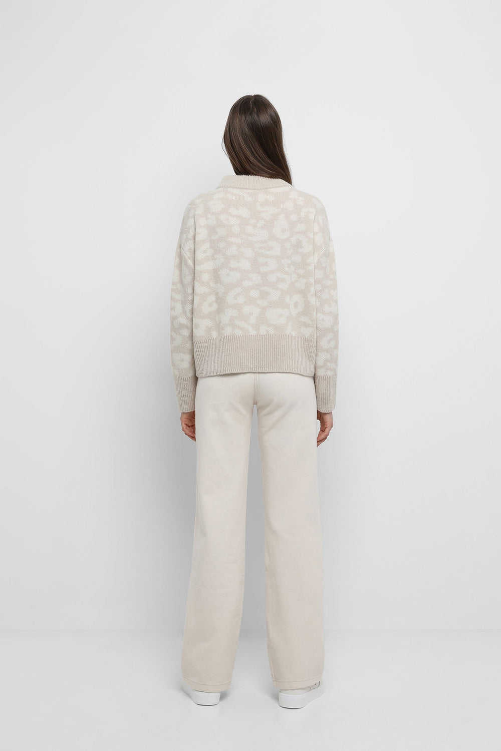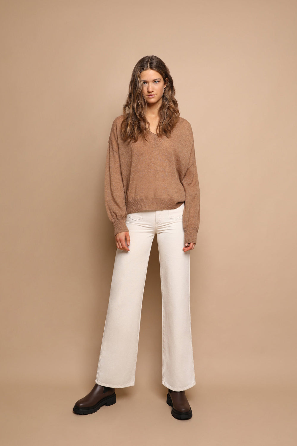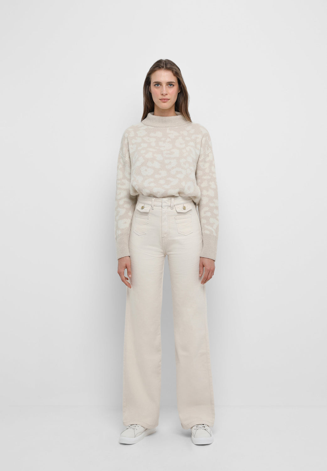Jeans made of slightly stretch denim fabric. Flare fit, high waist, zip fly and button fastening and pockets with button. Features belt loops.