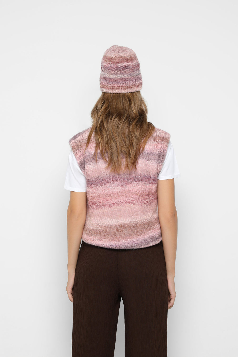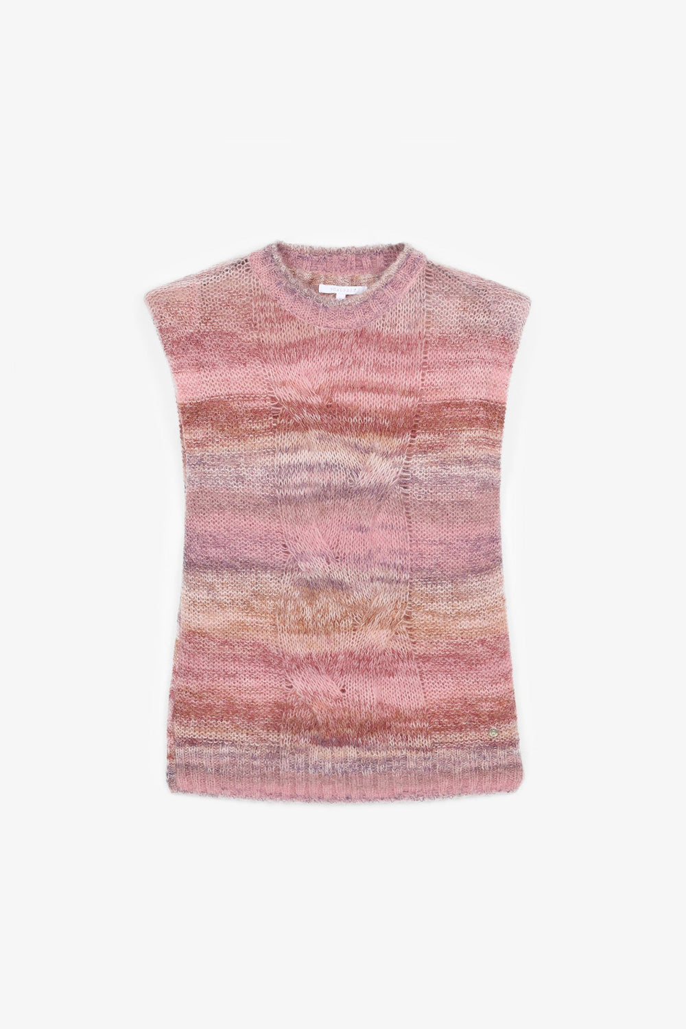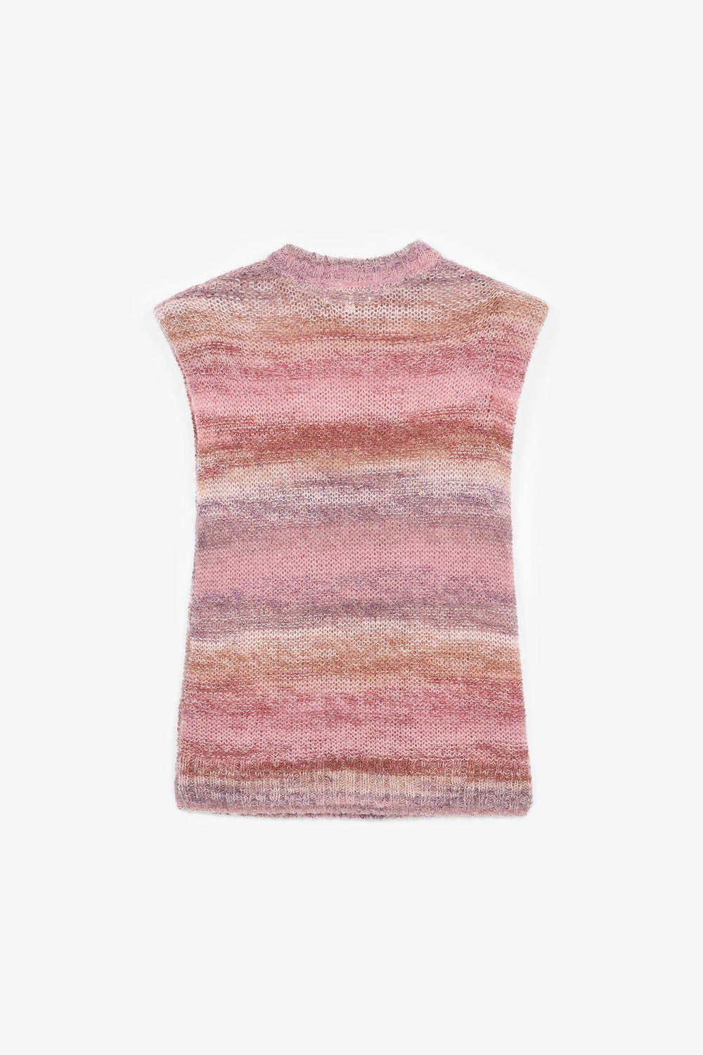 Striped knit vest in wool and alpaca blend. Regular fit, round neck and sleeveless.