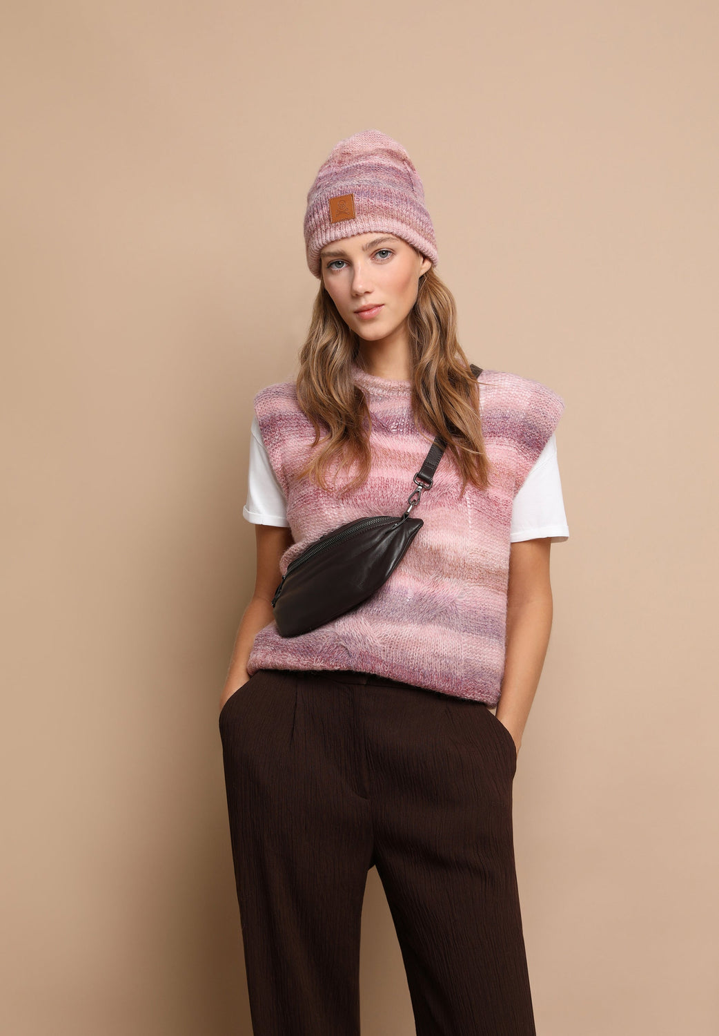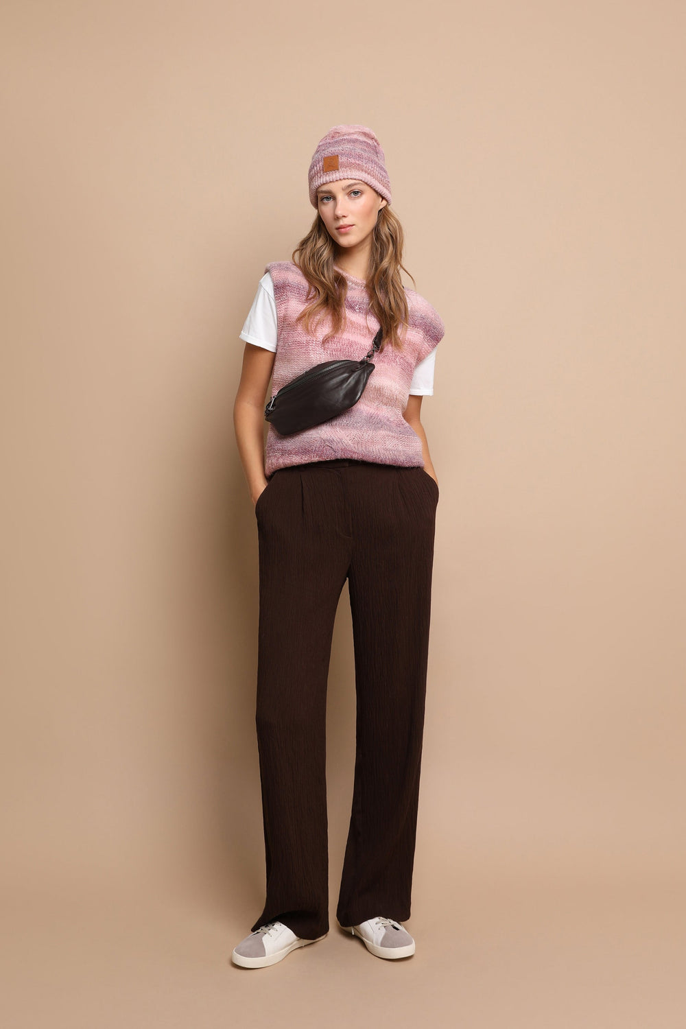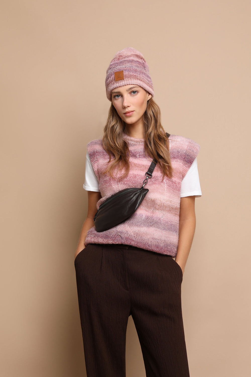 Striped knit vest in wool and alpaca blend. Regular fit, round neck and sleeveless.