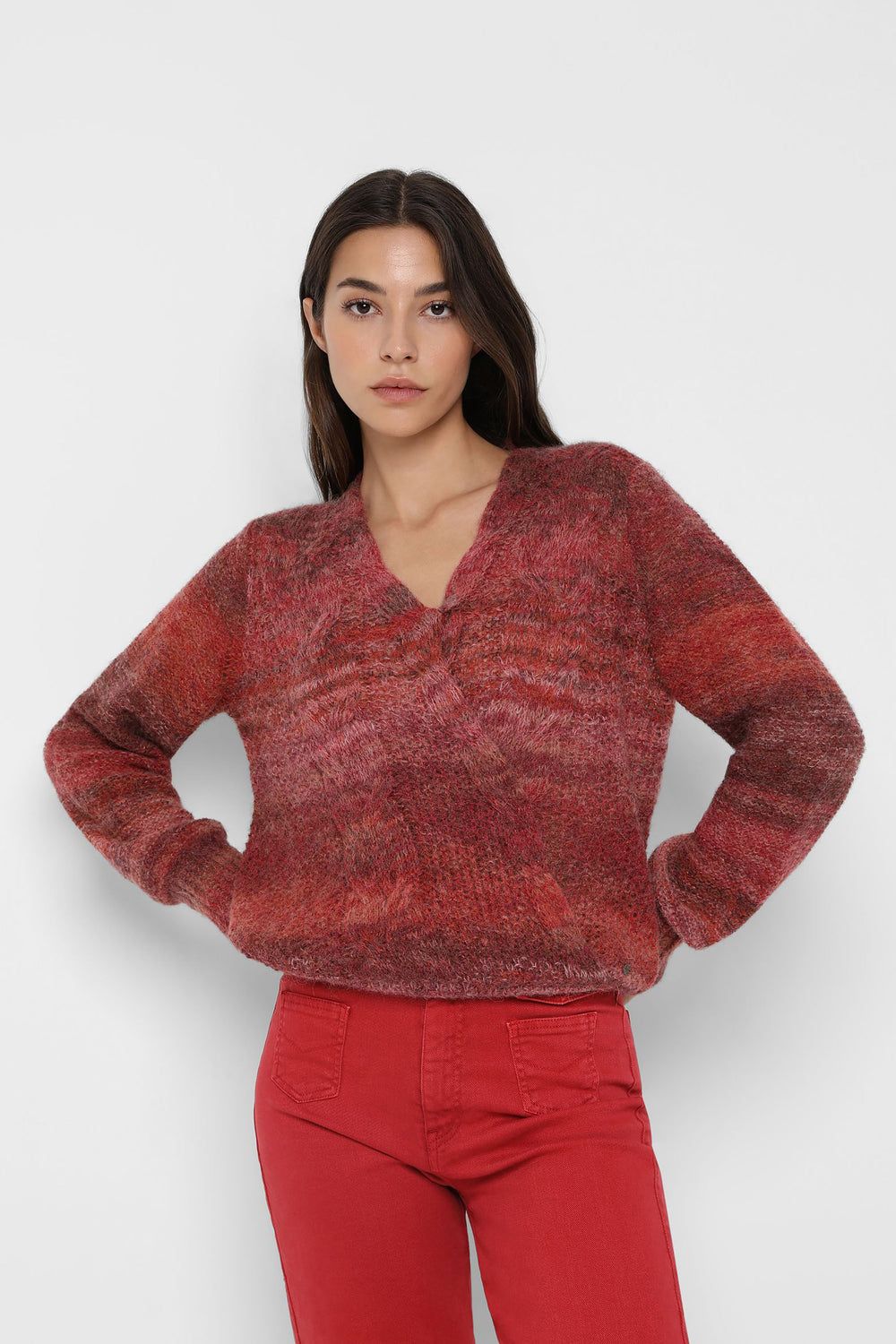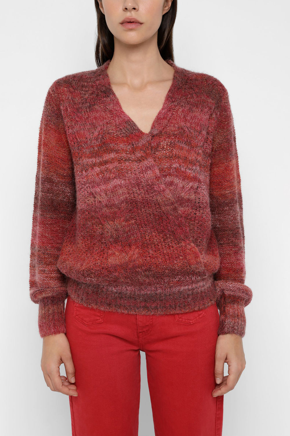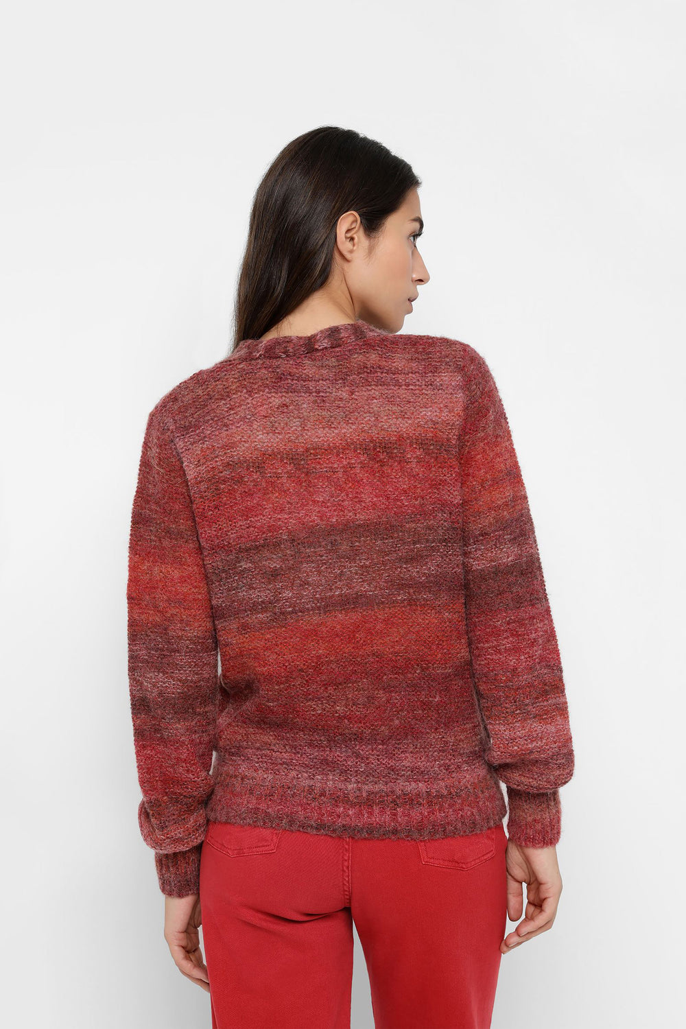 Striped knit jumper in wool and alpaca blend. Regular fit, double-breasted, V-neck and long sleeves.
