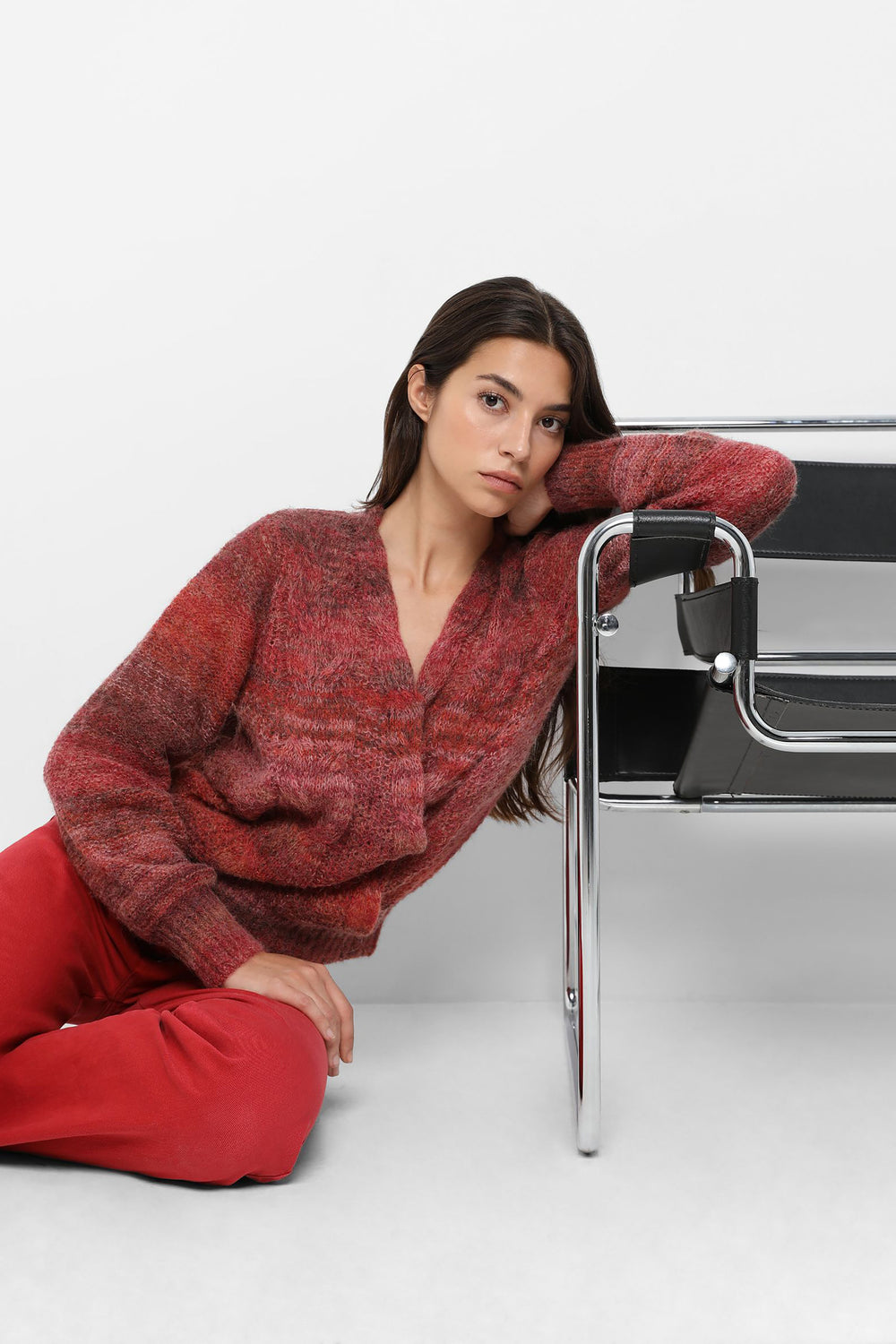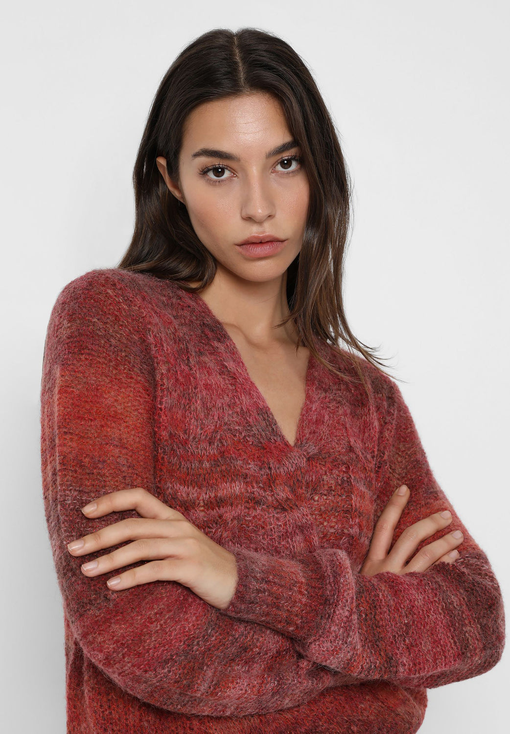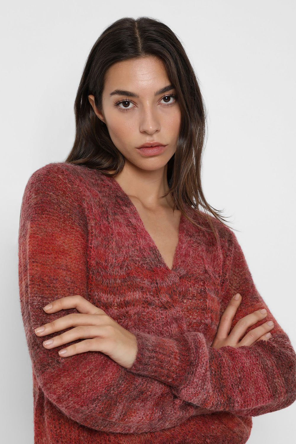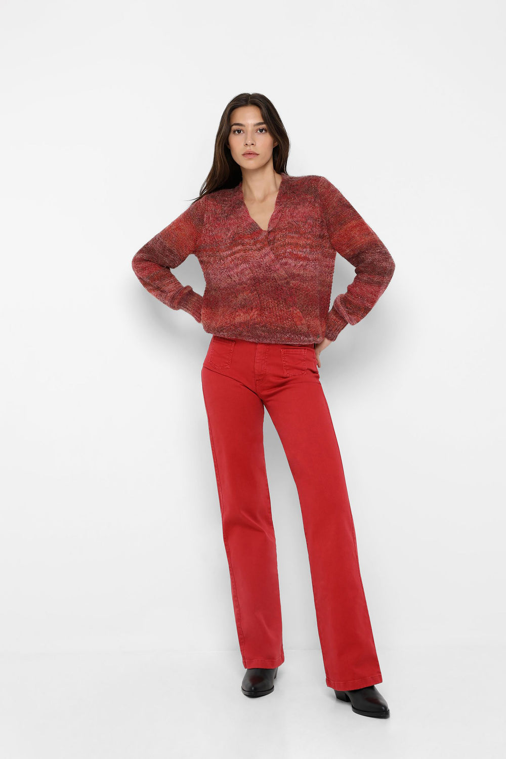 Striped knit jumper in wool and alpaca blend. Regular fit, double-breasted, V-neck and long sleeves.