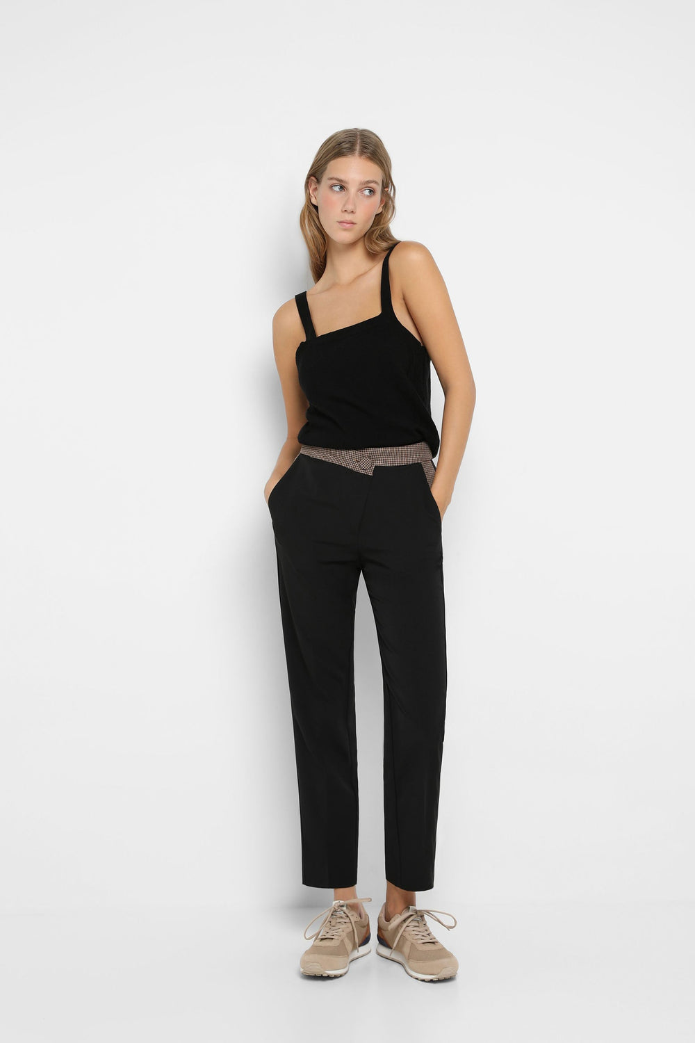 Trousers with Harry's print waist made of slightly stretchy fabric. Regular fit, zip and button fastening. Side pockets.
