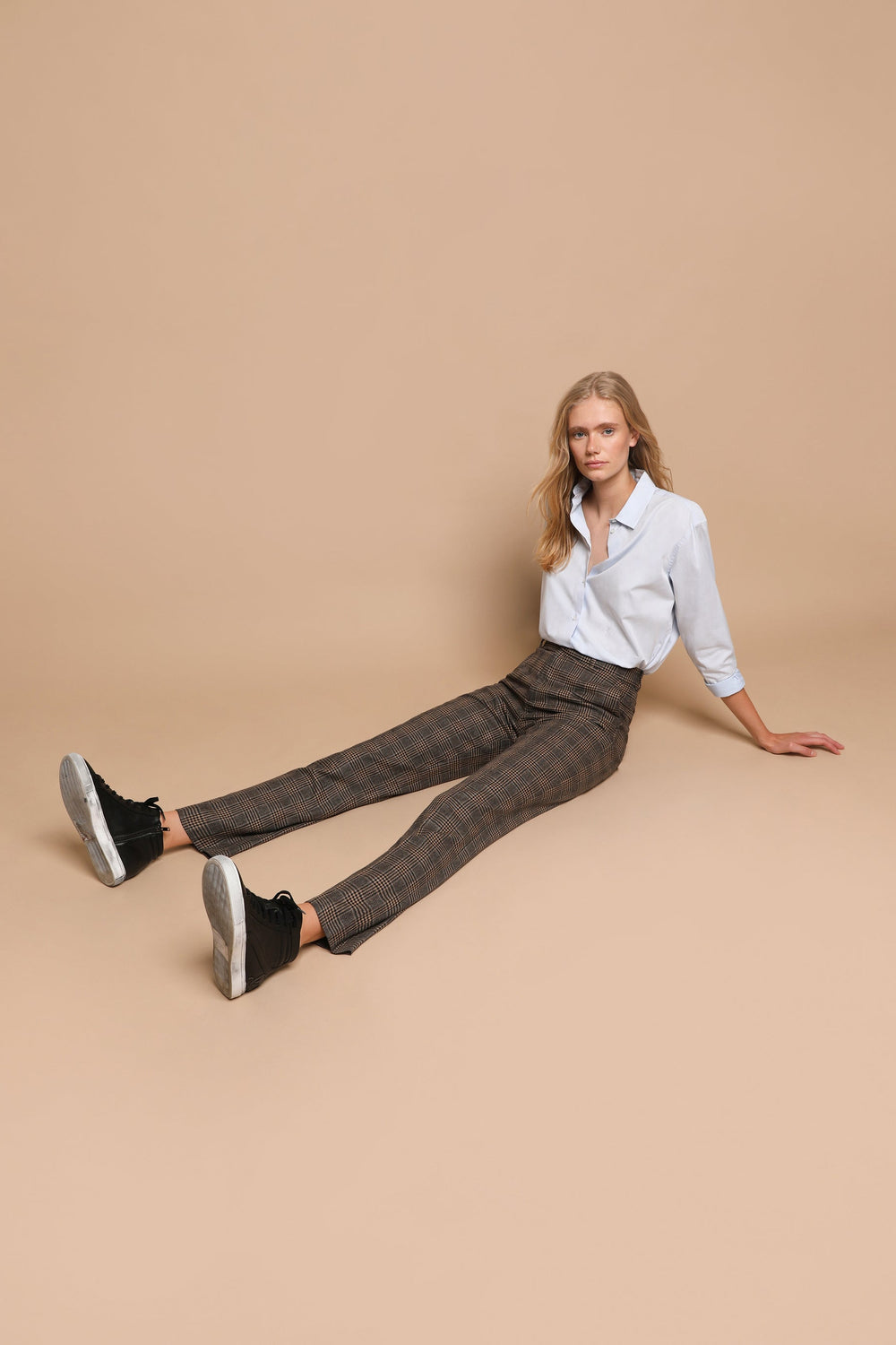 Premium straight trousers in Italian wool blend Arpatex fabric. Regular fit, high waist and side zip and snap button fastening. Belt loops at waist and pockets.