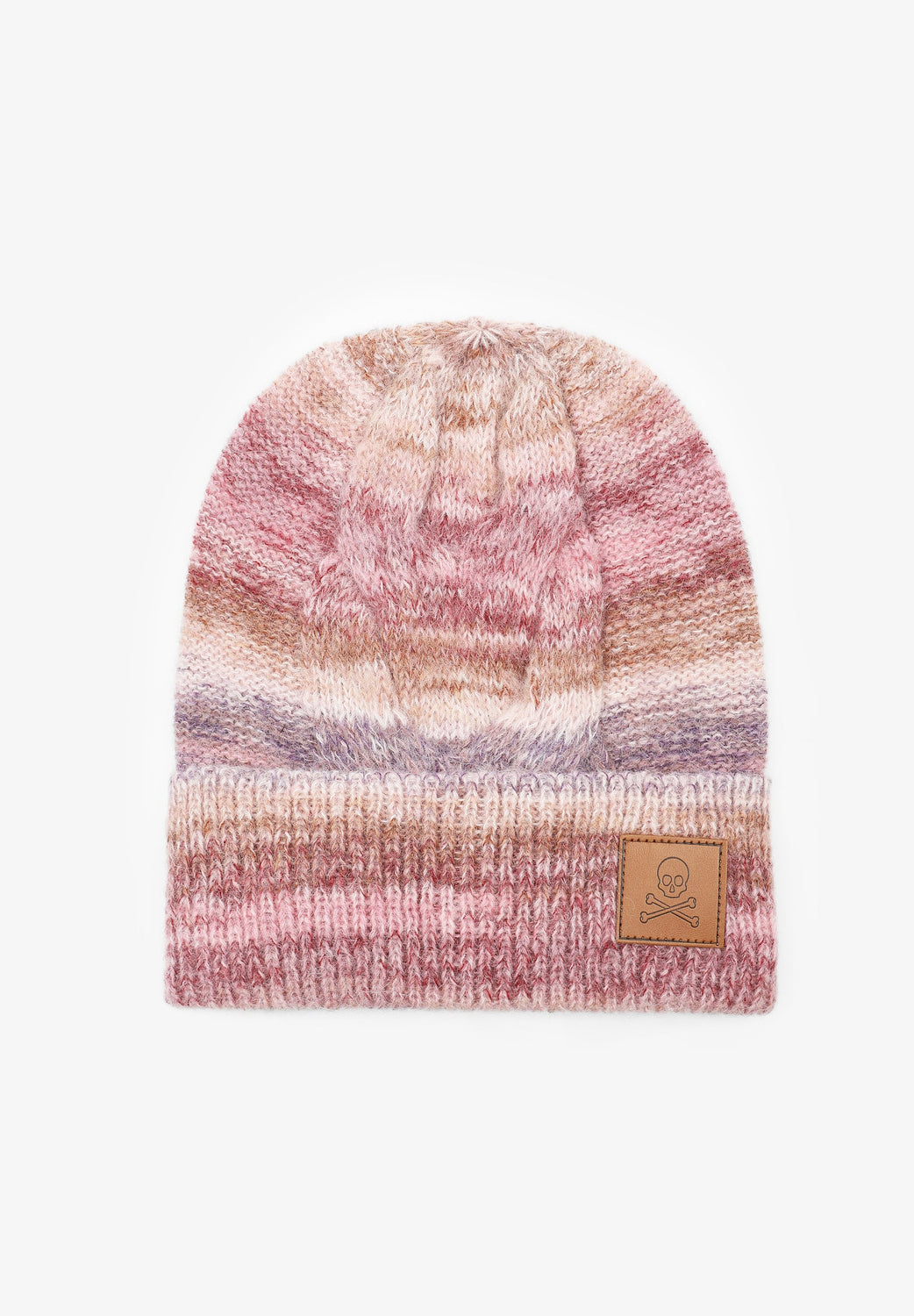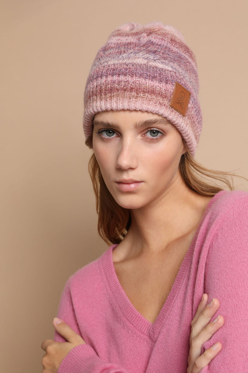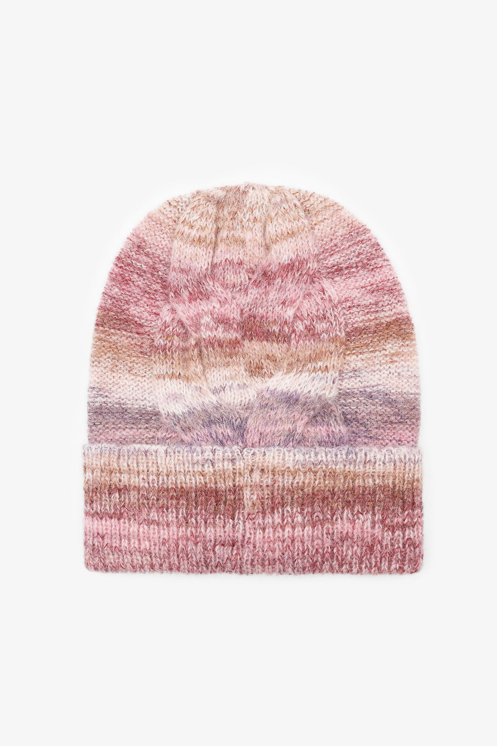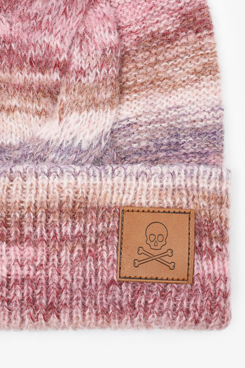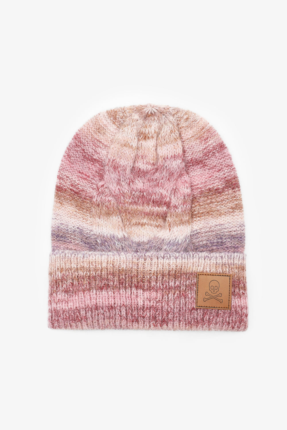 Striped knit hat in wool blend. Label detail. Height: 21 cm / Width: 20 cm.