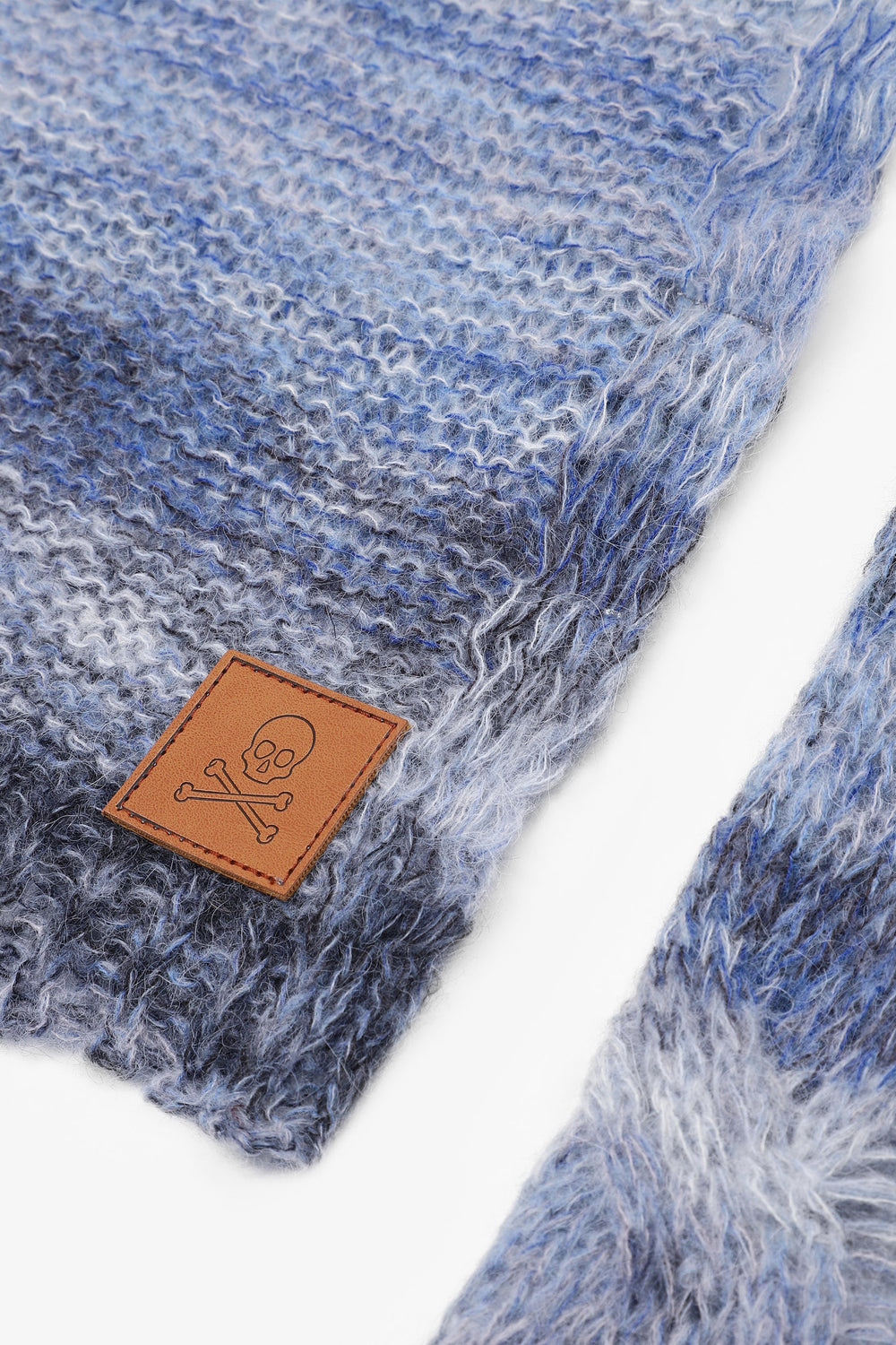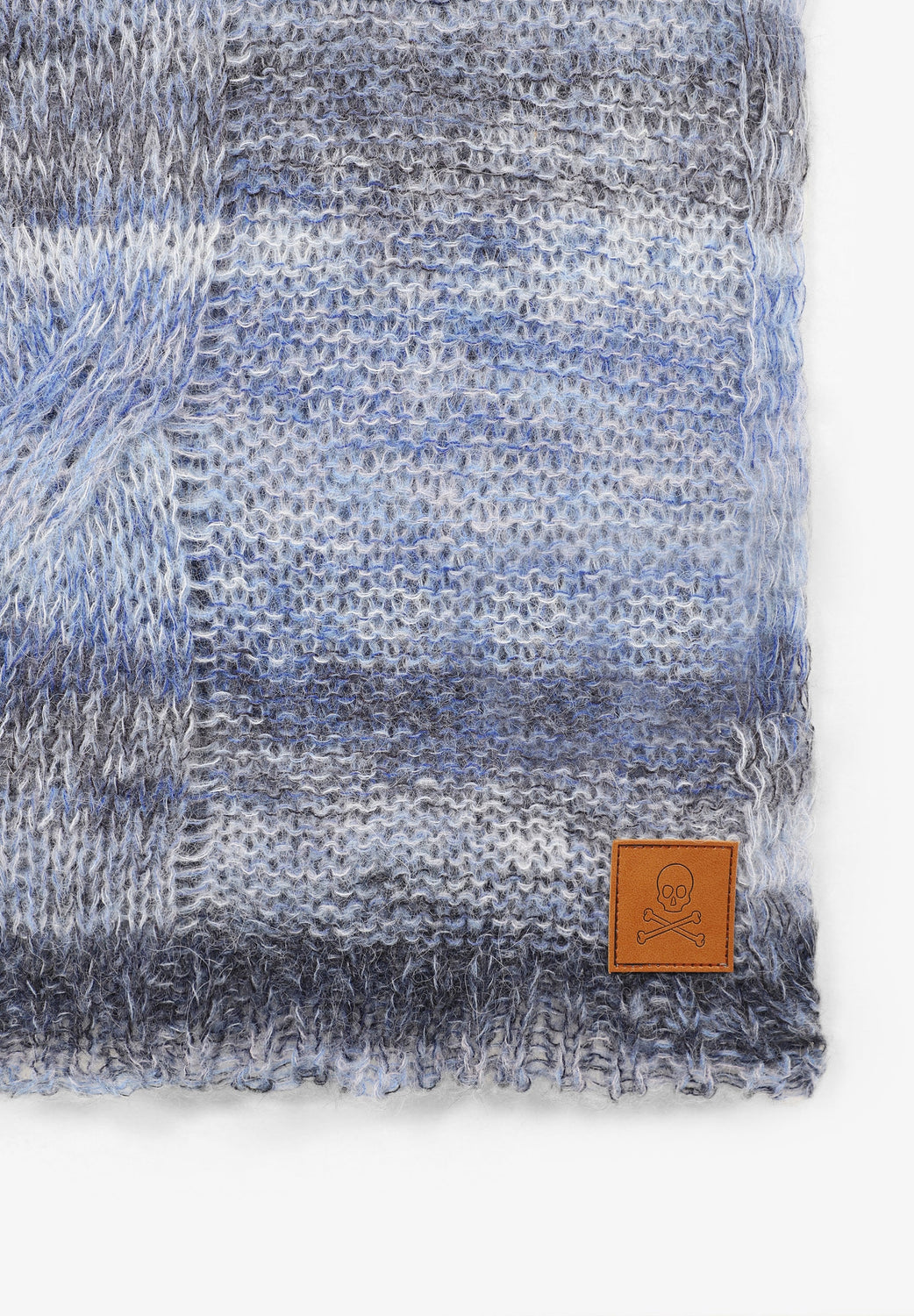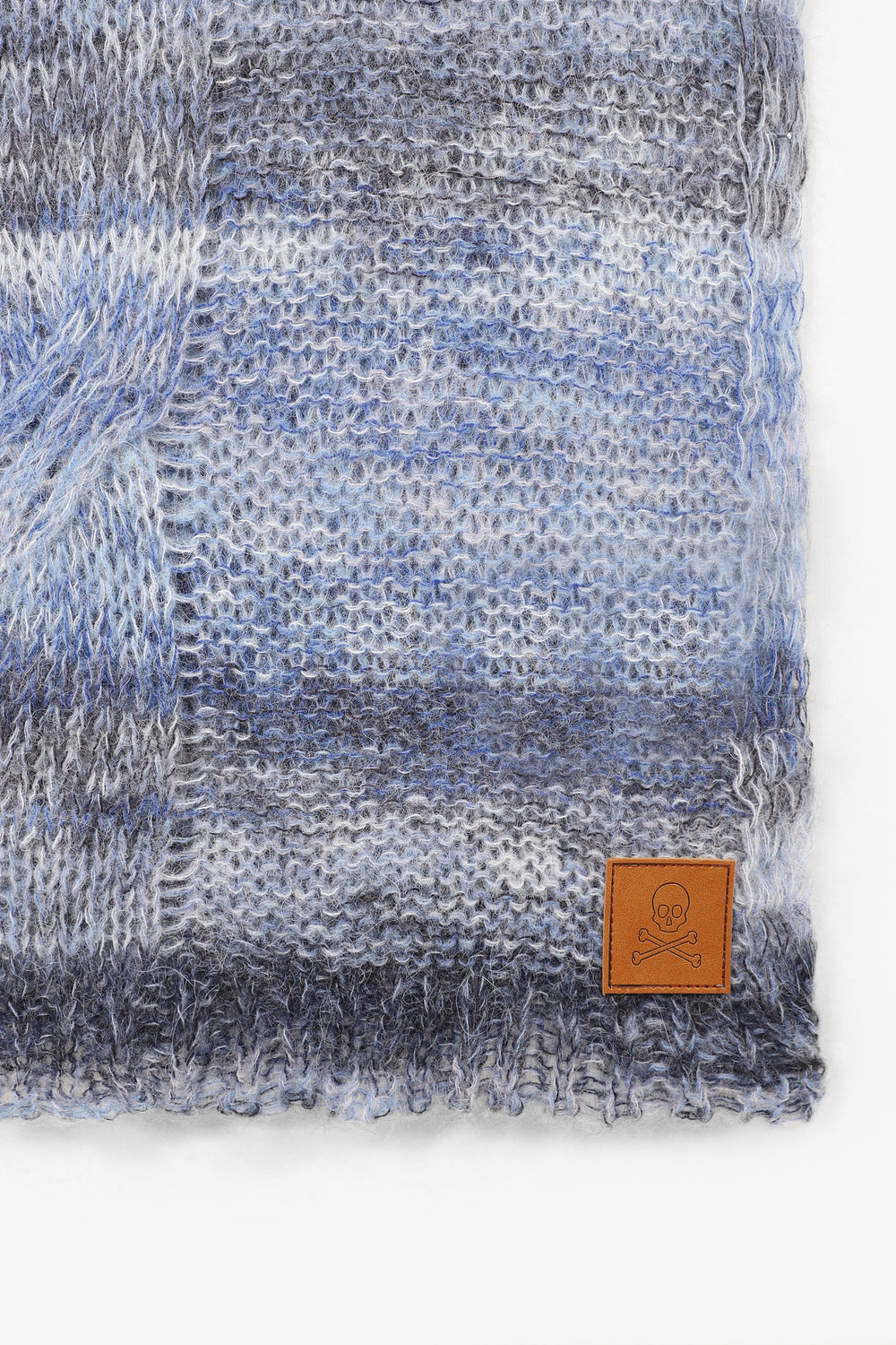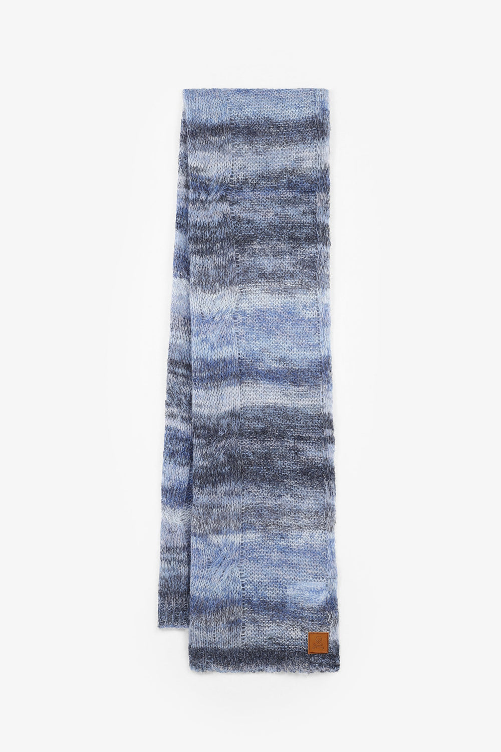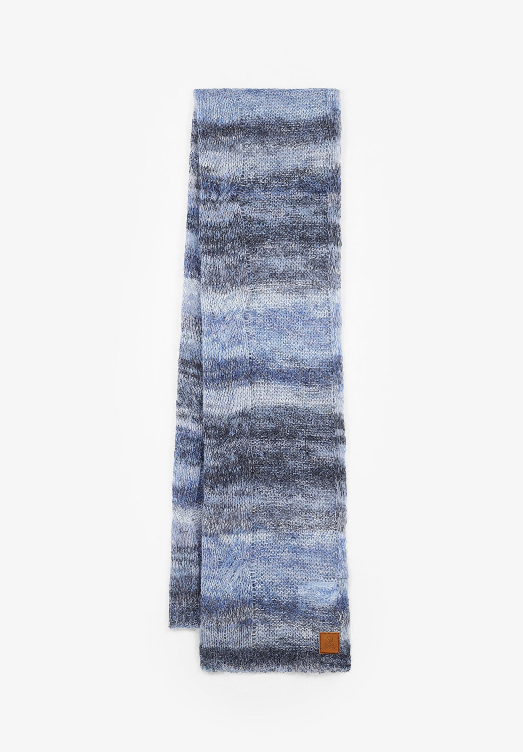 Striped knit scarf in wool blend. Leather label detail. Length: 176 cm / Width: 50 cm.