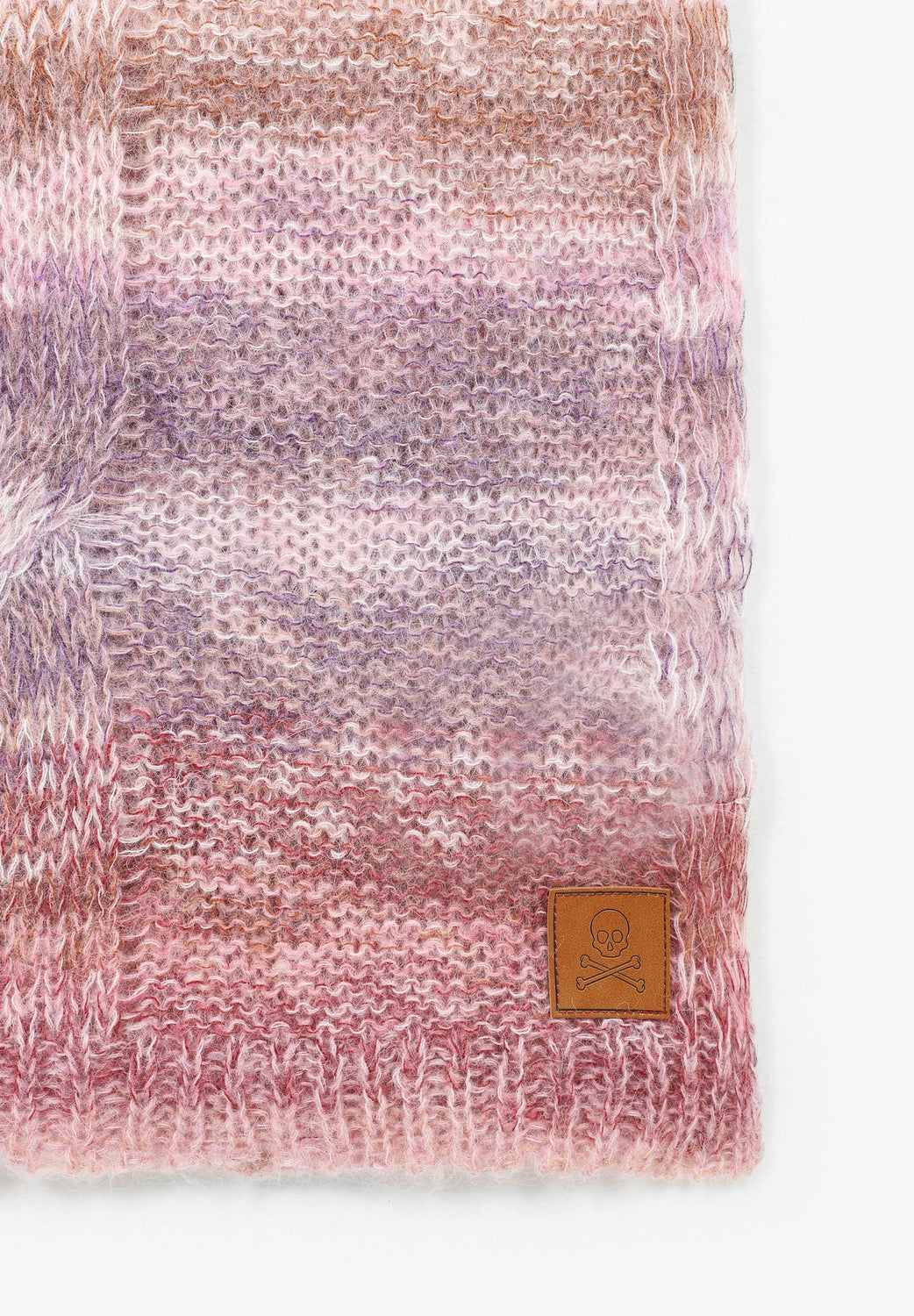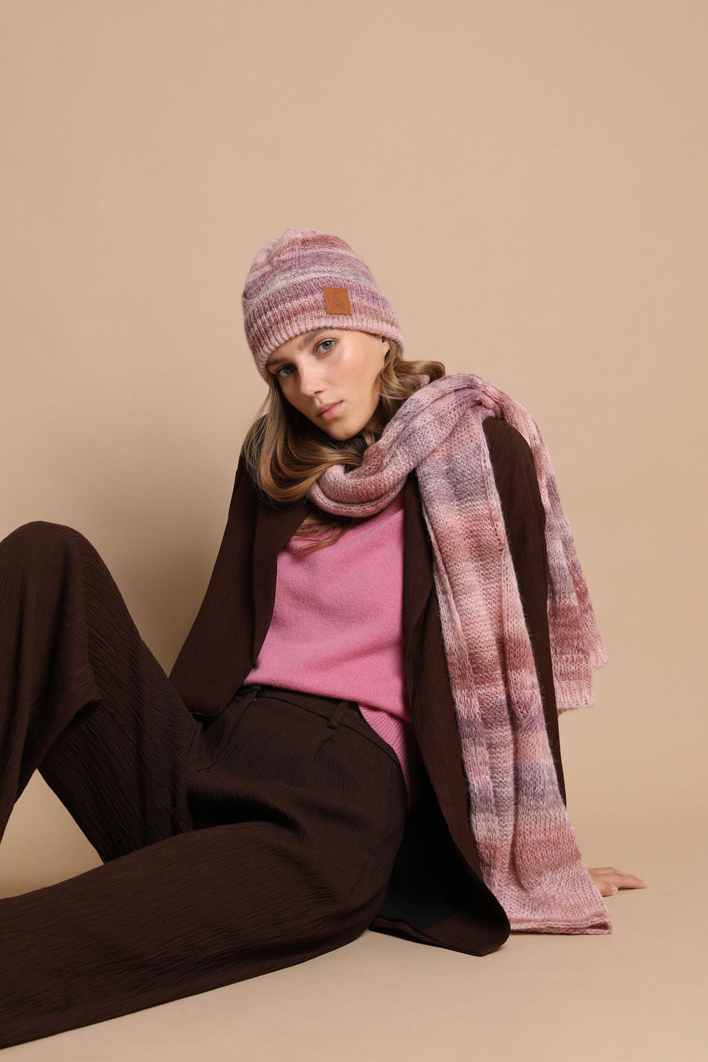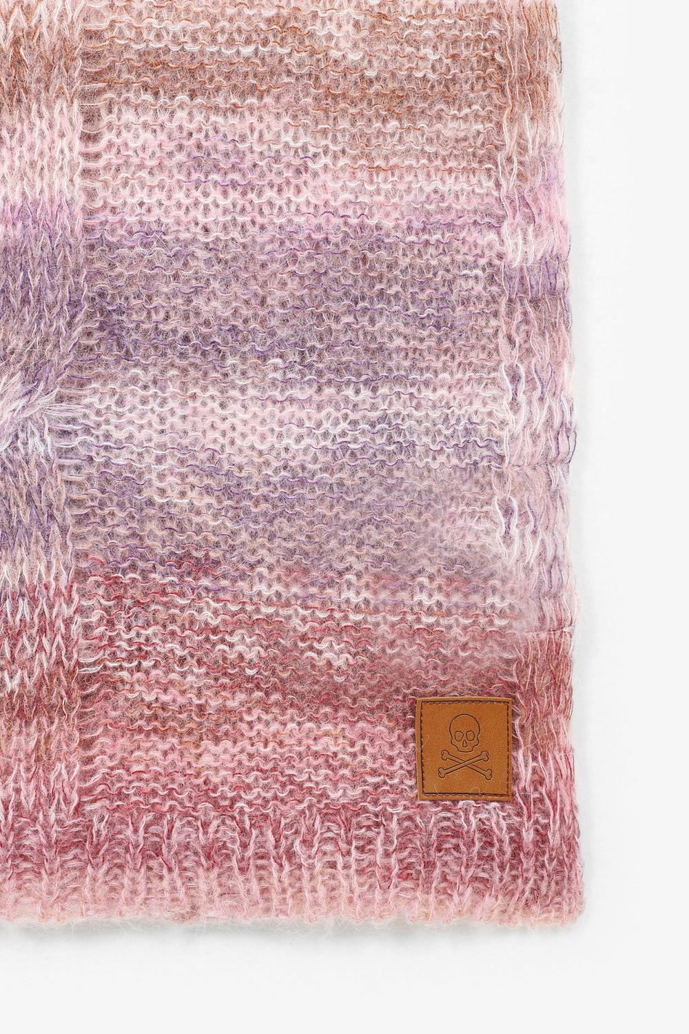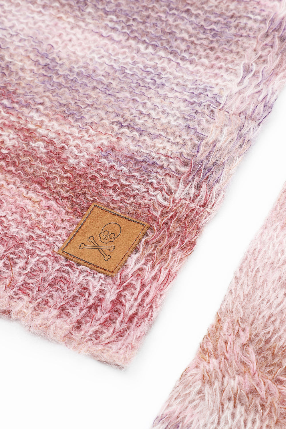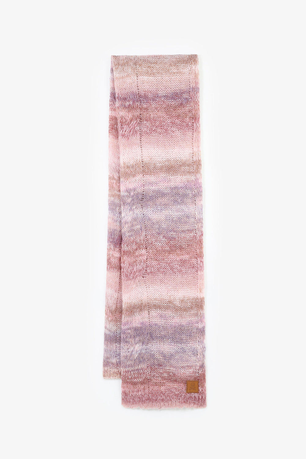 Striped knit scarf in wool blend. Leather label detail. Length: 176 cm / Width: 50 cm.