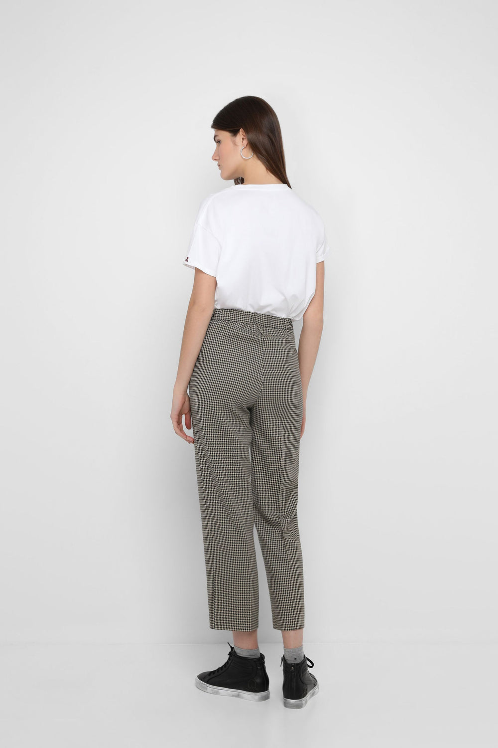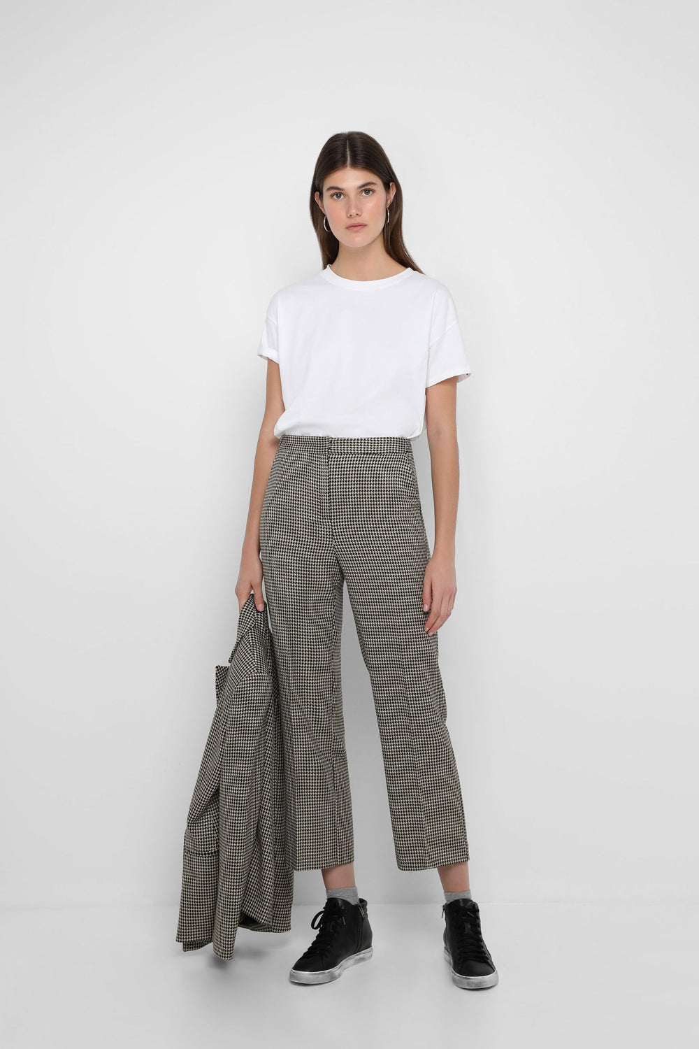 Straight houndstooth trousers made of slightly elastic fabric. Regular fit, zip and snap button fastening and side pockets.