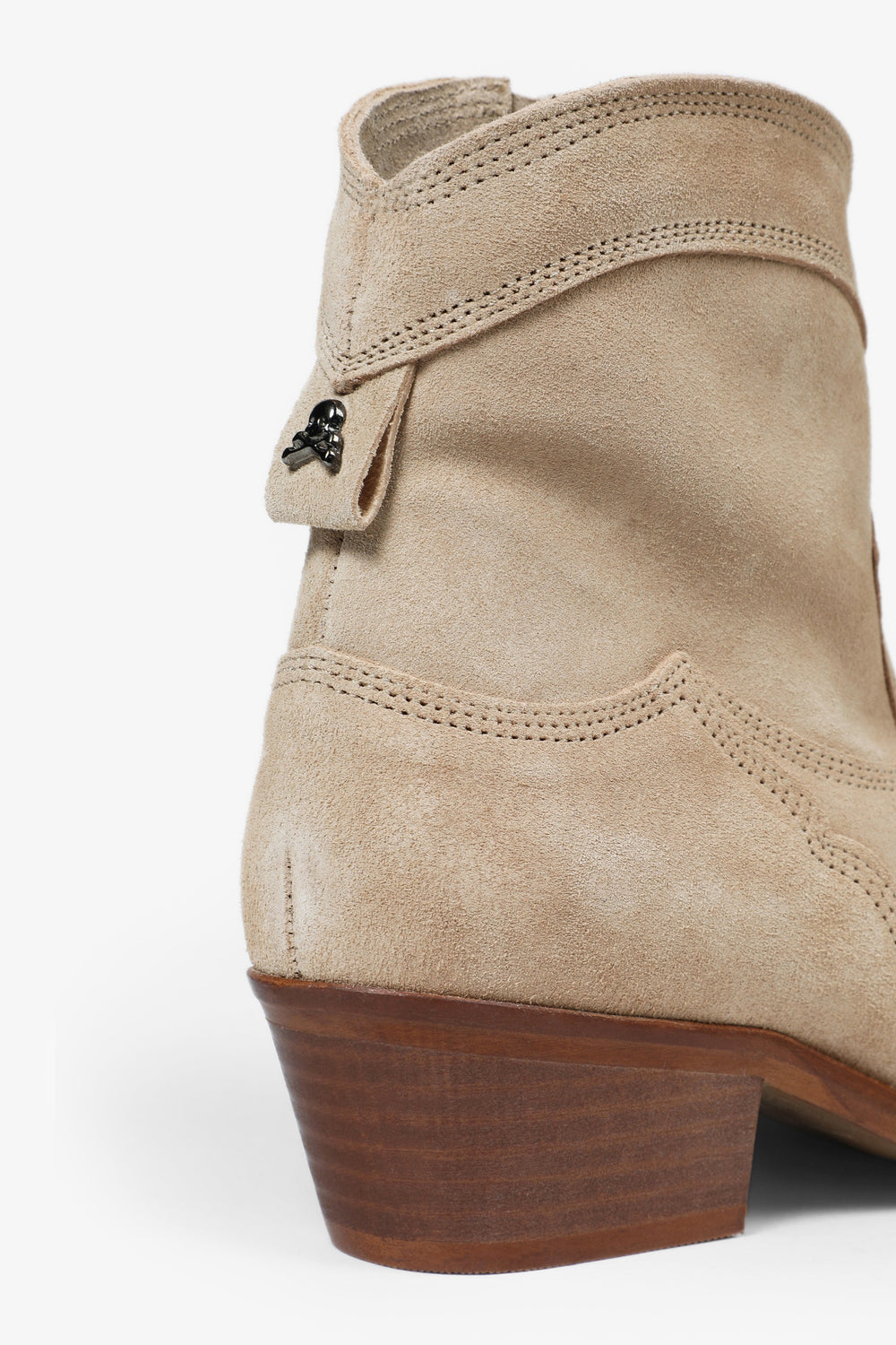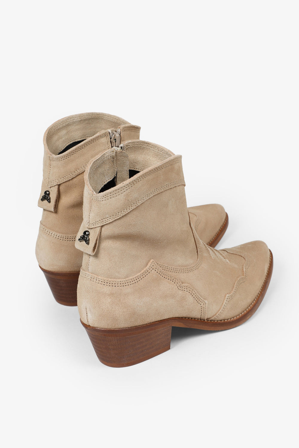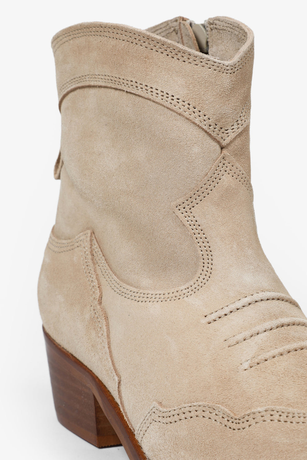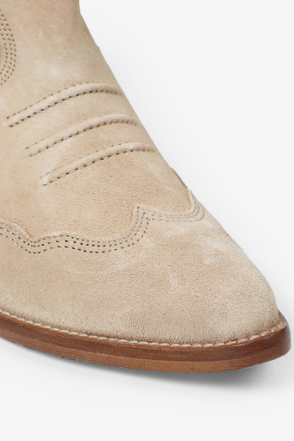 Cowboy ankle boots in 100% leather with suede finish. Back zip fastening. Low leg and low heel. Rubber sole.