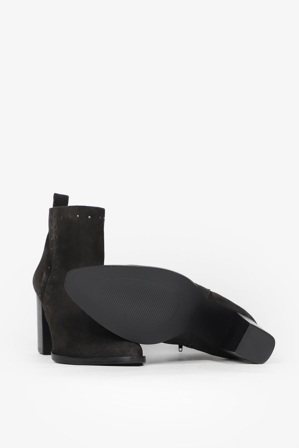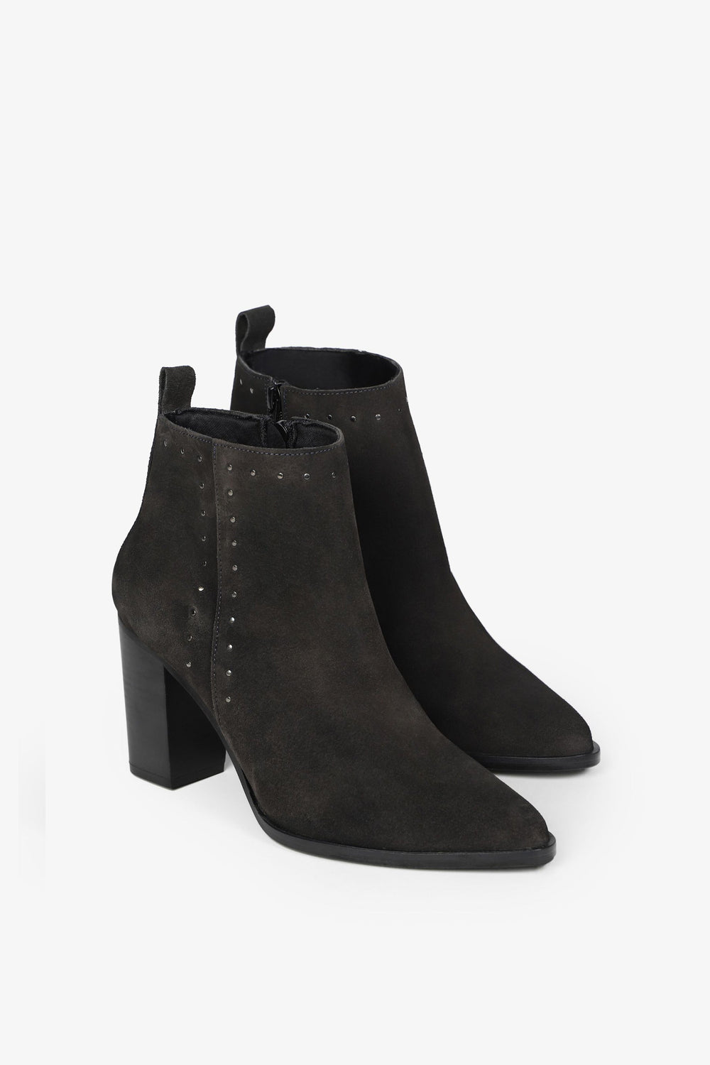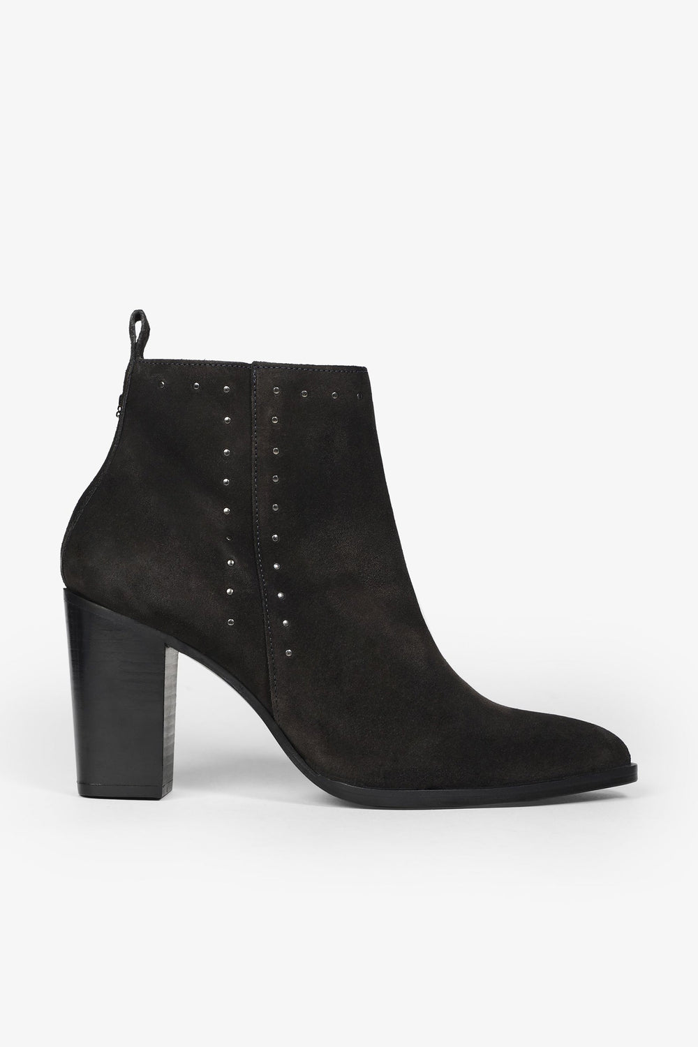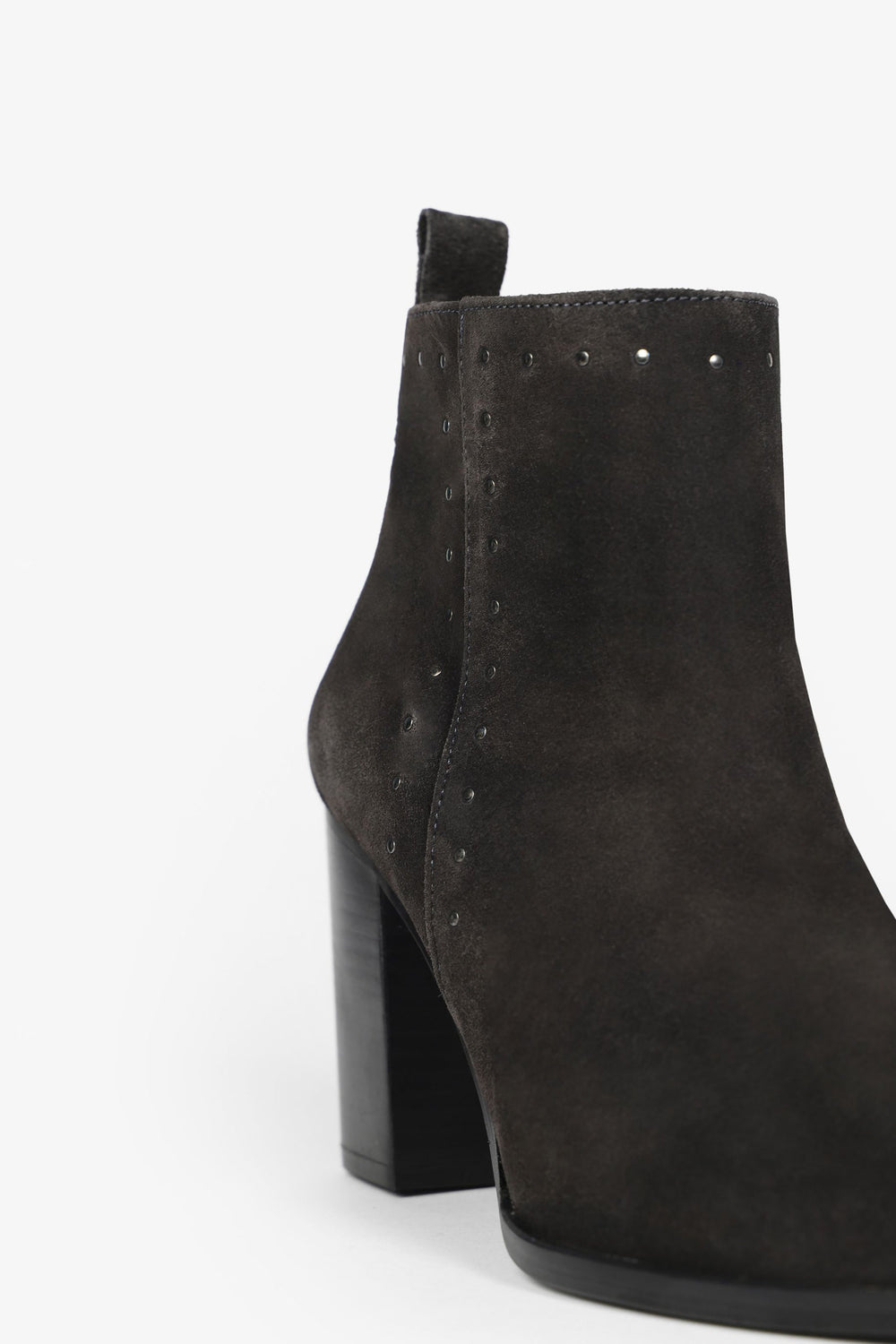 Ankle boots in 100% leather with studs detail and suede finish. Mid-calf and medium heel. Pull detail at the back.