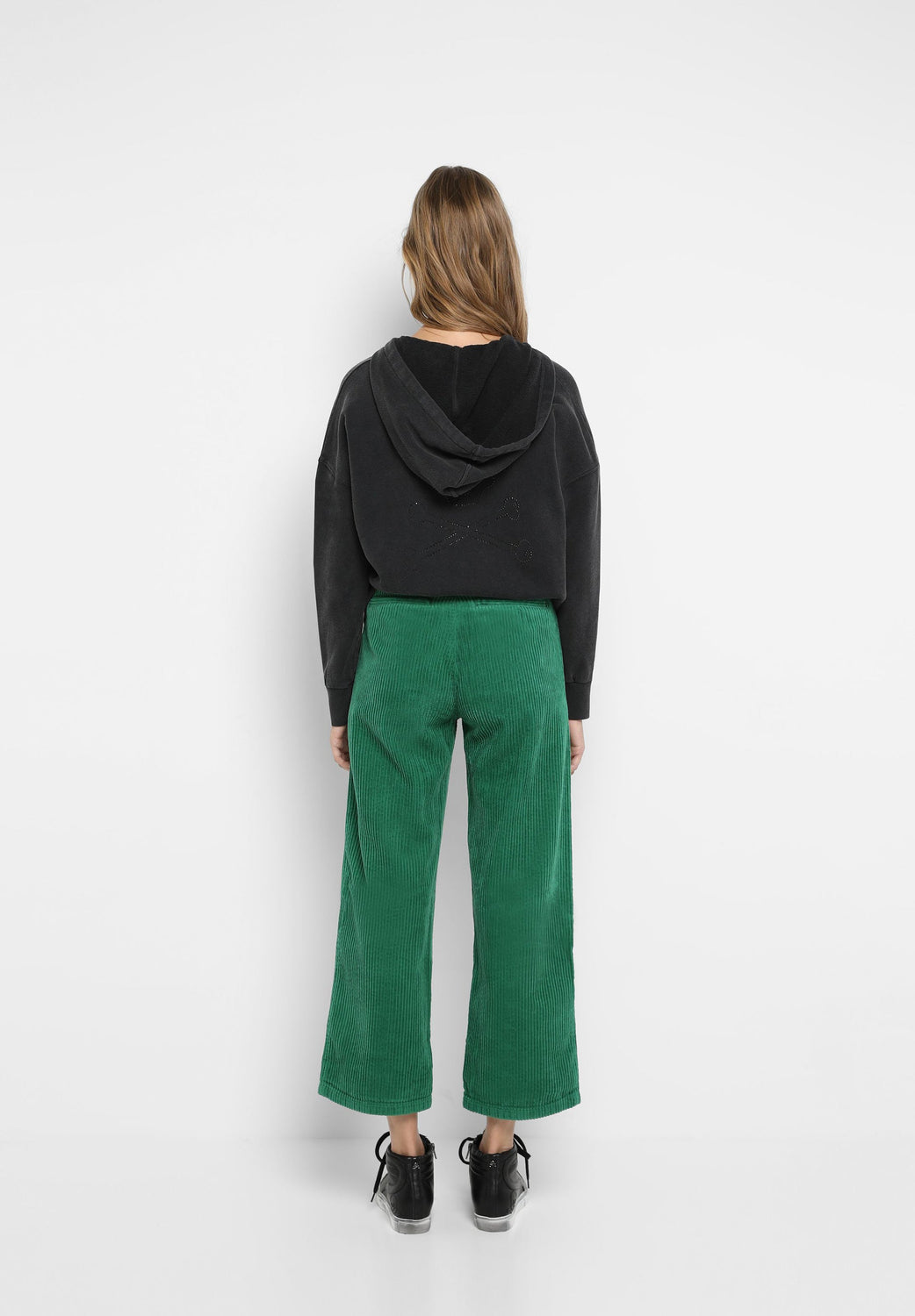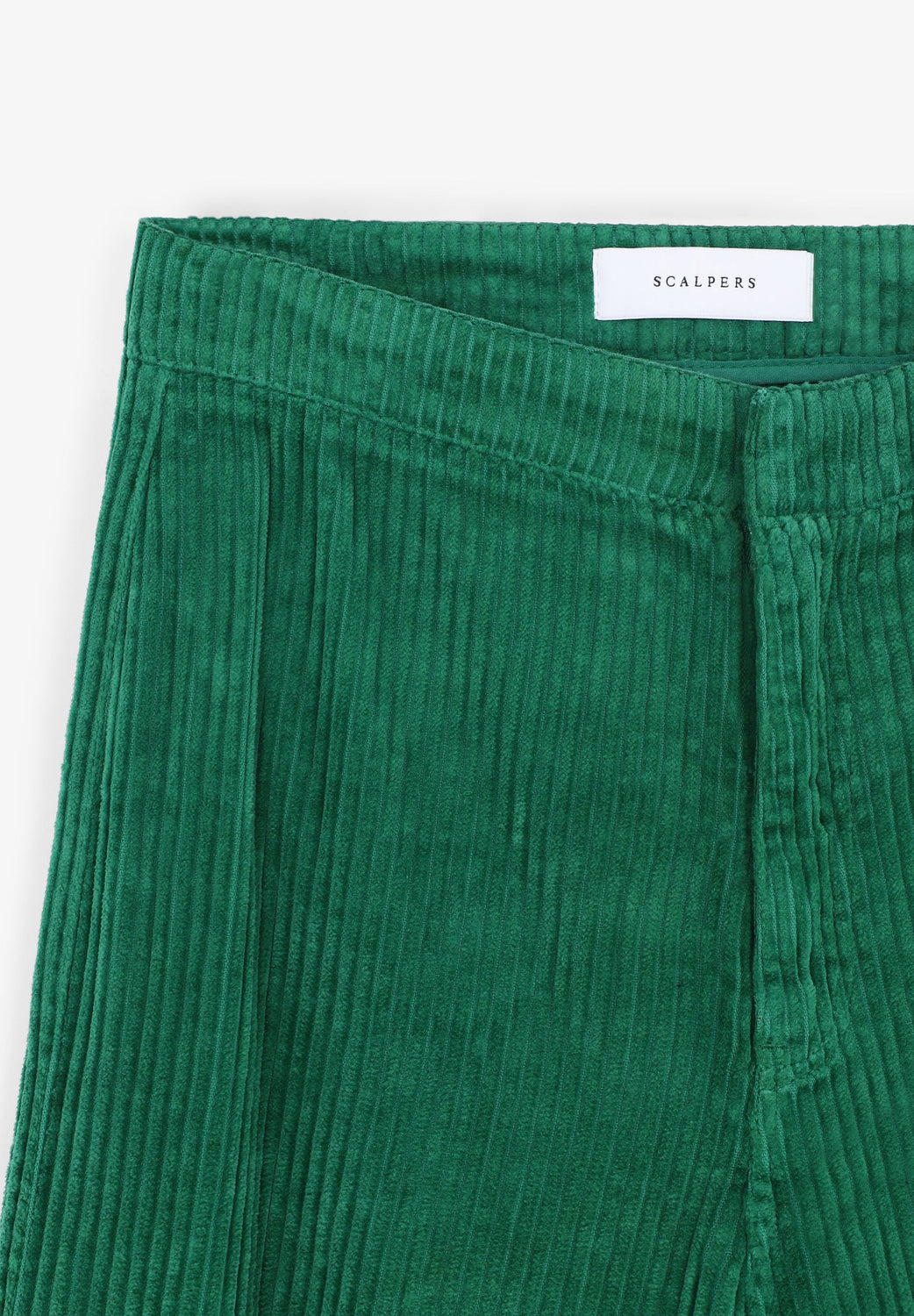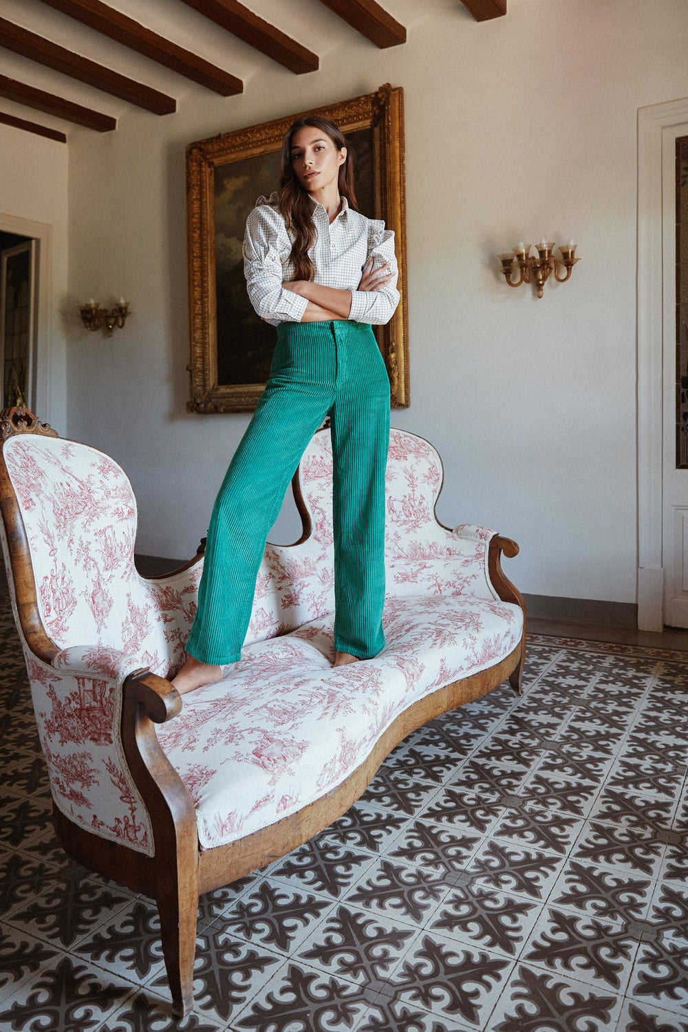 Corduroy trousers made from 100% cotton. Flared cut, high waist and side zip and snap button fastening.