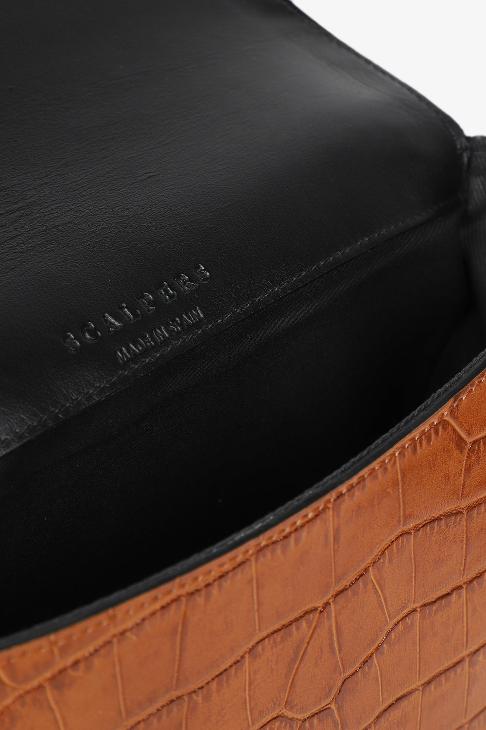 Crocodile-inspired bag made of 100% leather.
