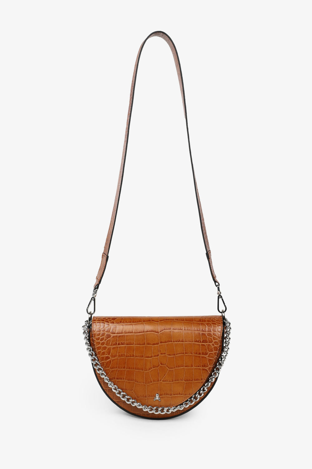 - Flap and magnet closure, detachable long handle and chain detail.