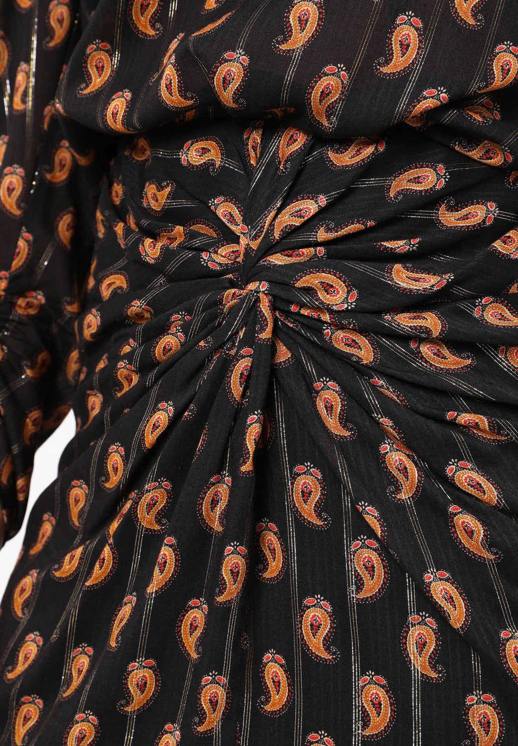 Paisley print mini skirt with metallic fibre blend. Slim fit, zip fastening and gathered detail in the centre.