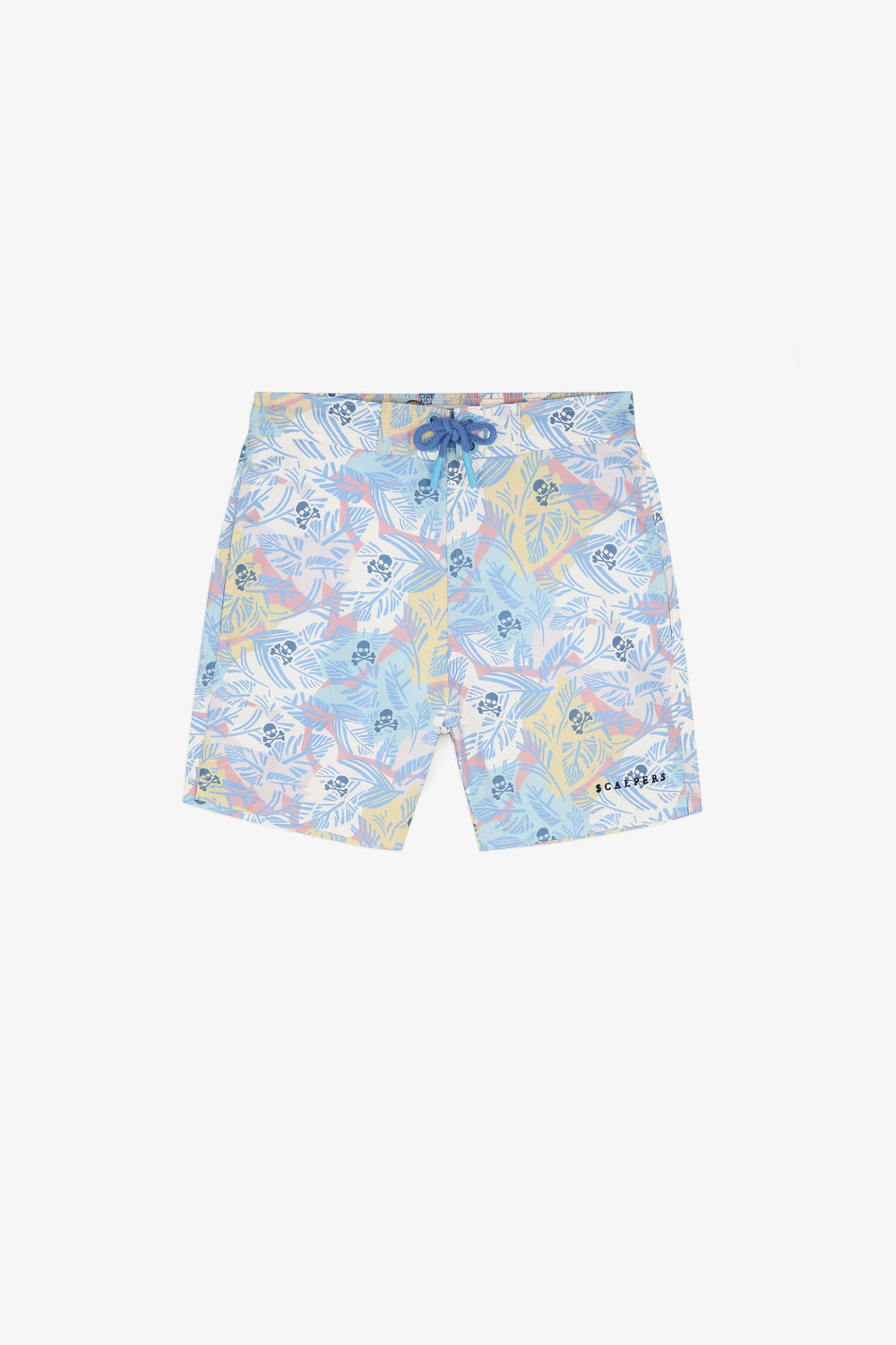 Swimming trunks with tropical motifs and skulls. Regular fit, double drawstring fastening and side and back flap pockets.