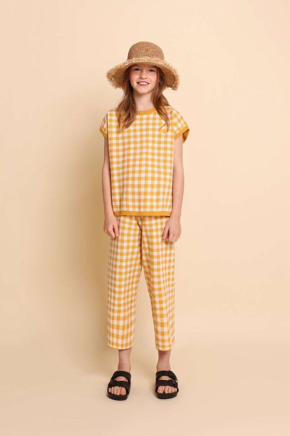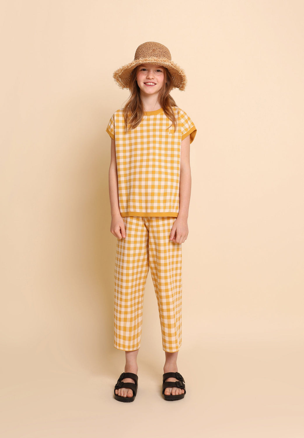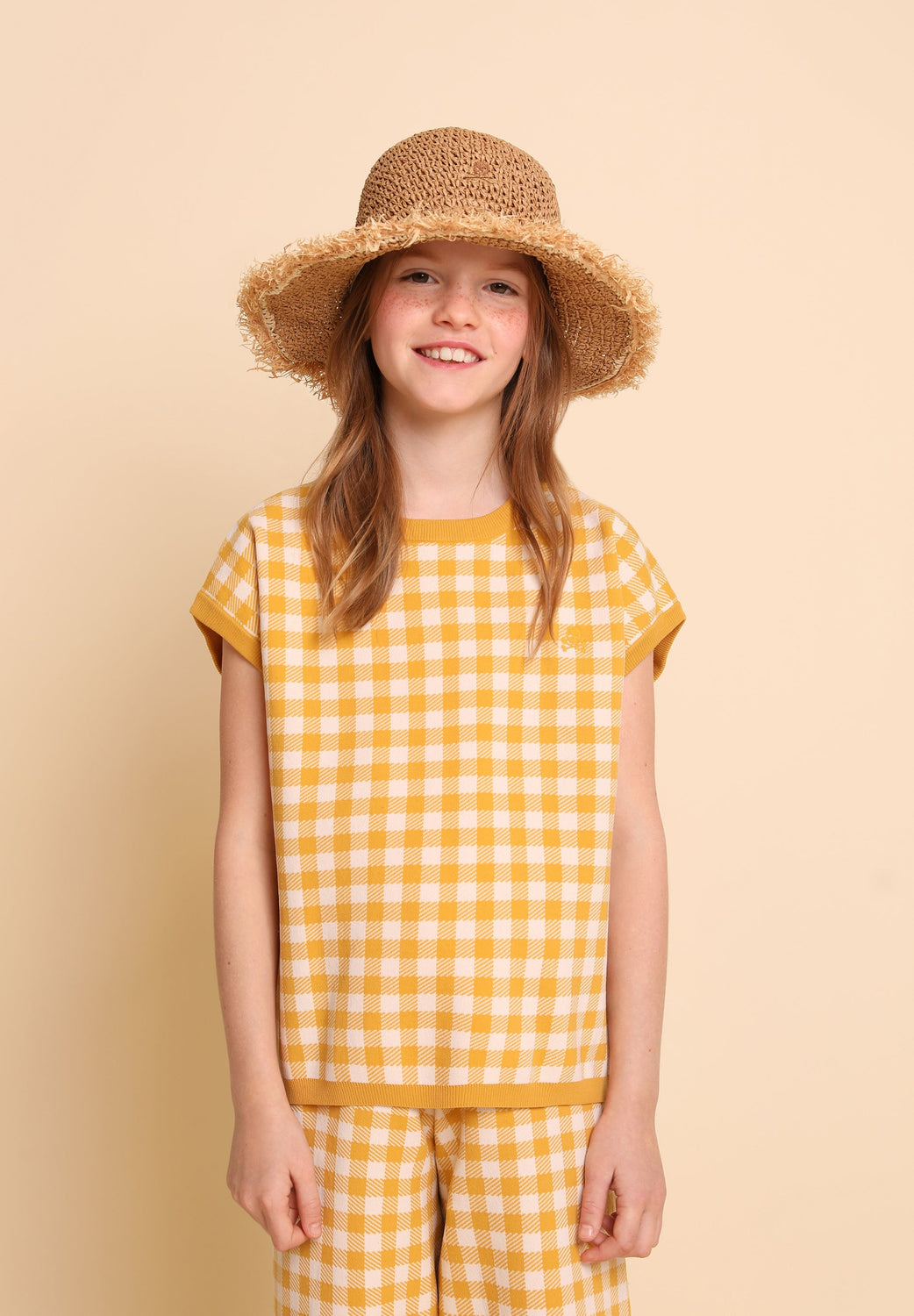 GINGHAM SWEATER WITH SHORT SLEEVES