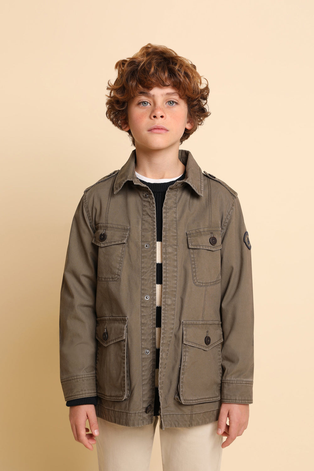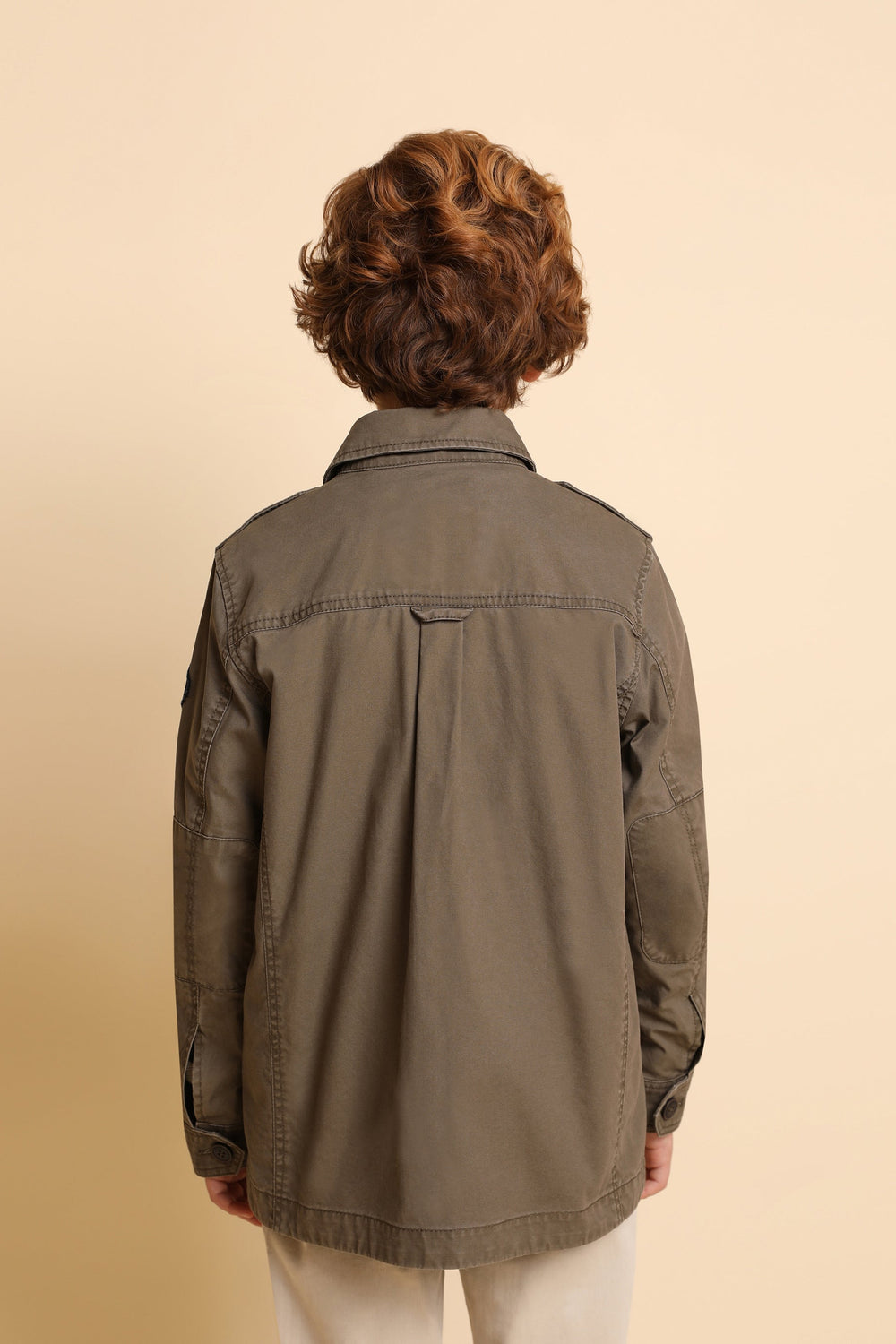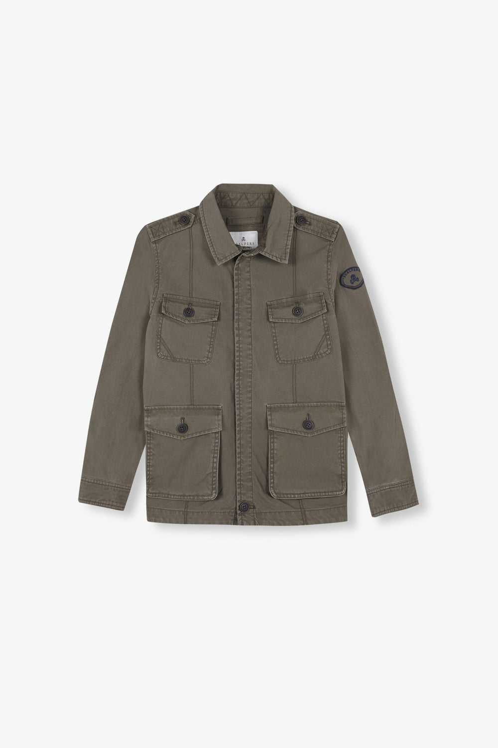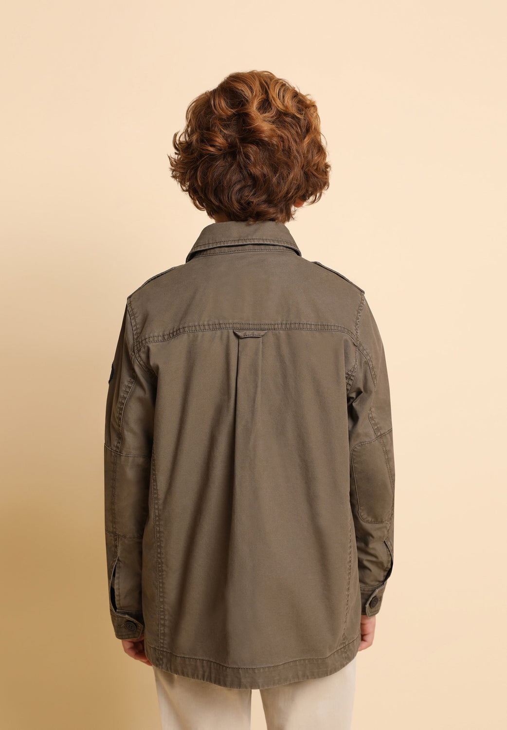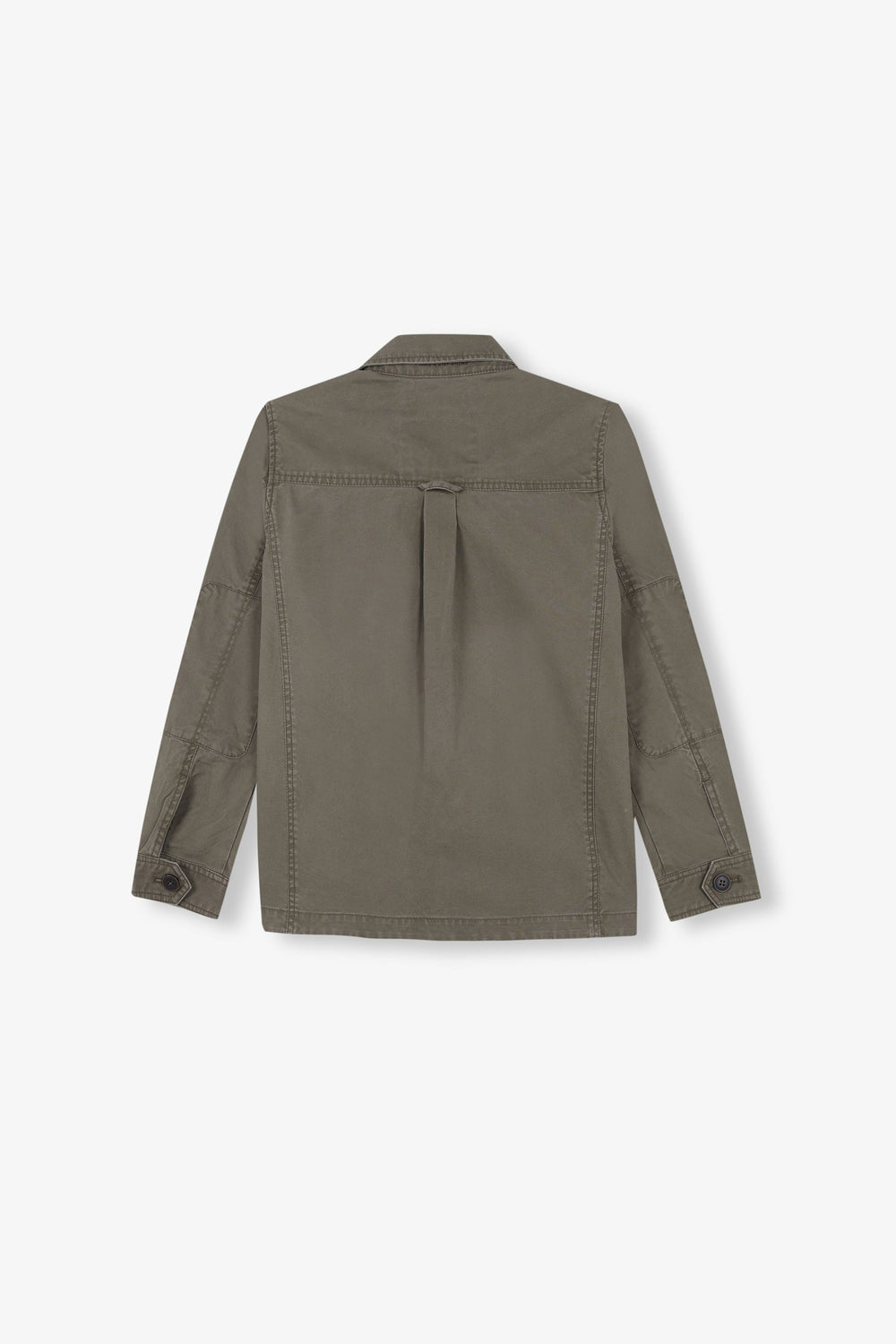 Lightweight jacket made of 100% BCI cotton. Regular fit, Kent collar and button fastening hidden by a placket. Multiple pockets, long sleeves and should detail.