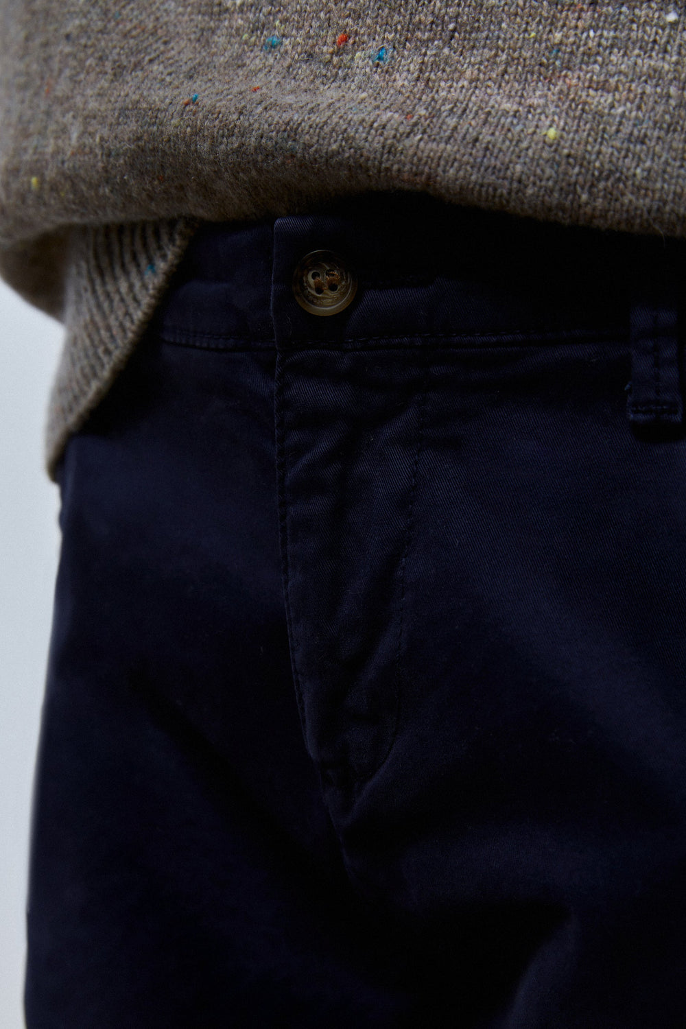 Chino trousers. Made of a slightly stretchy cotton blend Regular fit Button and zip fastening Side and back pockets Belt loops
