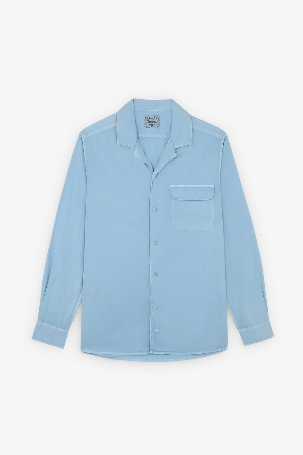 Short pyjama shirt made of slightly stretch cotton fabric. Regular fit, pyjama collar and long cuffed sleeves. Chest pockets.