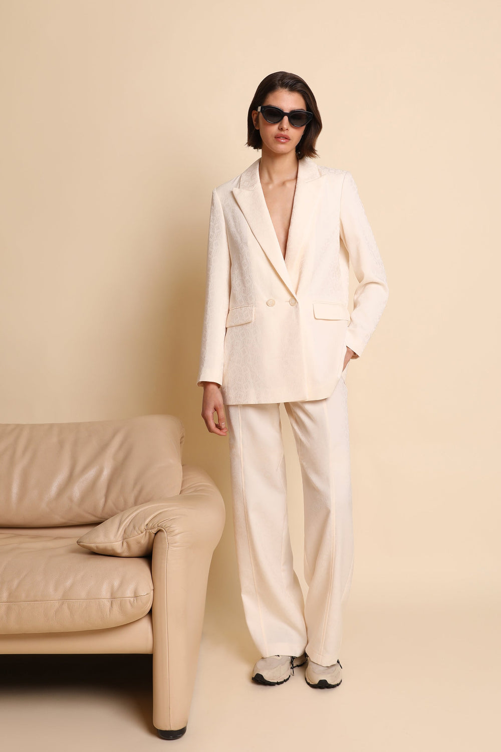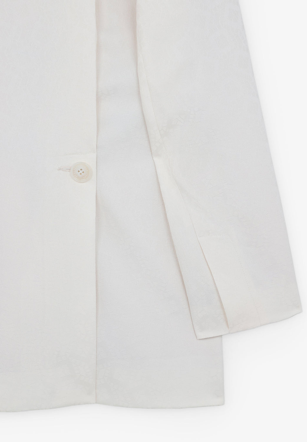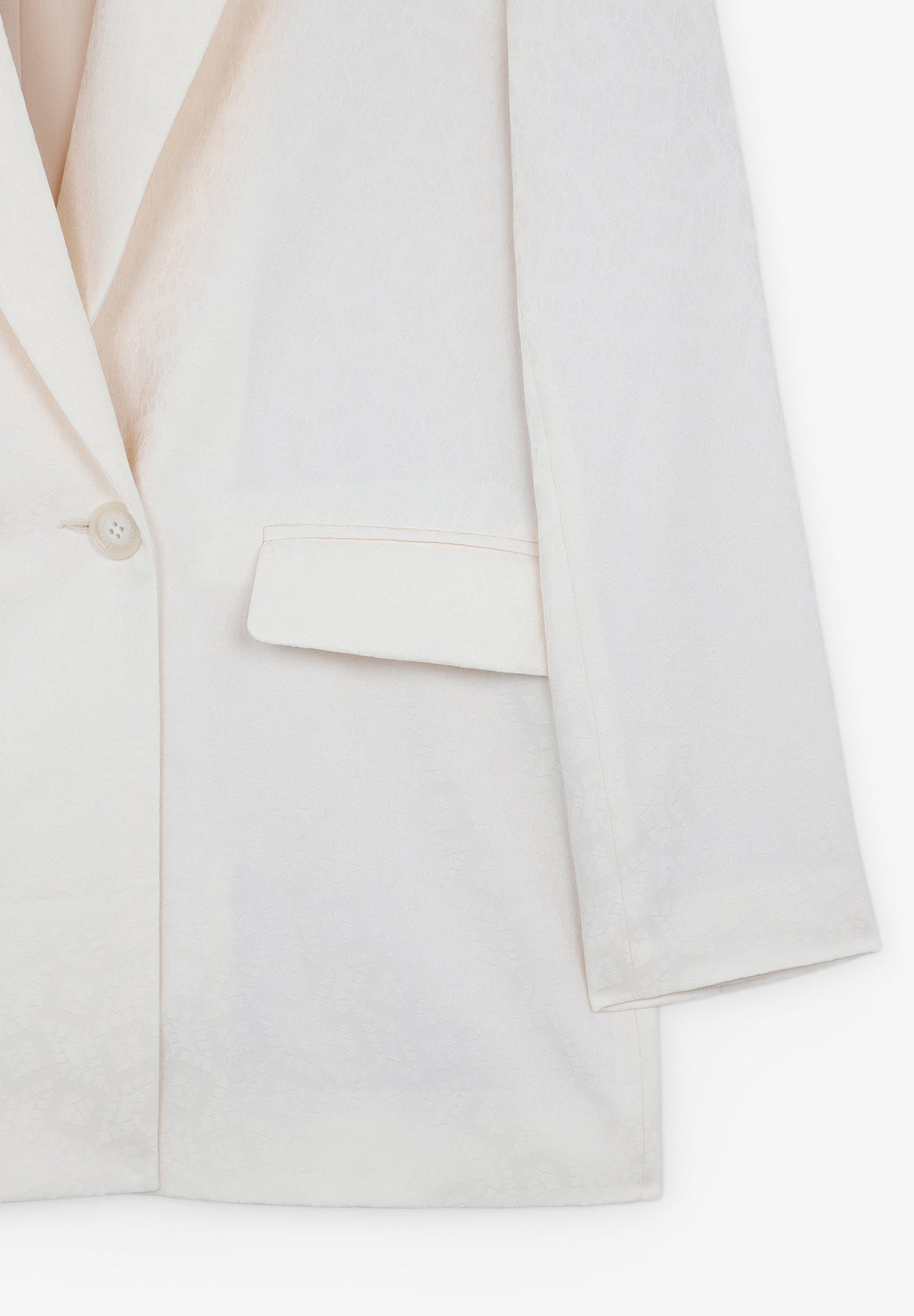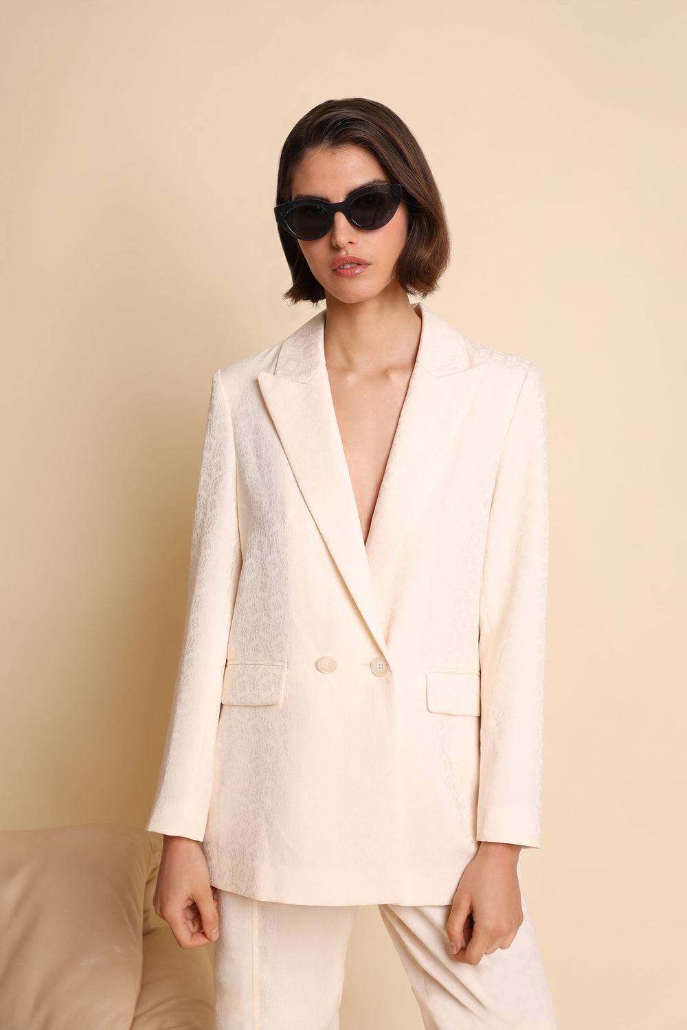 Blazer with jacquard, made of a loose-fitting fabric. Regular fit, peaked lapel collar and double-breasted button fastening. Long sleeves and side pocket with flap.