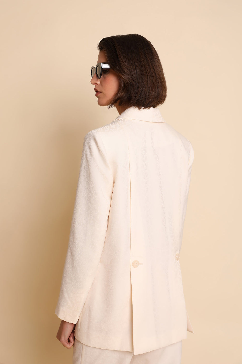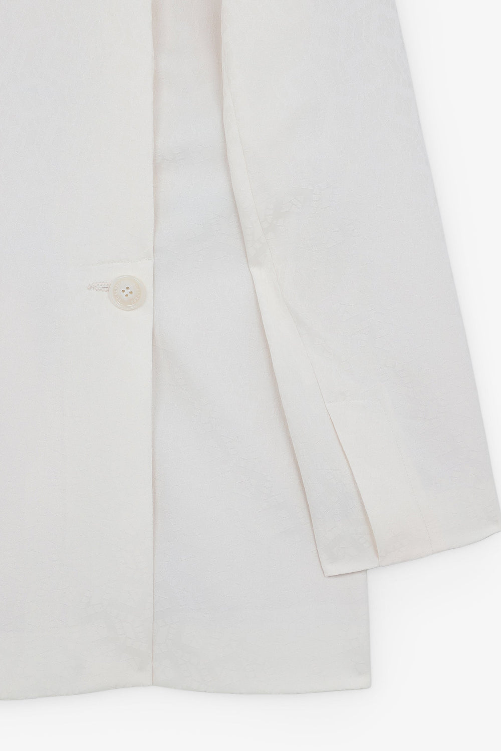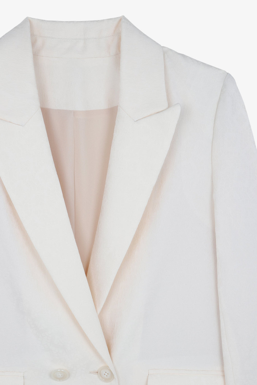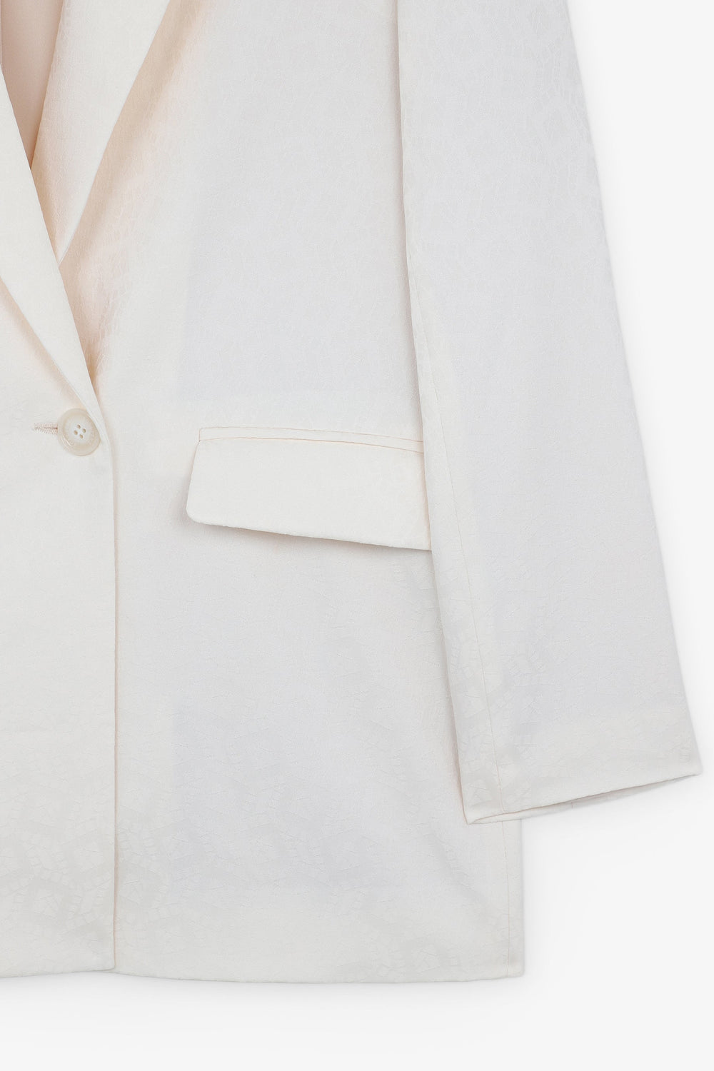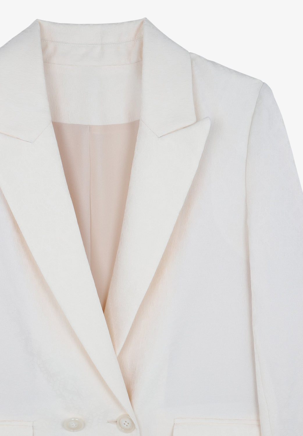 Blazer with jacquard, made of a loose-fitting fabric. Regular fit, peaked lapel collar and double-breasted button fastening. Long sleeves and side pocket with flap.