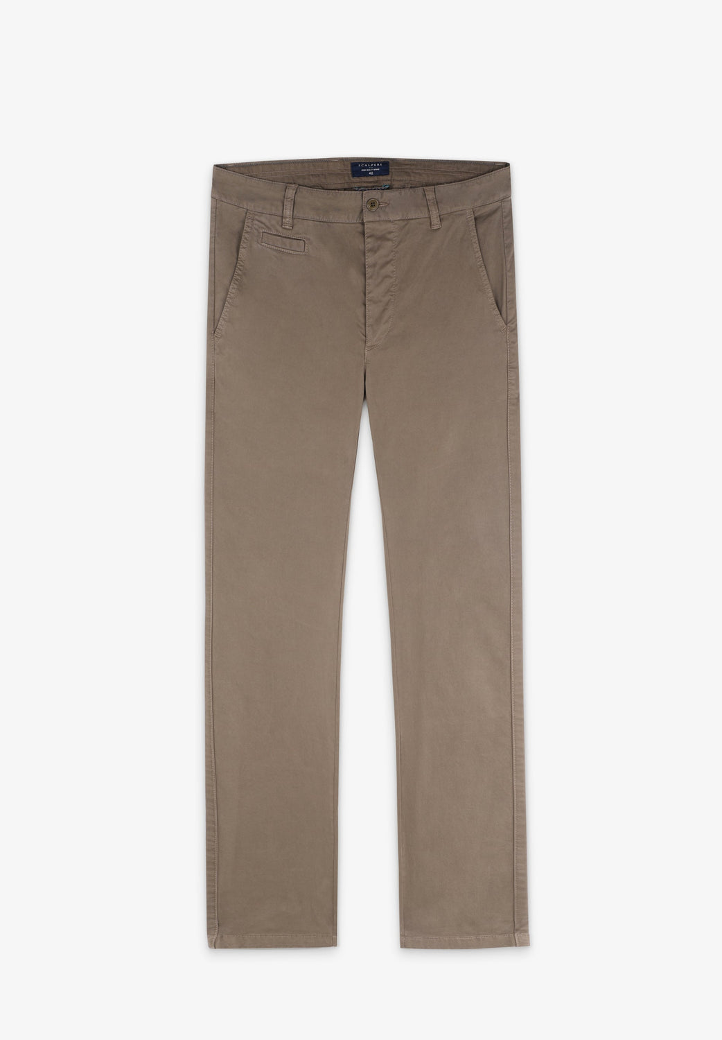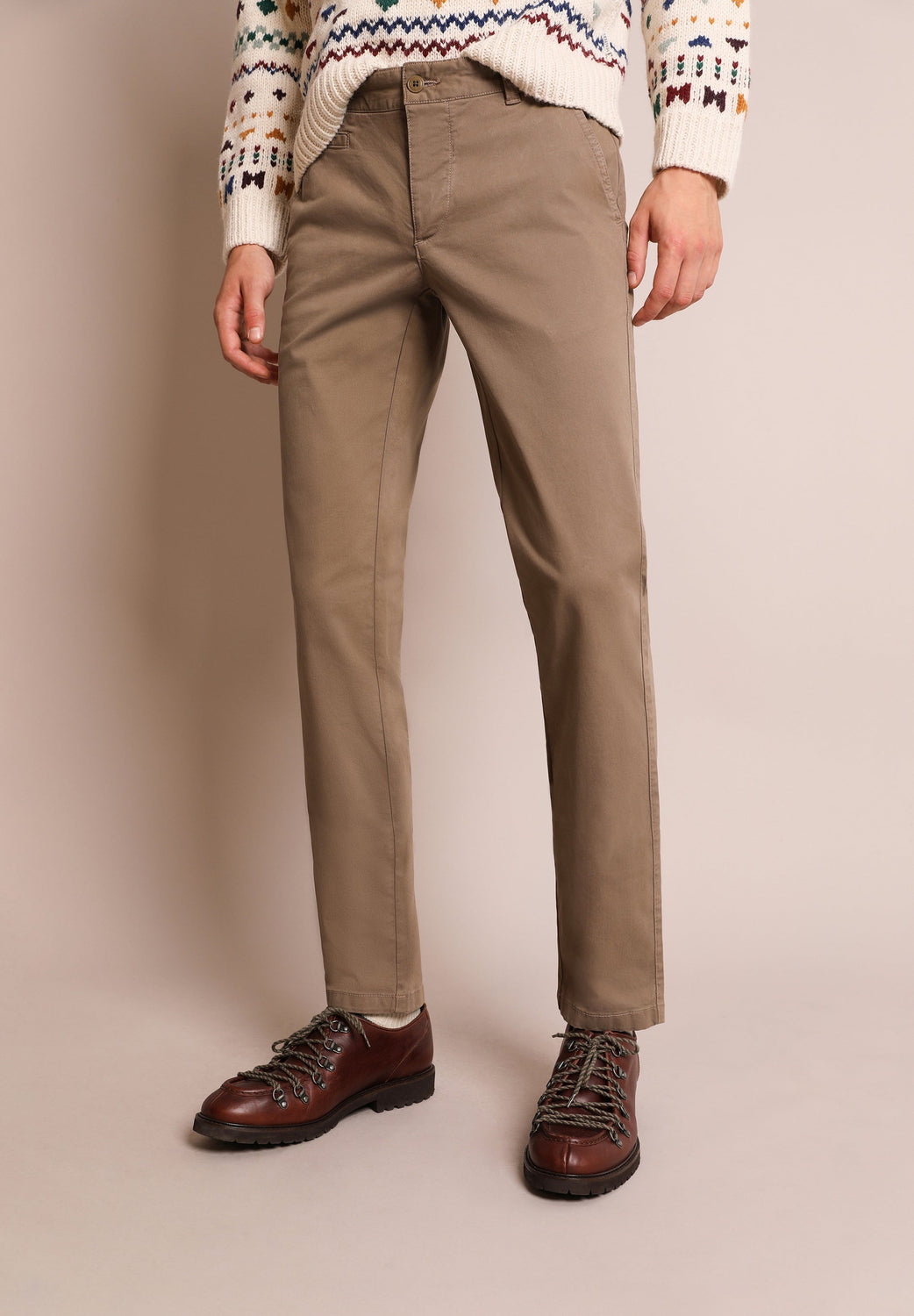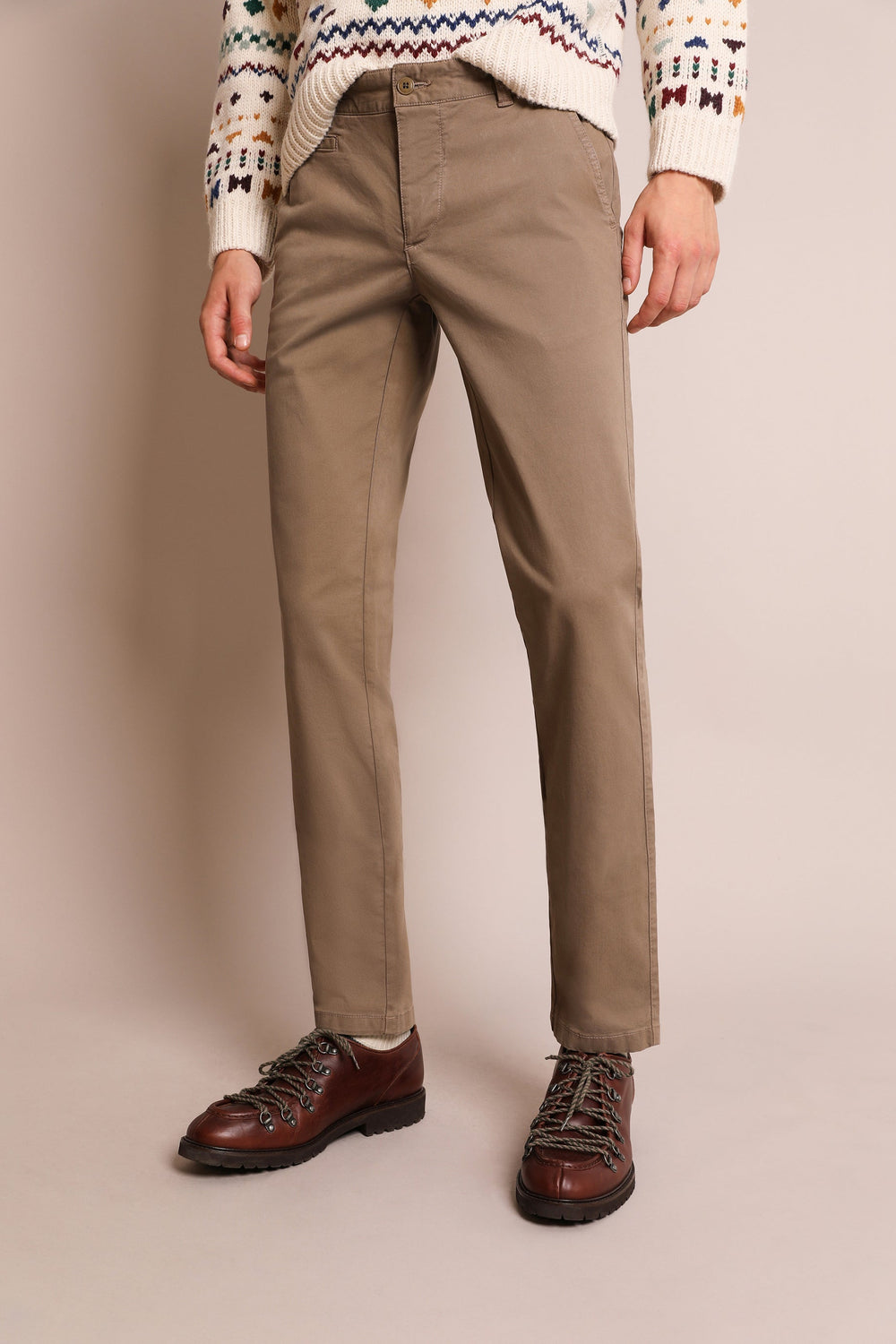 Chino trousers. Made from slightly stretchy BCI cotton, regular fit, button and zip fastening, side pockets and belt loops at the waist