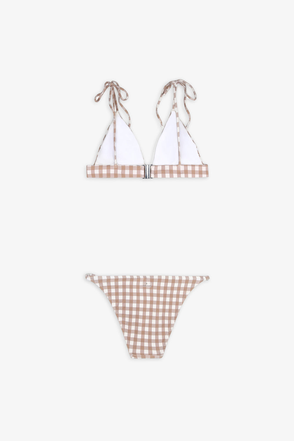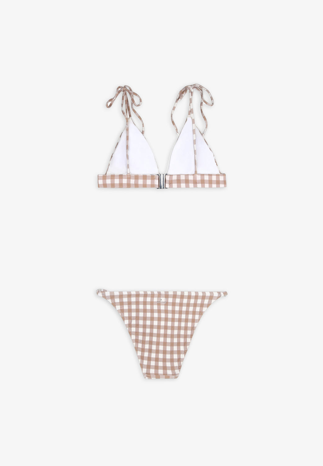 Gingham print bikini made of technical fabric. Top with straps, bow and back fastening and classic briefs.