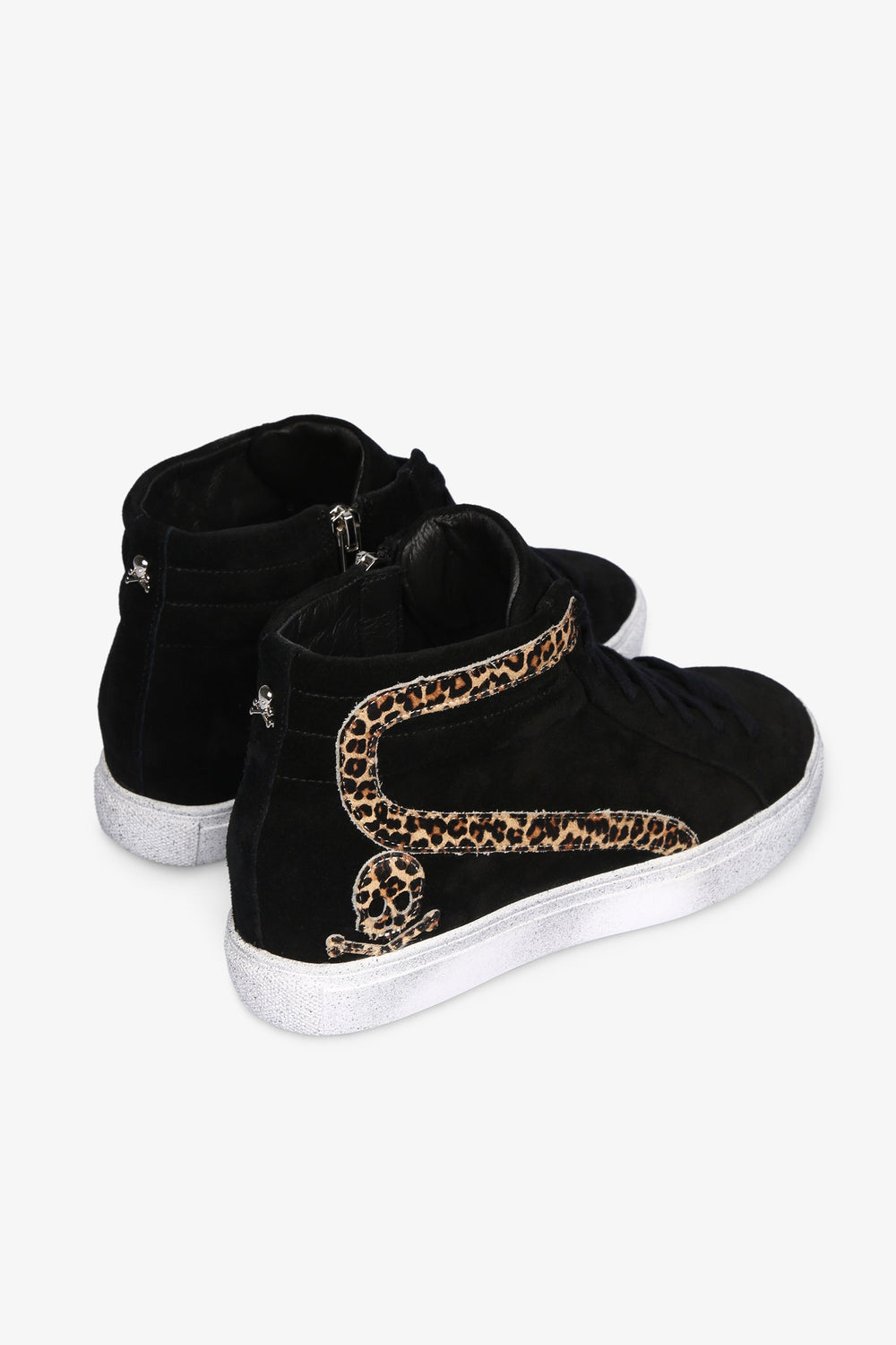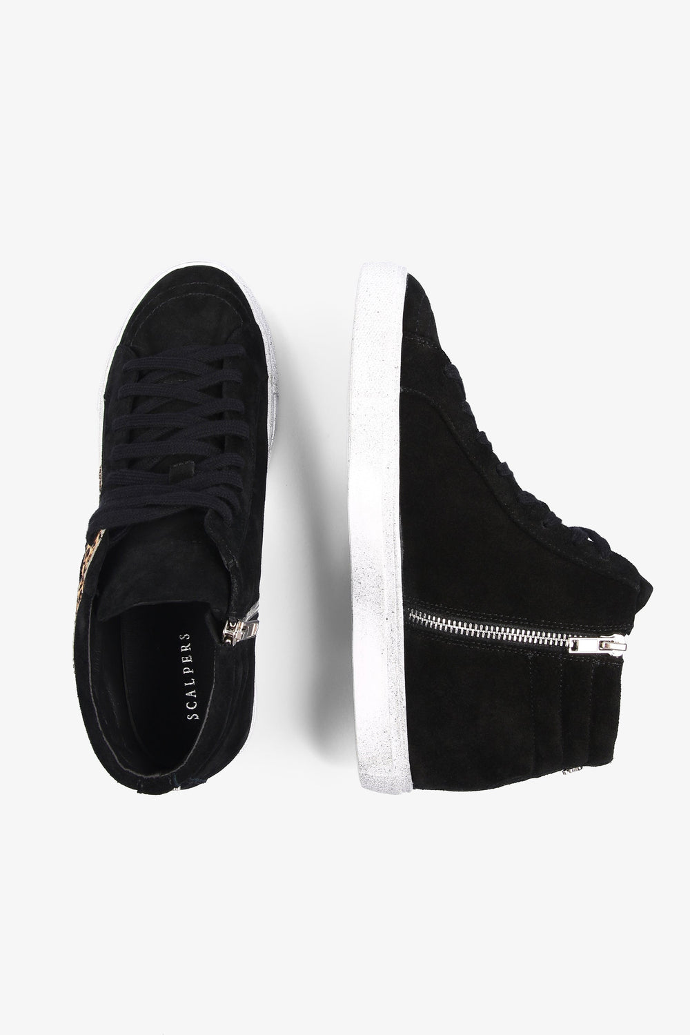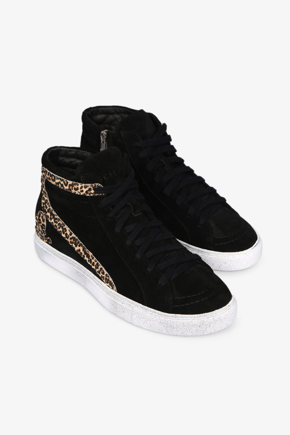 Sneakers with animal print made of leather finished in suede. Matching lace-up fastening, side zip and worn effect contrast rubber sole. Heel height: 2.5 cm / Leg height: 9 cm.