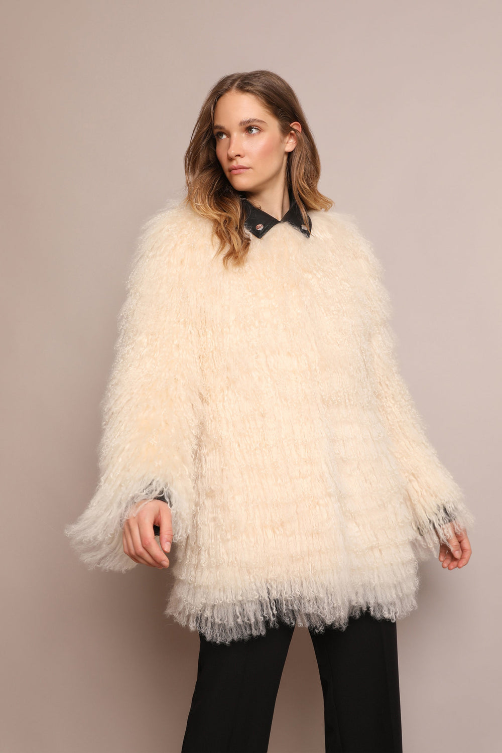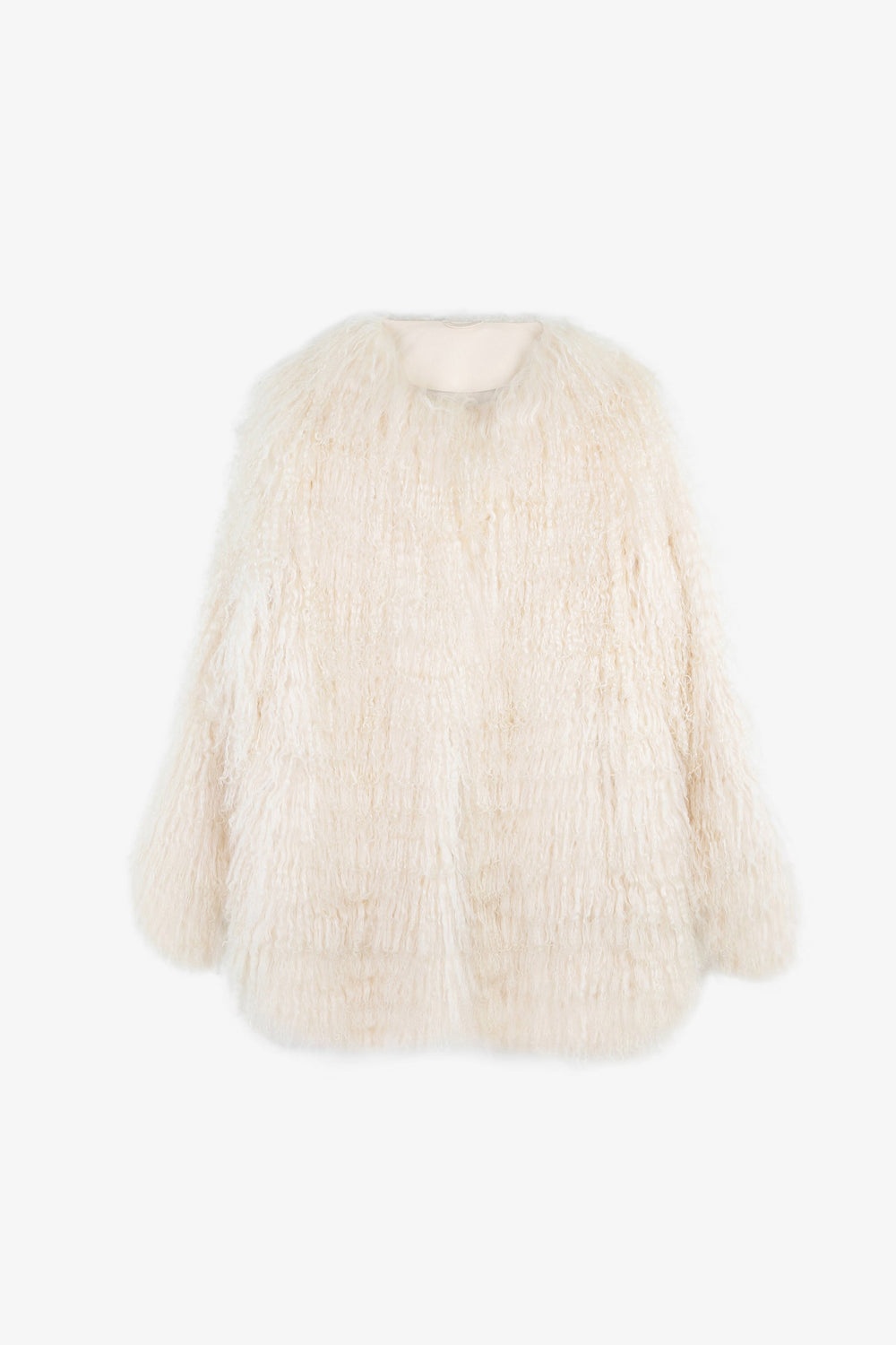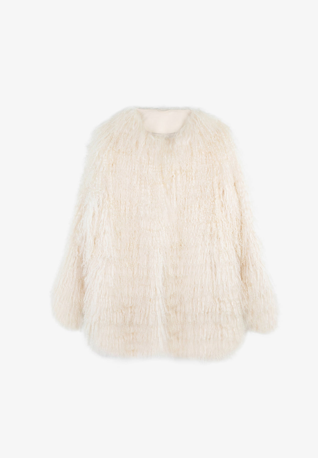 Premium fur coat made of 100% leather. Regular fit, round neck and long sleeves.