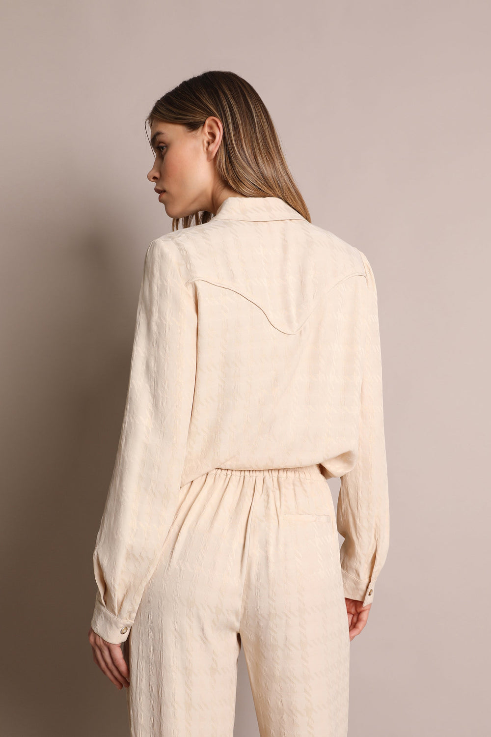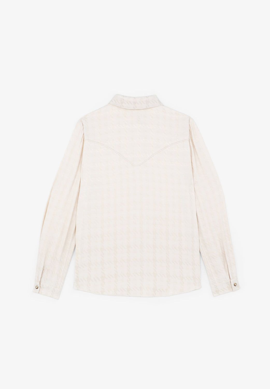 Shirt made from jacquard loose-fitting fabric. Regular fit, classic collar and snap-button fastening. Long sleeves with buttoned cuffs.