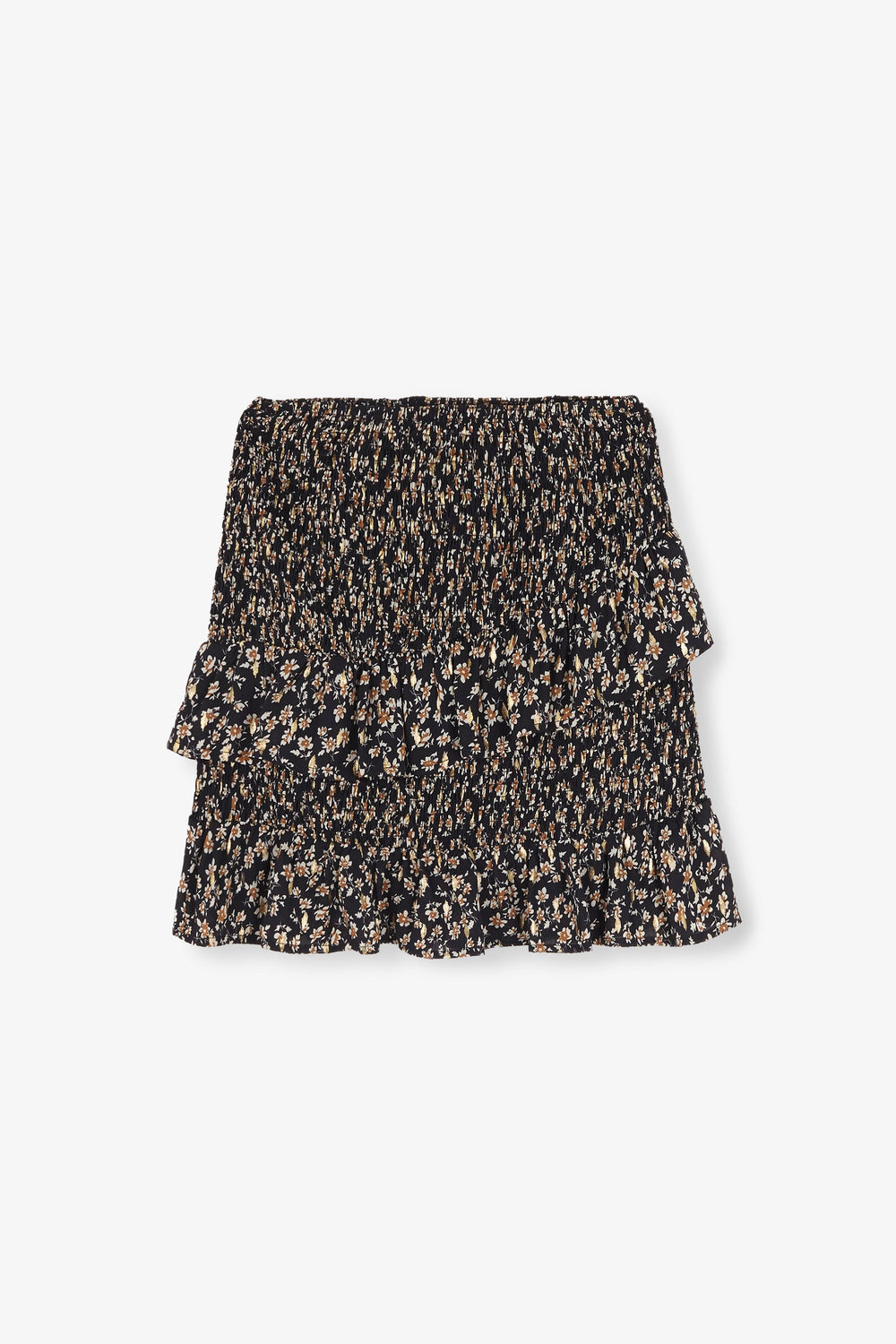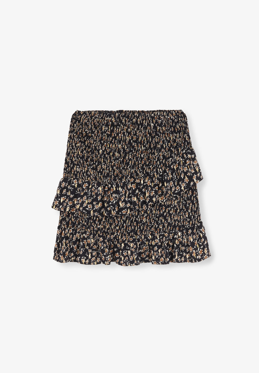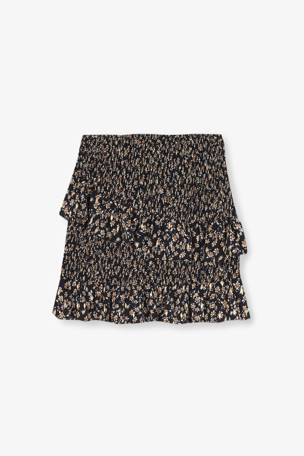 Mini skirt with floral print. Slim fit, gathered fabric and double frill.