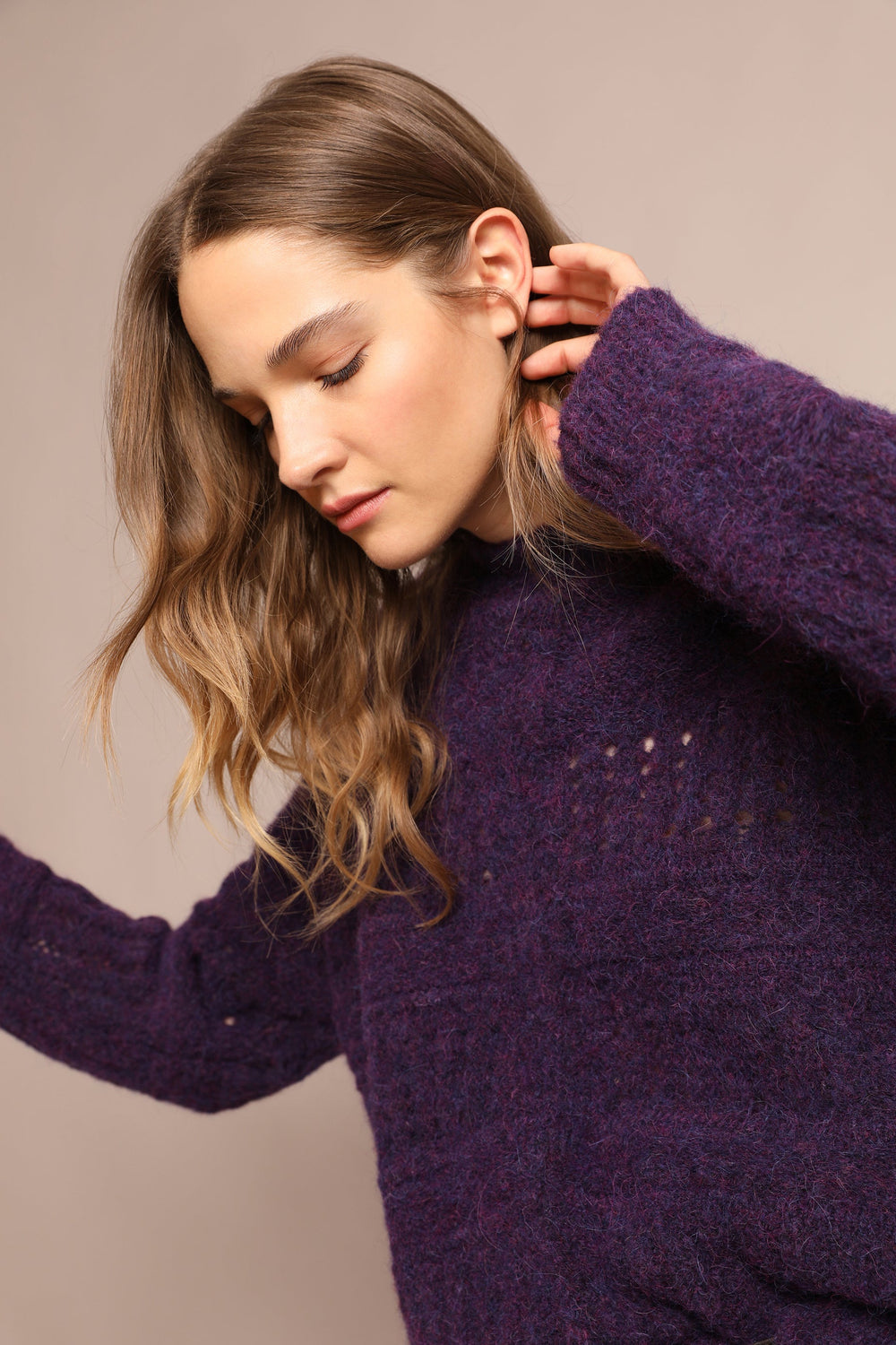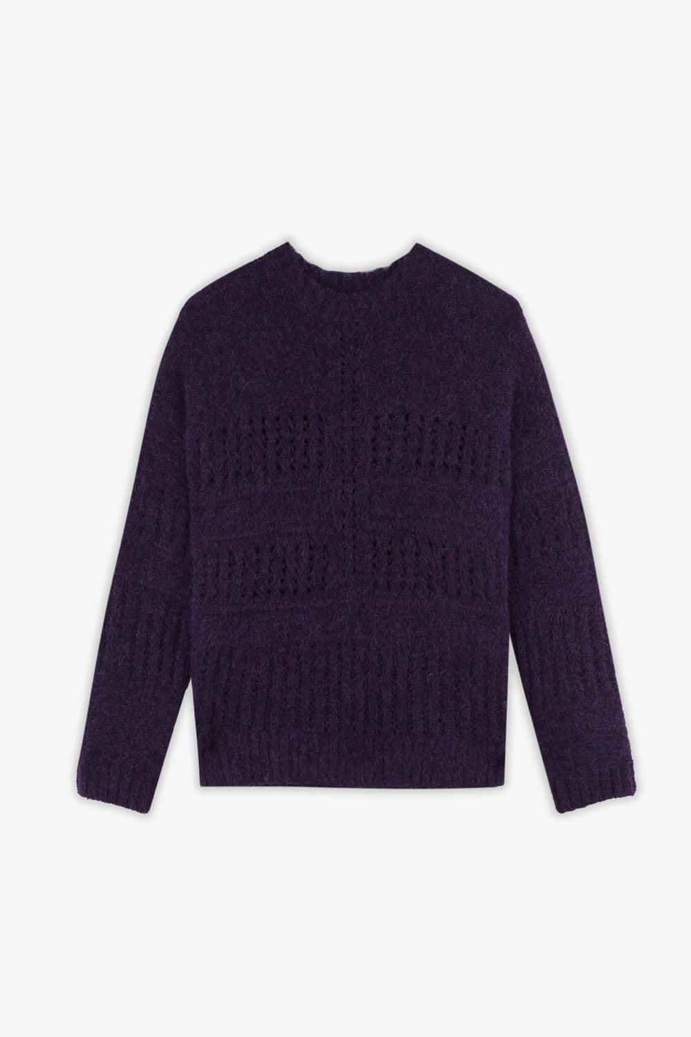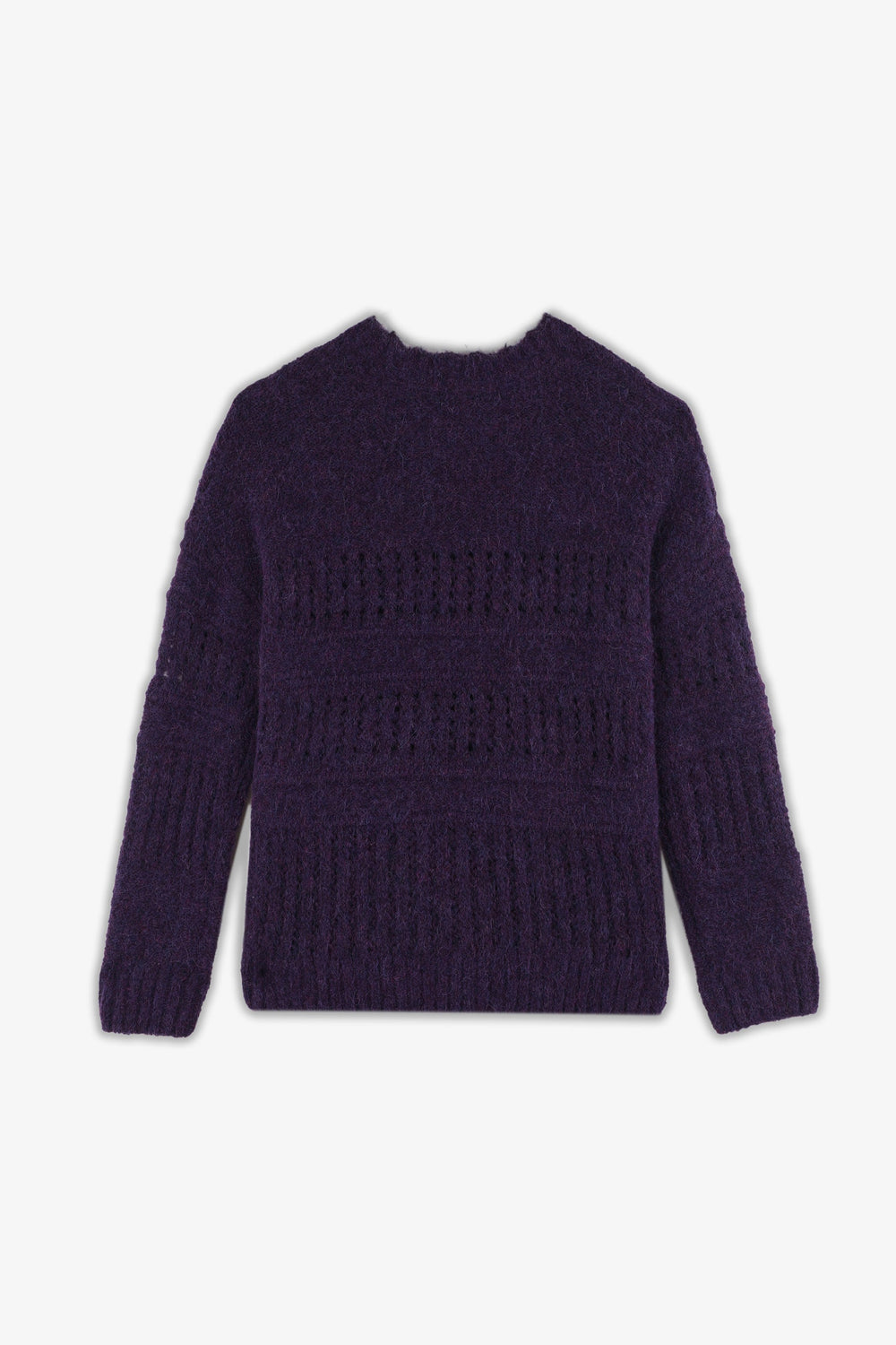 Die-cut sweater made of a wool, alpaca and recycled polyester blend. Regular fit, round neck and long sleeves.