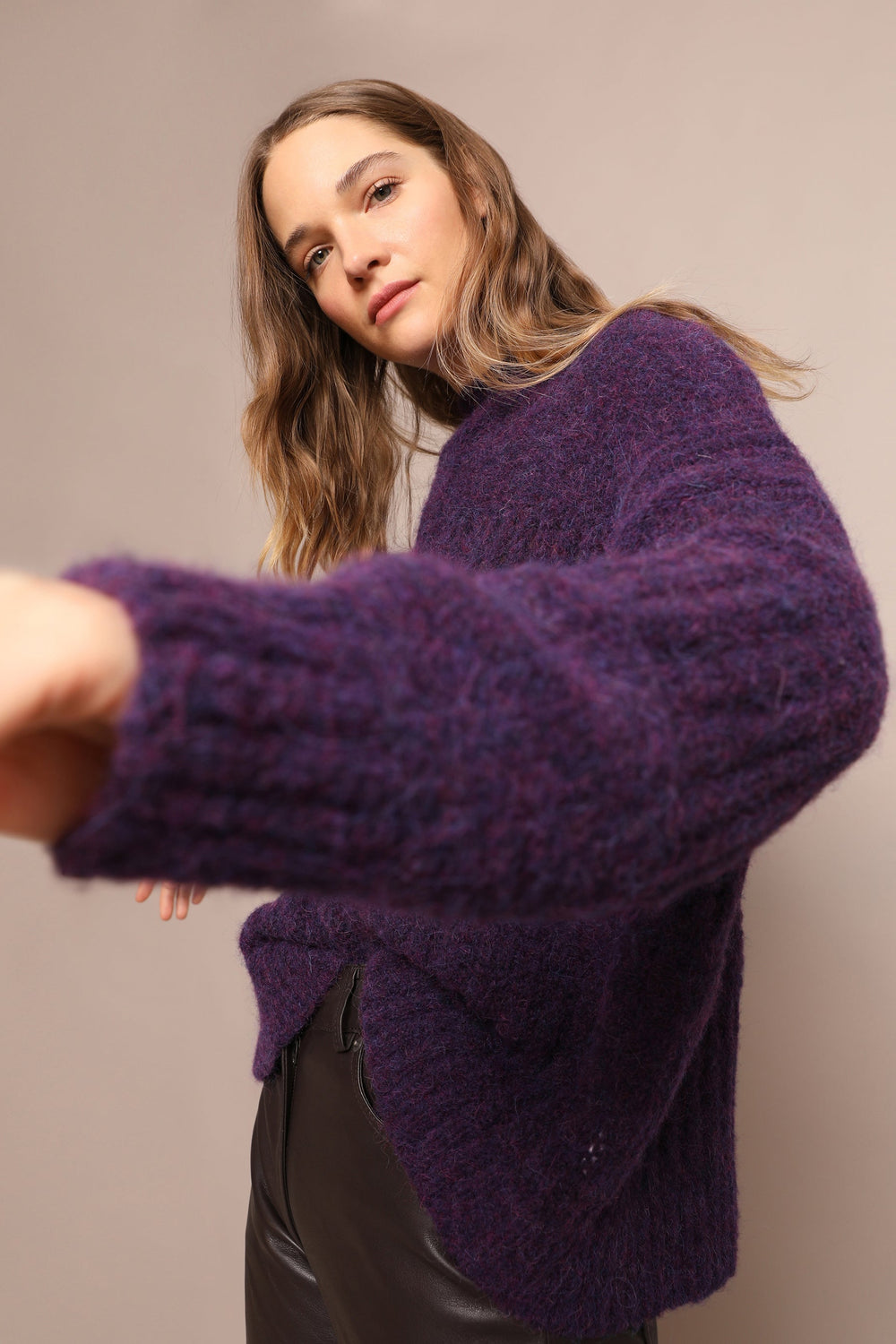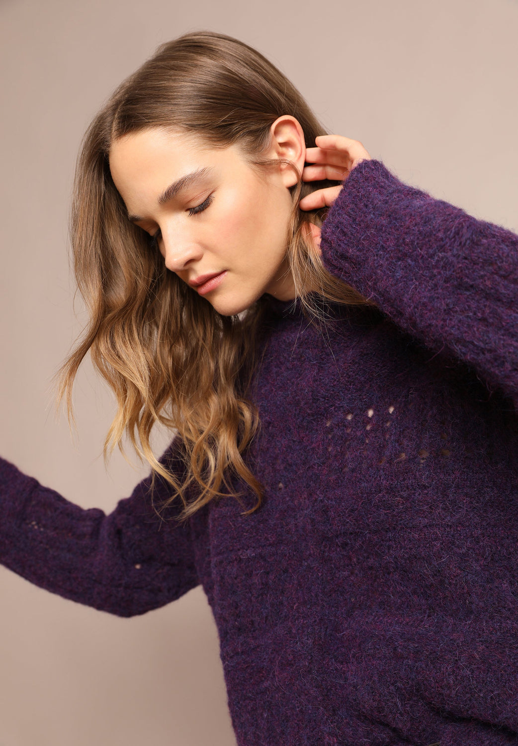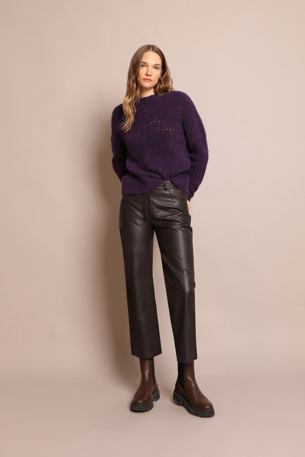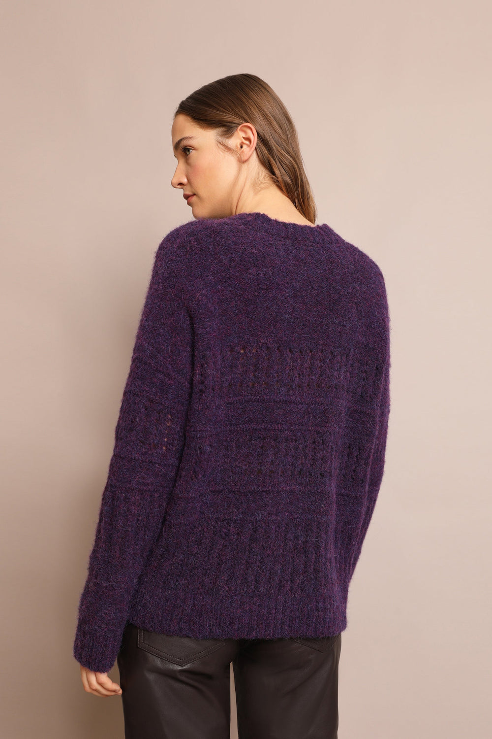 Die-cut sweater made of a wool, alpaca and recycled polyester blend. Regular fit, round neck and long sleeves.
