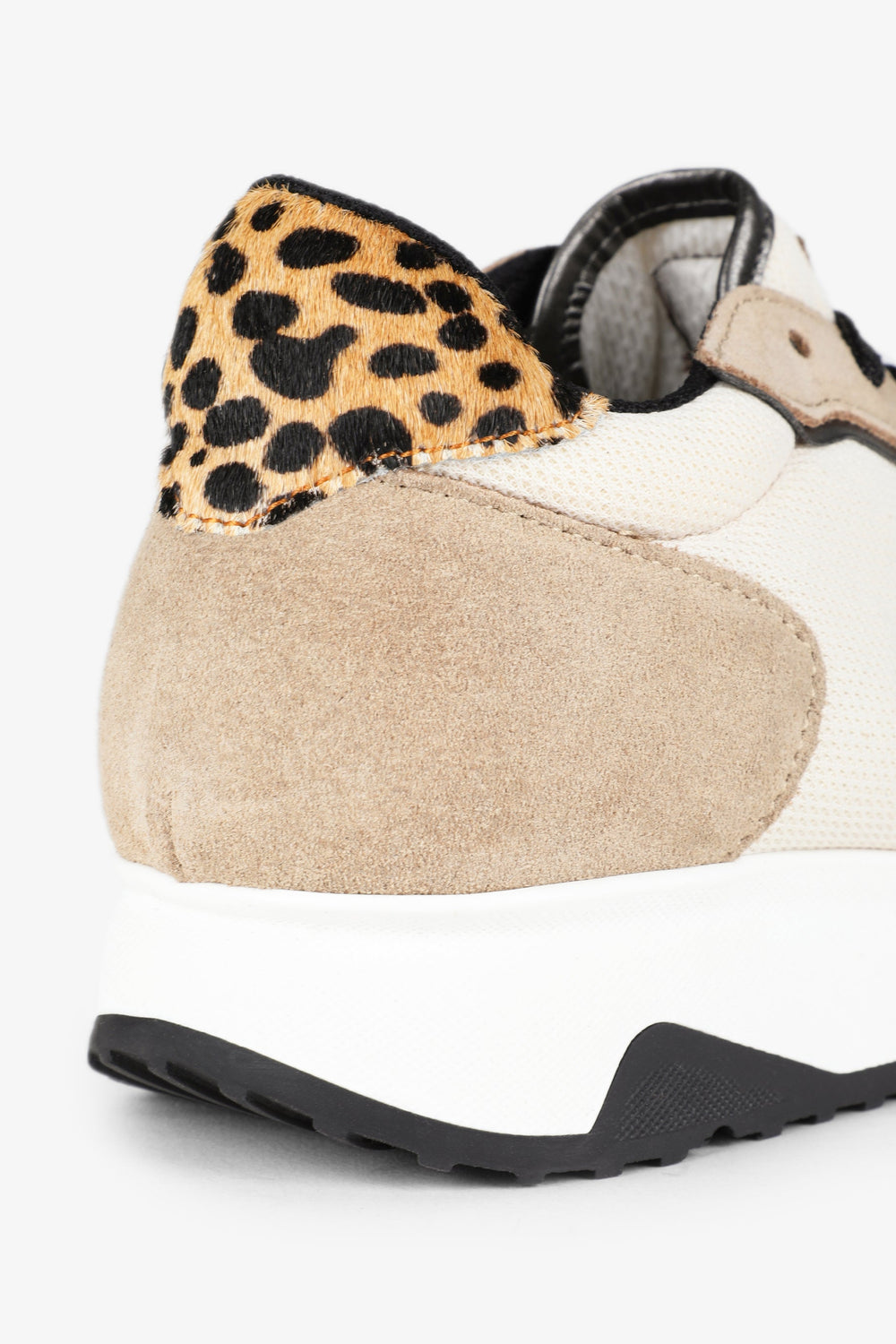 Sneakers with high soles. Made of blended leather, lace-up fastening with metallic laces, logo, toe and heel in contrast fabric, rubber toe cap and animal print details. Heel height: 3 cm