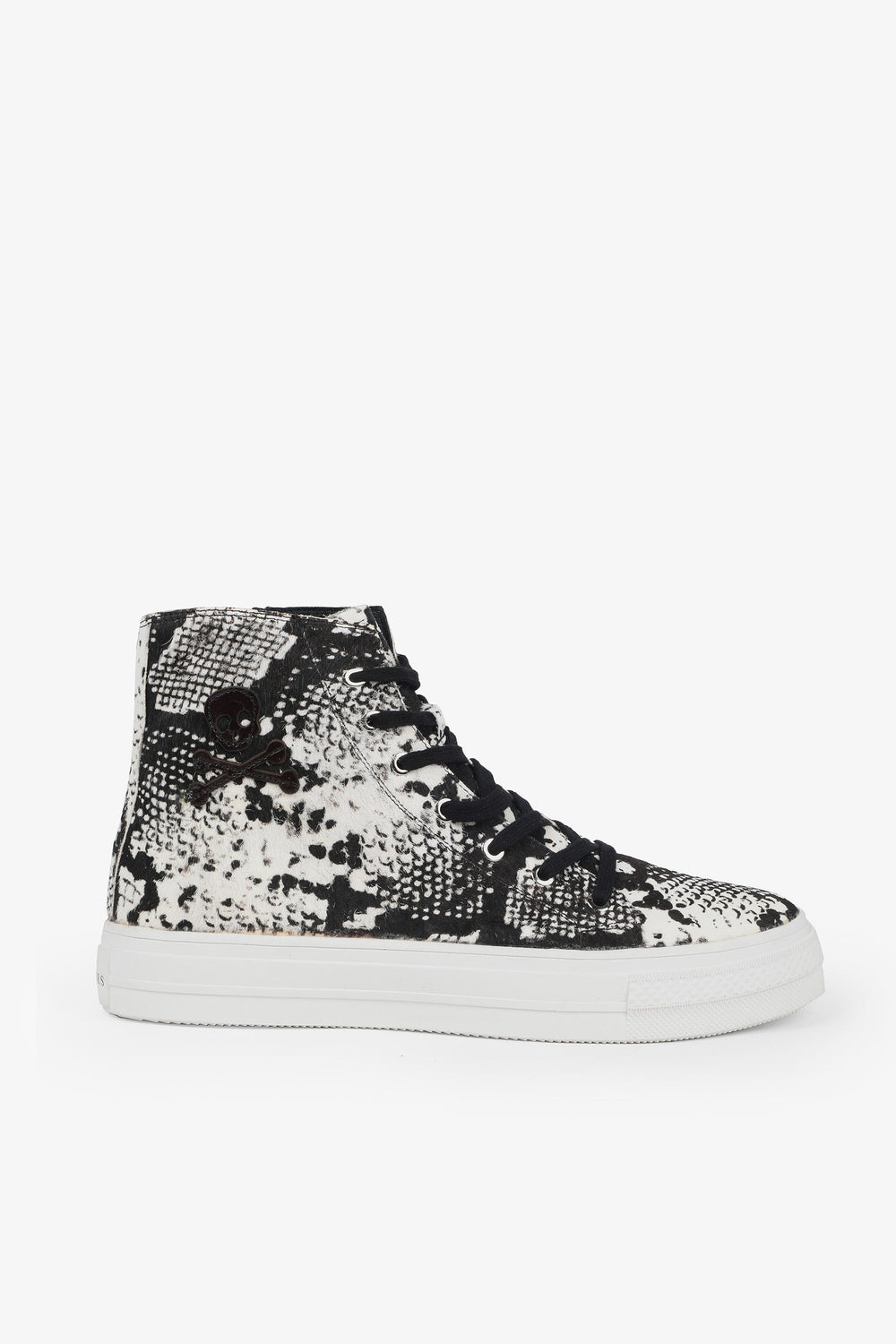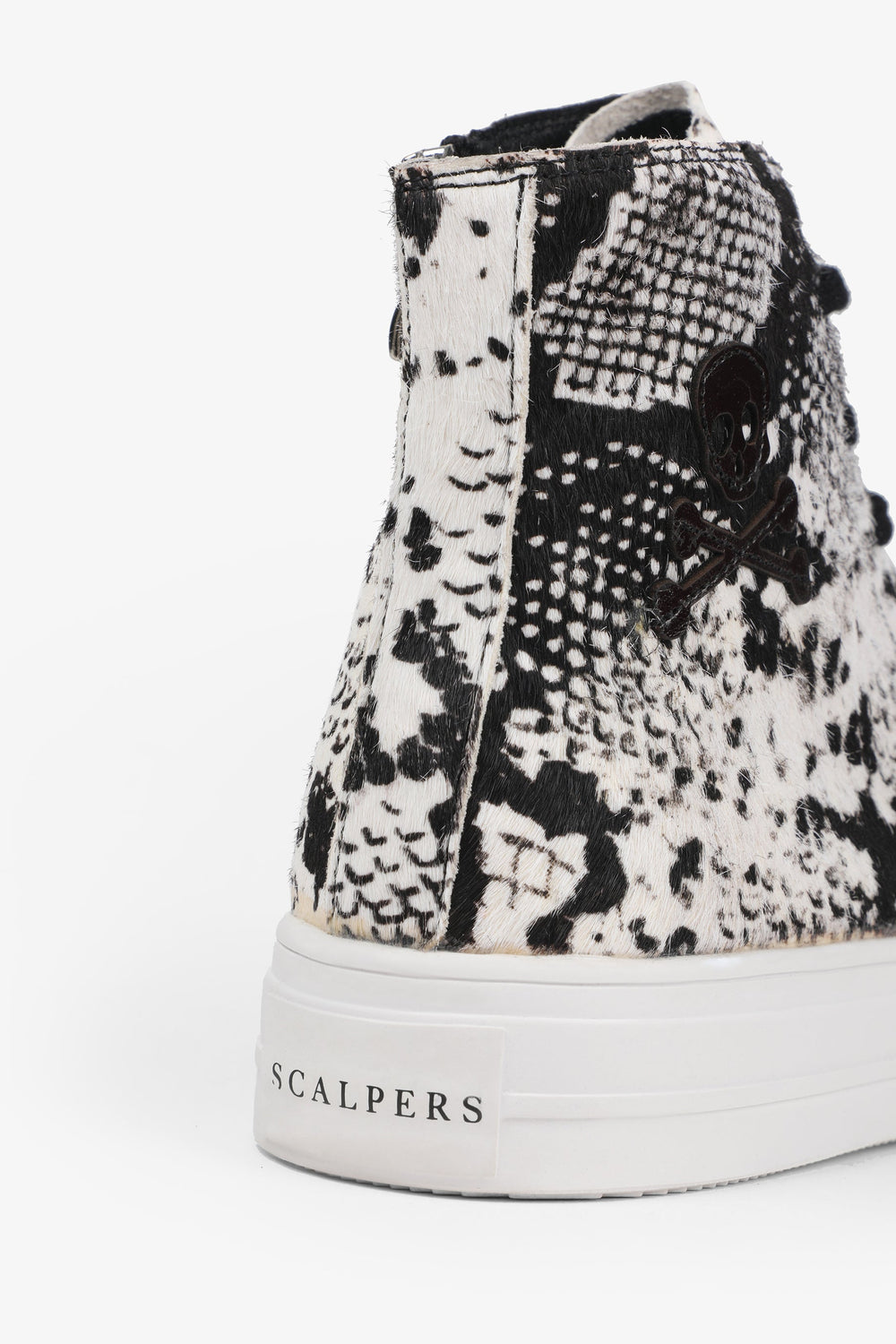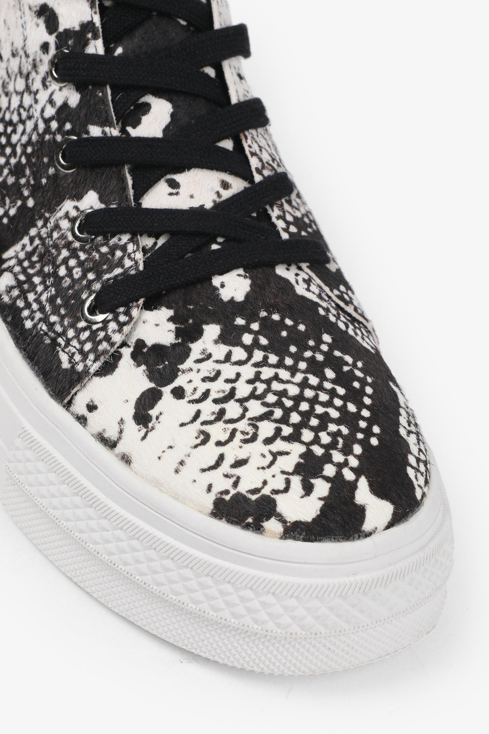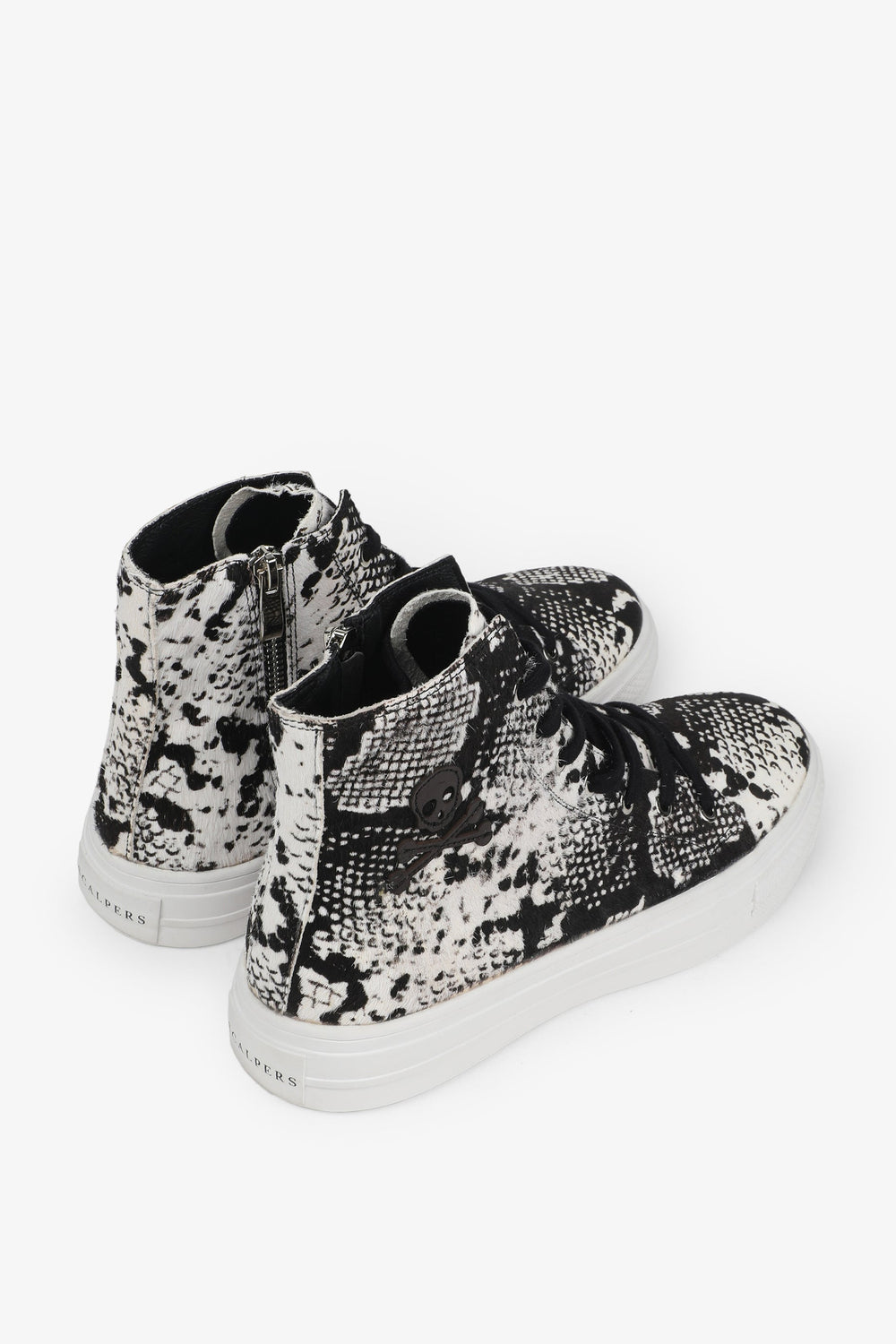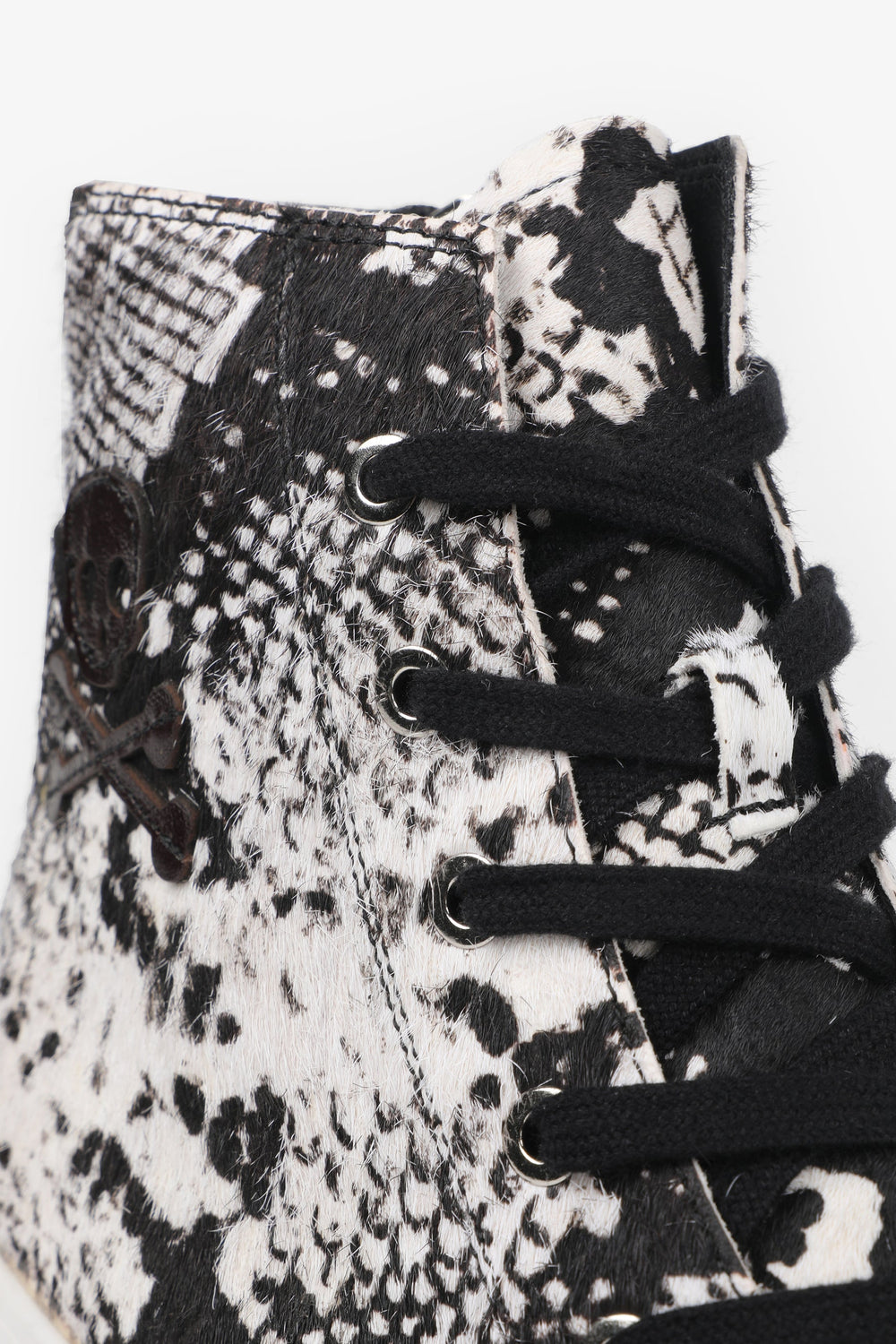 High top sneakers with animal print. Made from 100% leather, lace-up and side zip inside fastening, contrast rubber sole and label detail on the heel. Heel height: 3.5 cm / Leg height: 12 cm