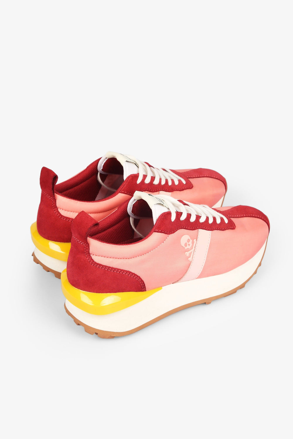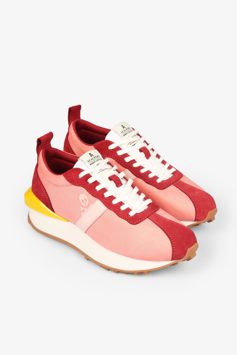 Multicoloured sneakers made from split leather. Lace-up fastening, back pull tab and labelled tongue. Rubber soles and pronounced heel stabiliser details.