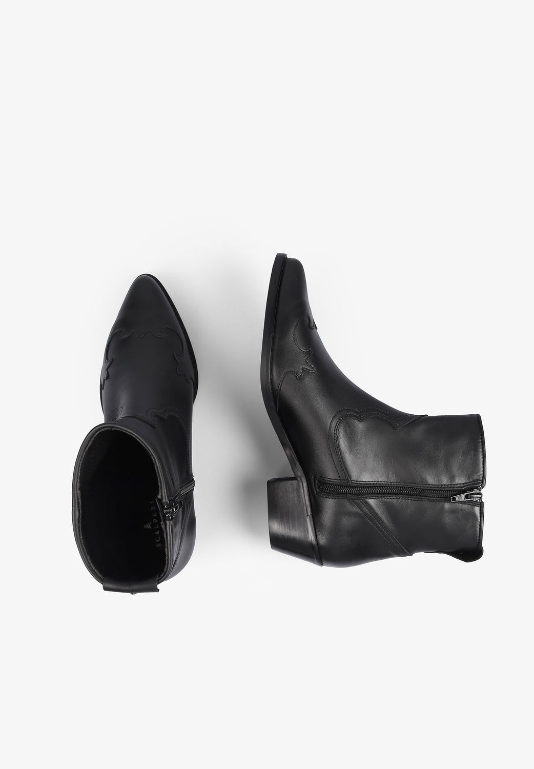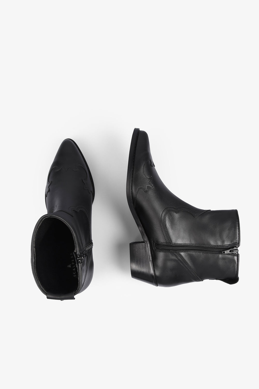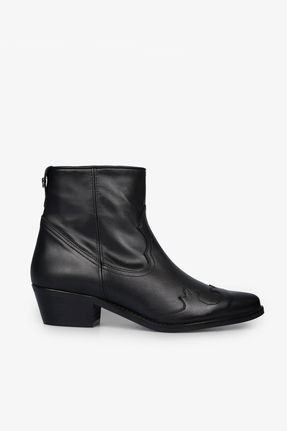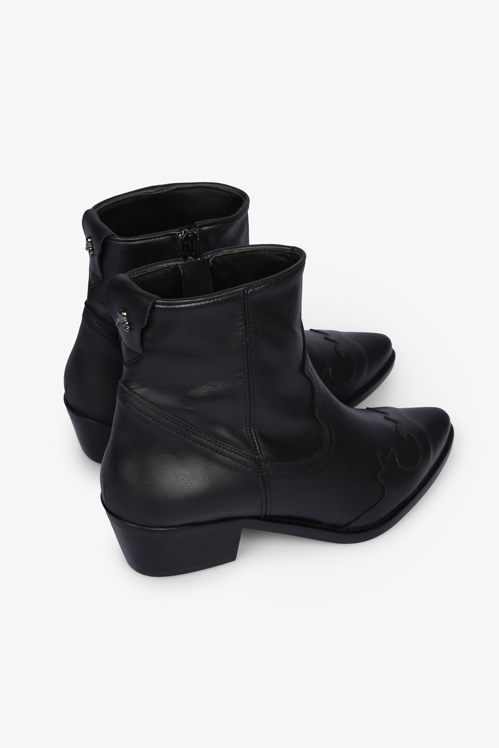Cowboy ankle boots, made from 100% cowhide leather, zip fastening on the inside, pointed toe and stitching and stud detailing.