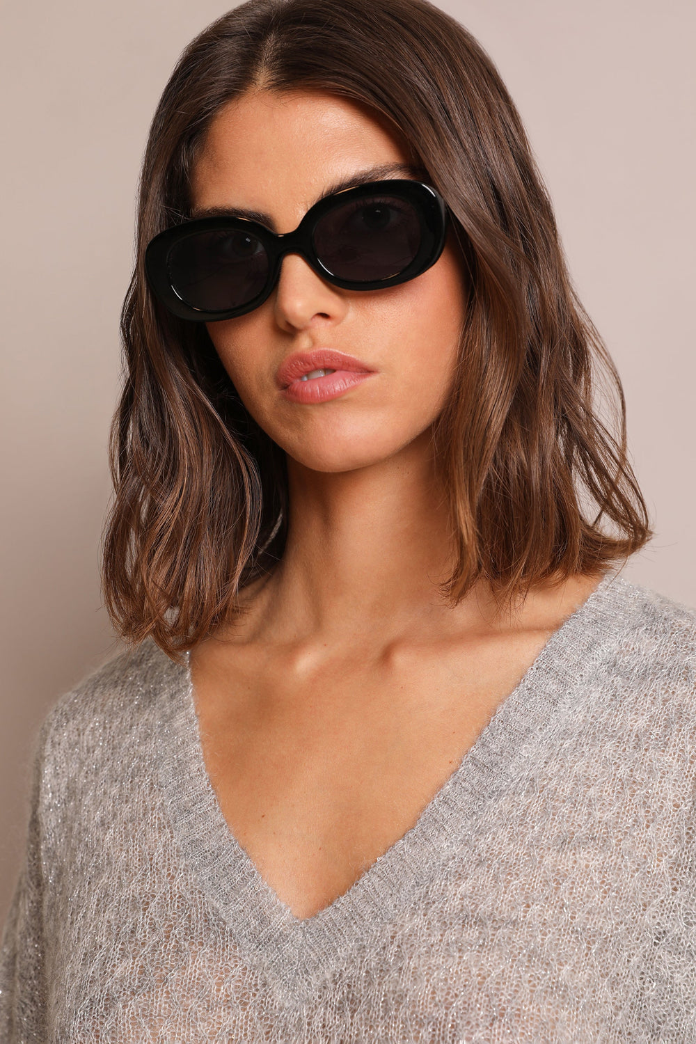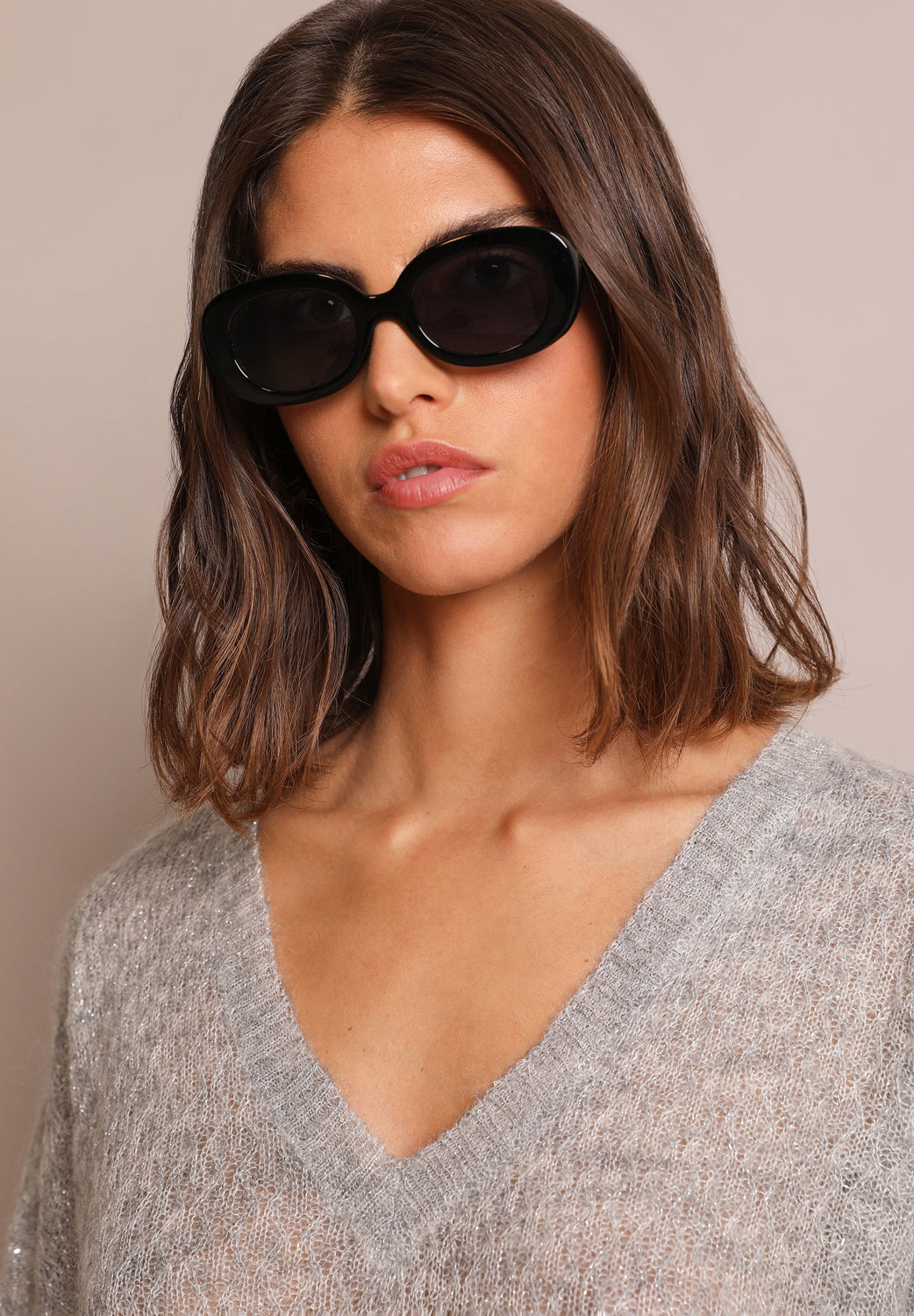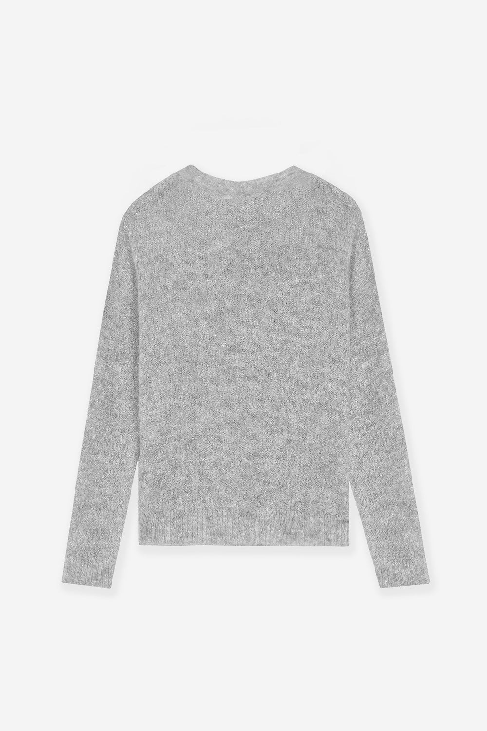 Knit sweater in wool and mohair blend with metallic details. Regular fit, with a V-neck and long sleeves.