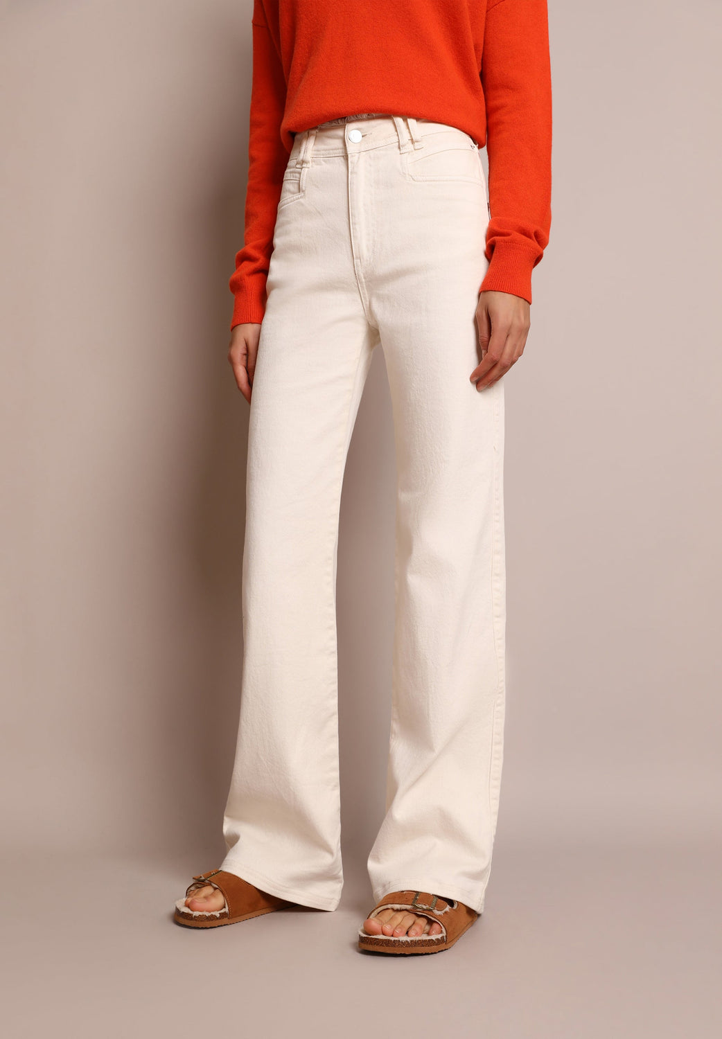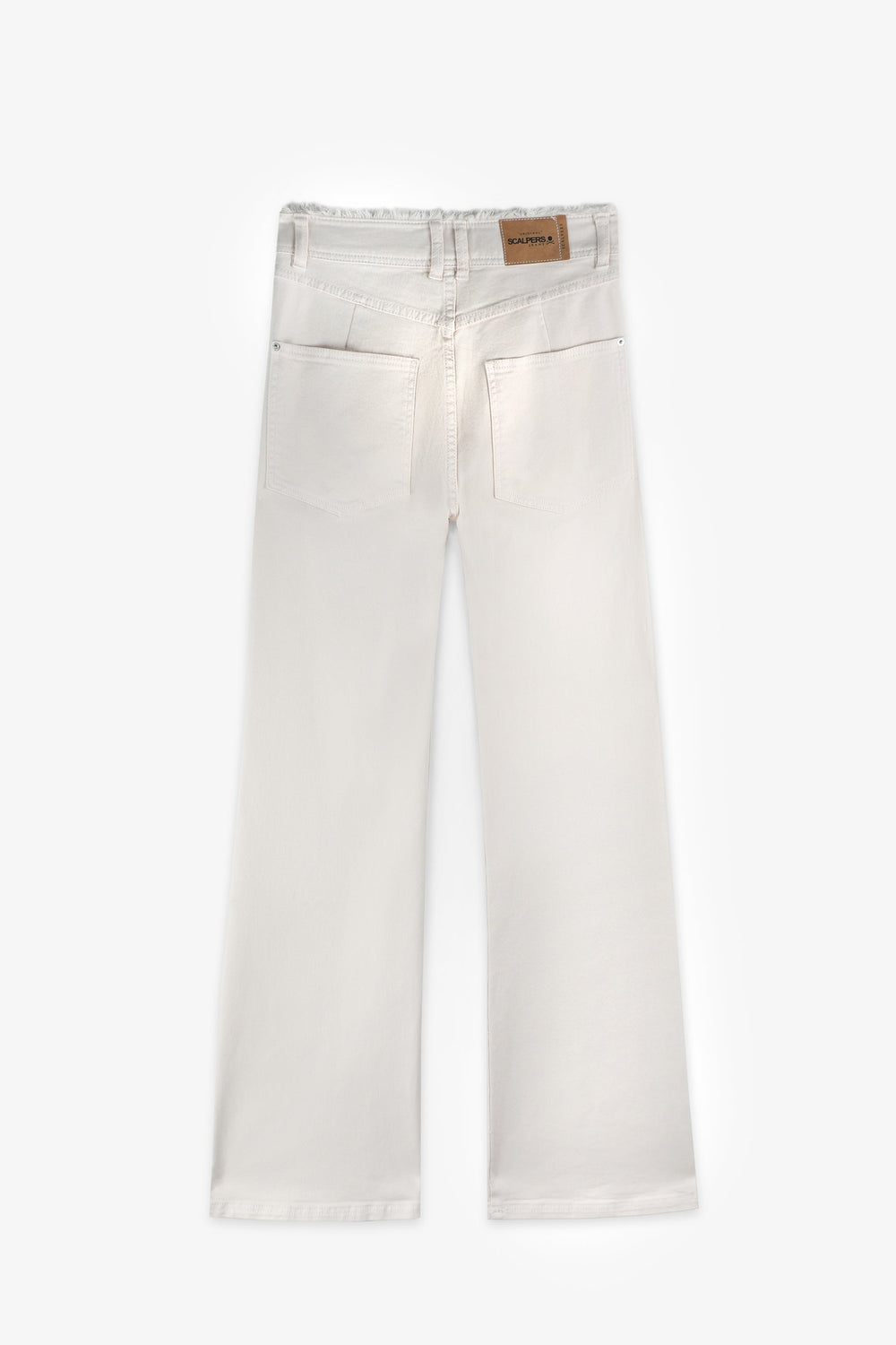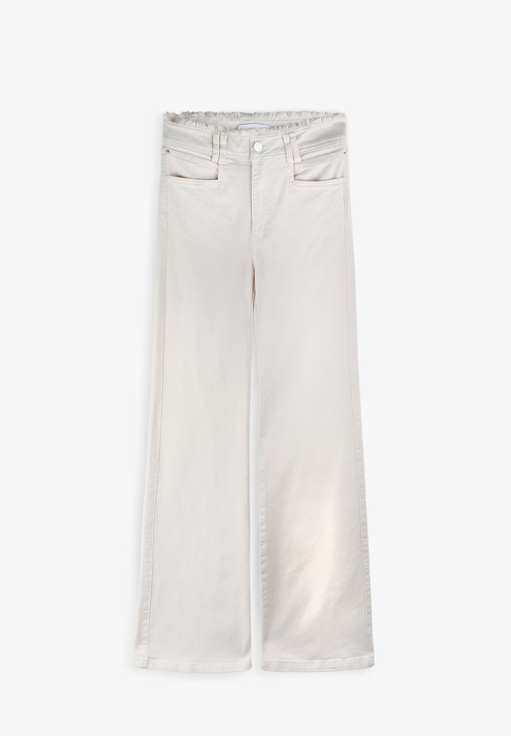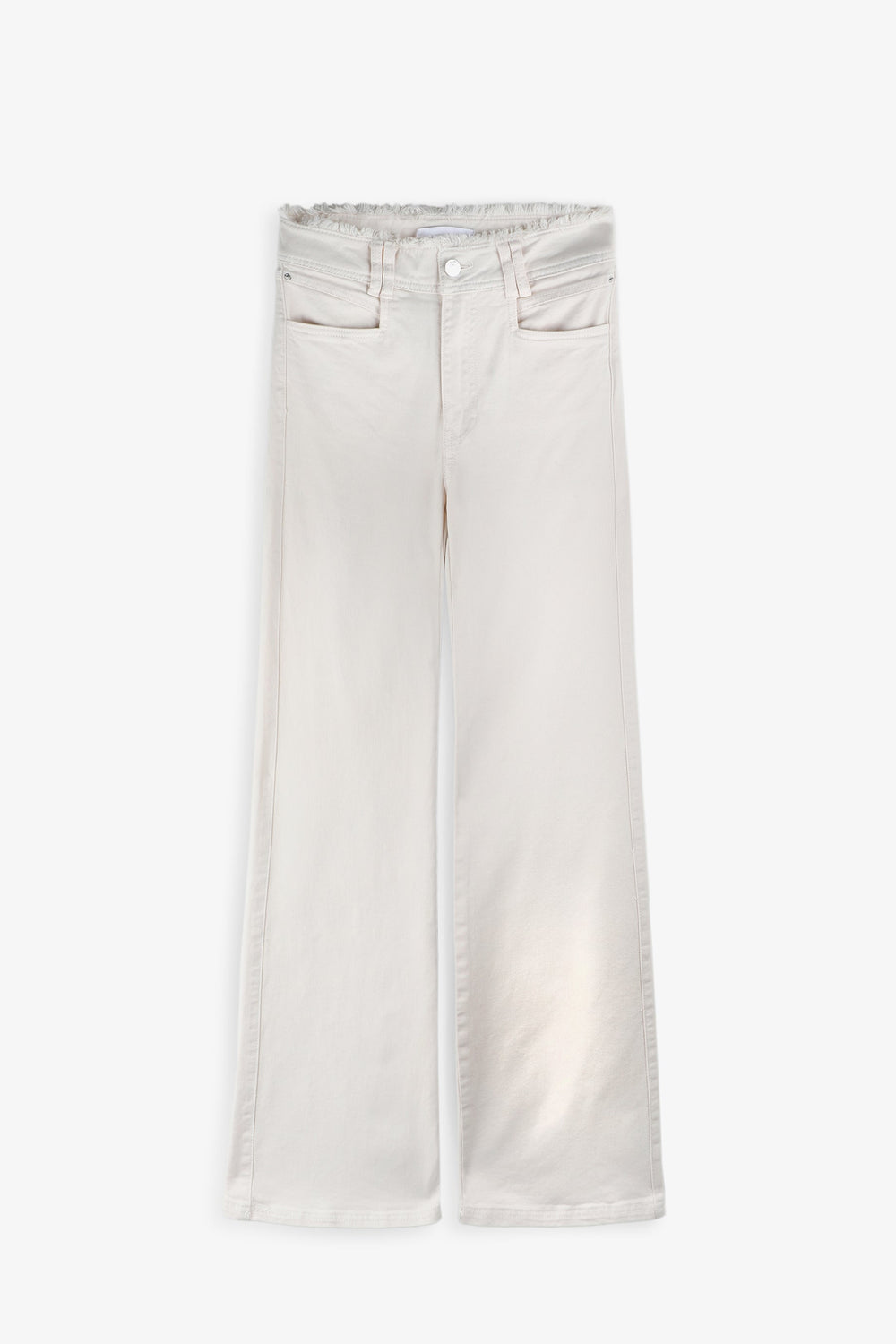Full length jeans made from slightly stretchy BCI cotton. Regular fit with a high waist, zip fly and top button fastening and side and back pockets. Double belt loops at the waist and frayed edge waist detail.