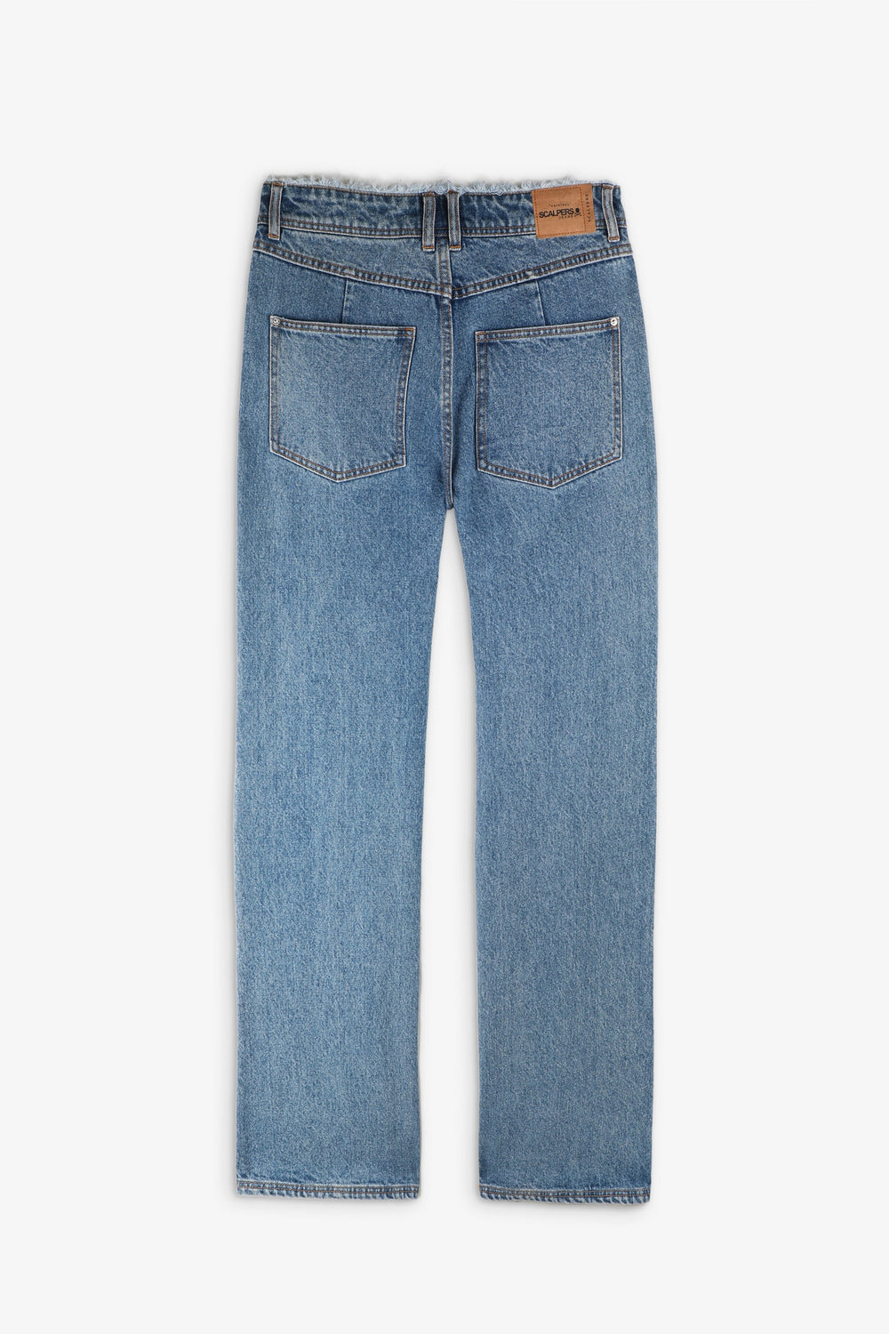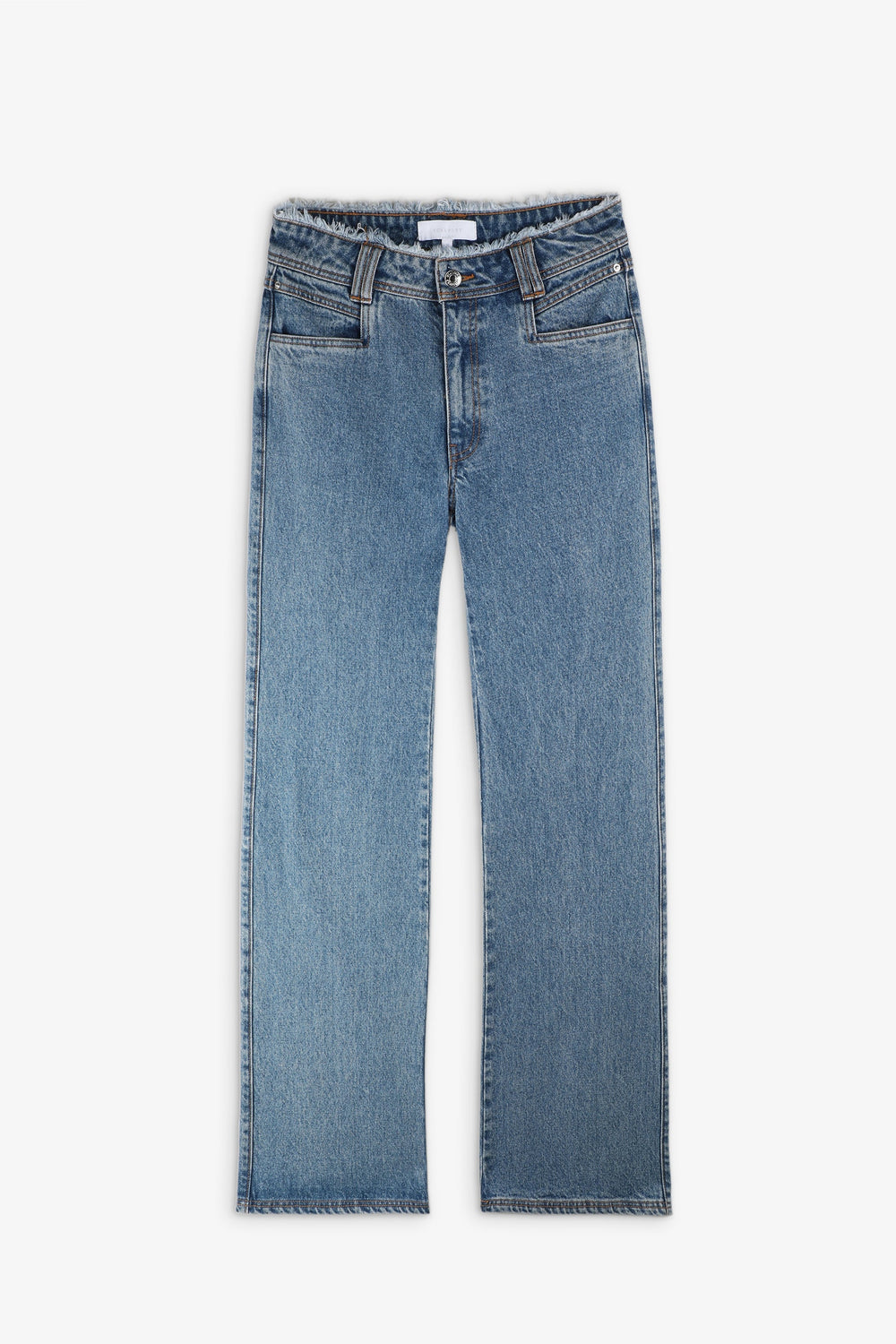 Full length jeans made from slightly stretchy BCI cotton. Regular fit with a high waist, zip fly and top button fastening and side and back pockets. Double belt loops at the waist and frayed edge waist detail.