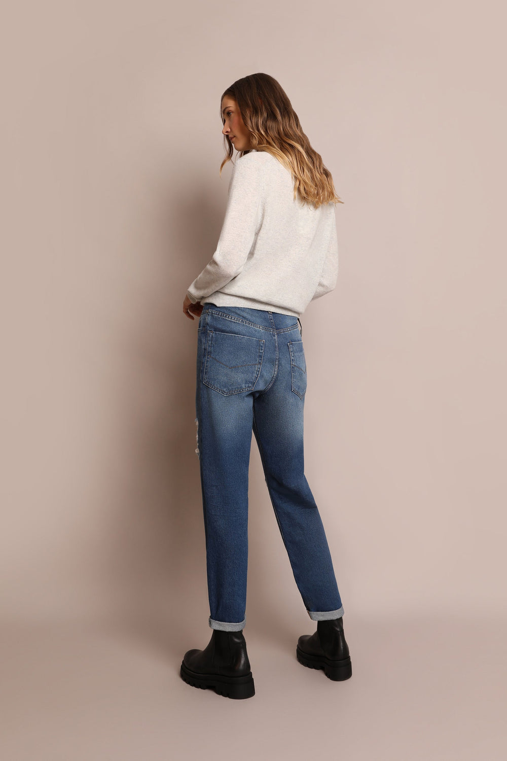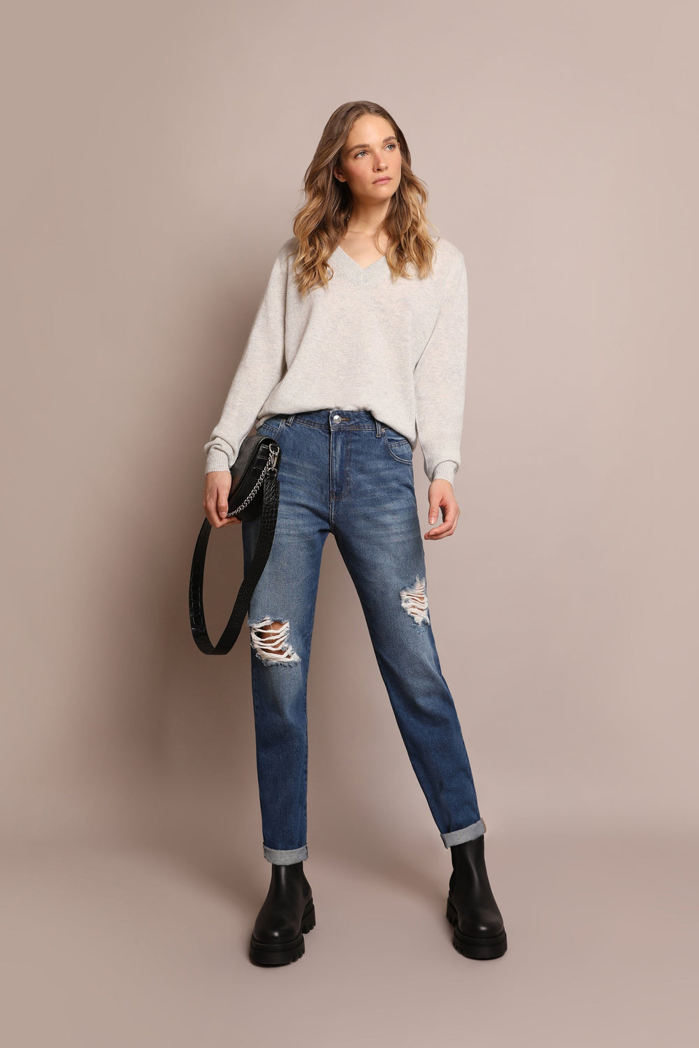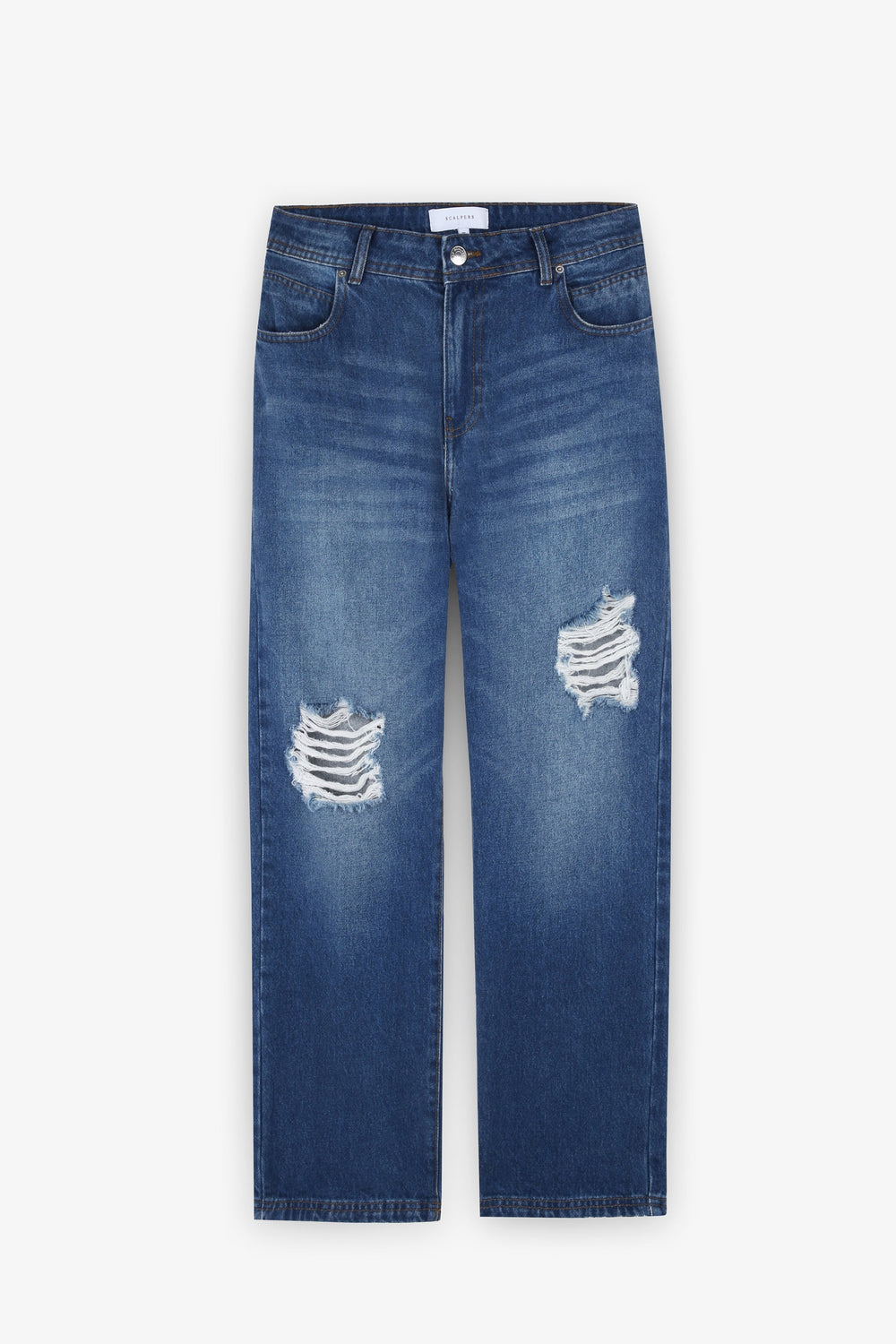 Straight jeans made of cotton fabric. Relaxed fit with low waist, zip and button fastening and side and back pockets.